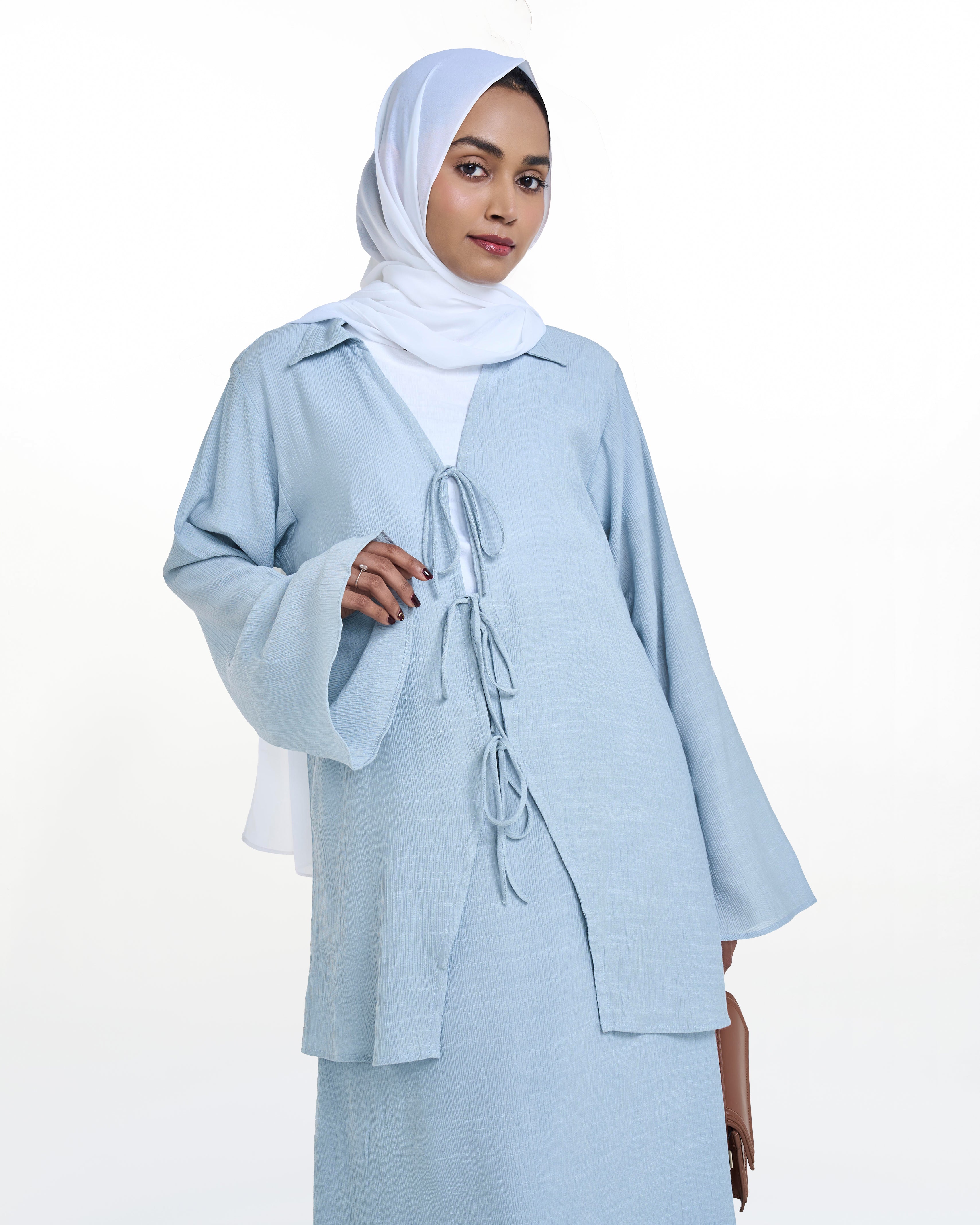 The Amaya Bow Tie-Up Set is a chic and playful co-ord made for summer days. Featuring elegant bow tie-ups at the front and paired with matching pants, it offers the perfect balance of comfort and style. Light, breezy, and unique—it's your go-to for effortless dressing with a touch of charm.
