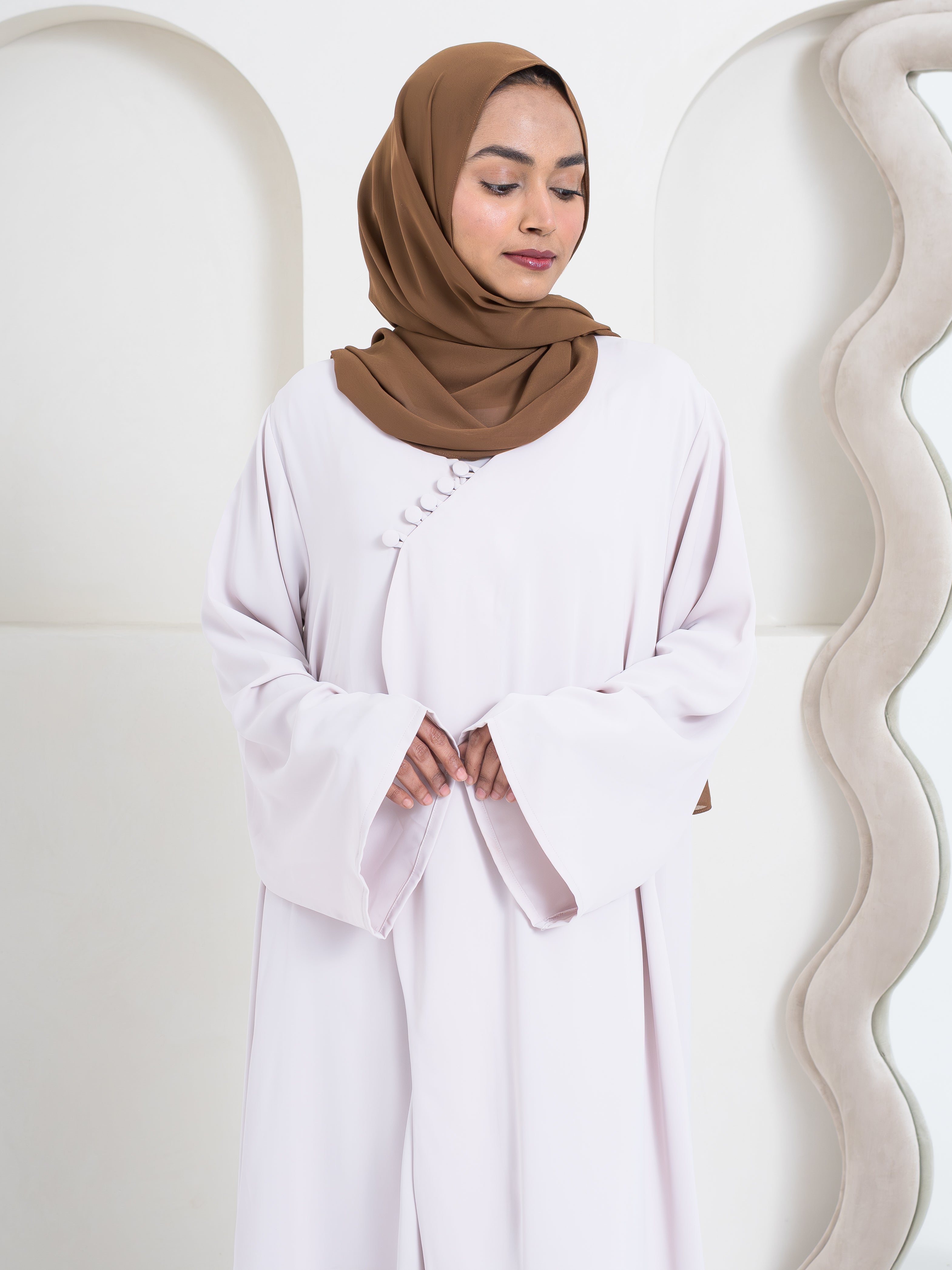 A sculpted overlap-curve abaya designed to fall effortlessly.