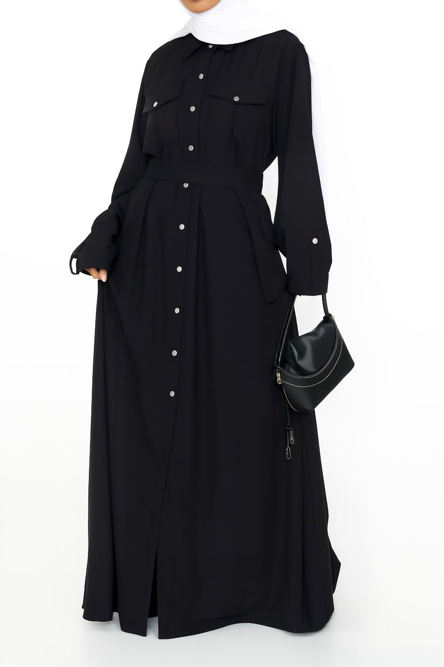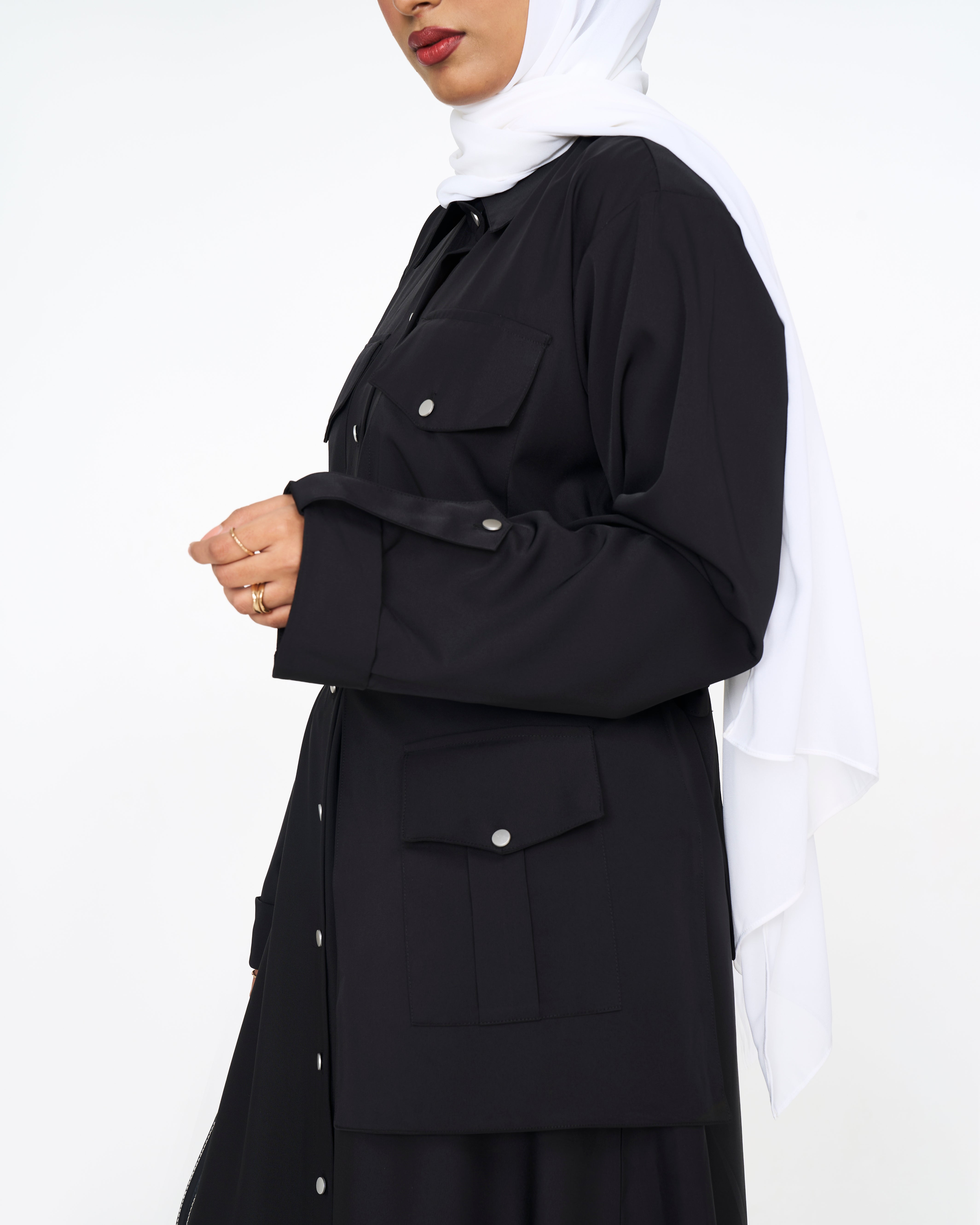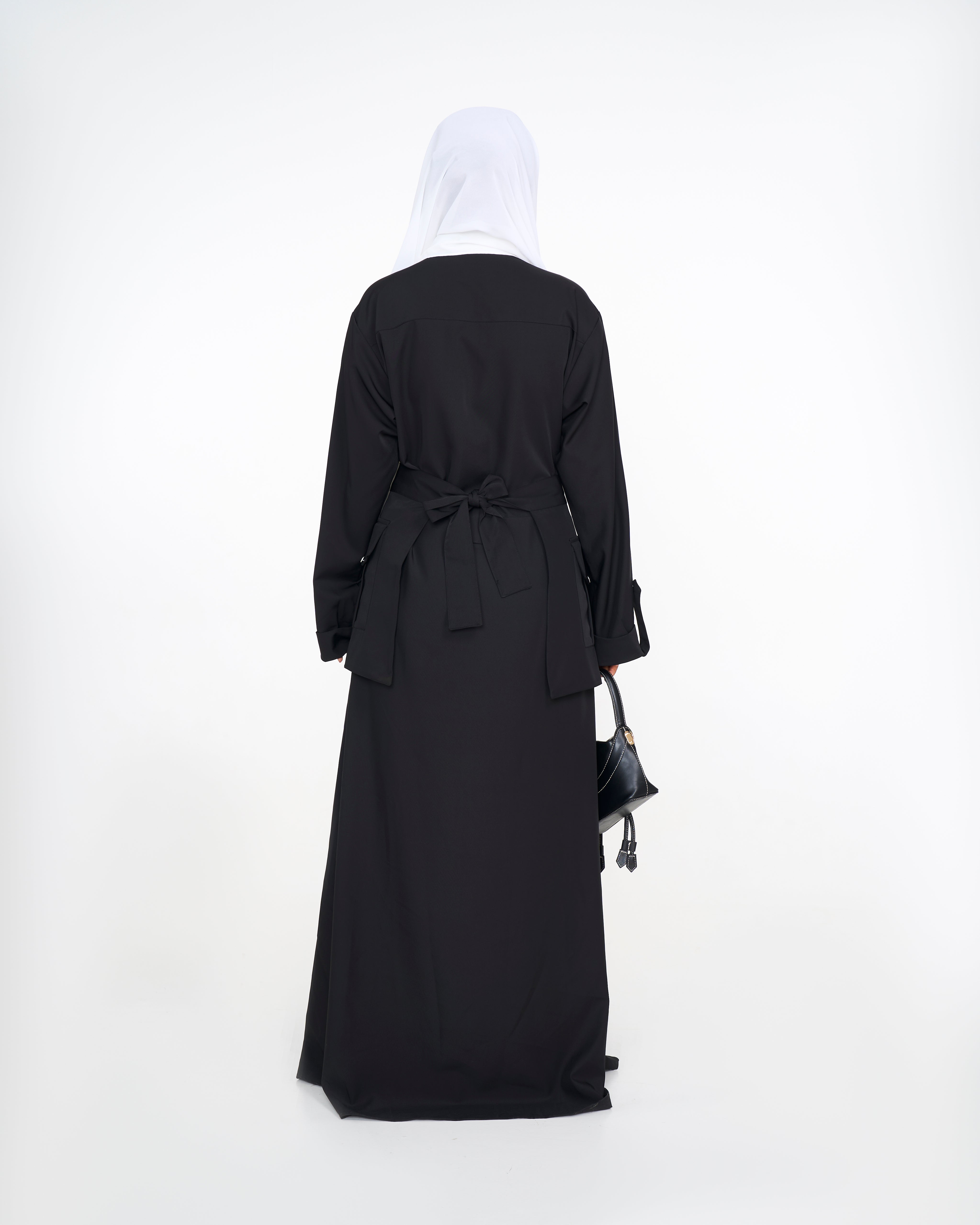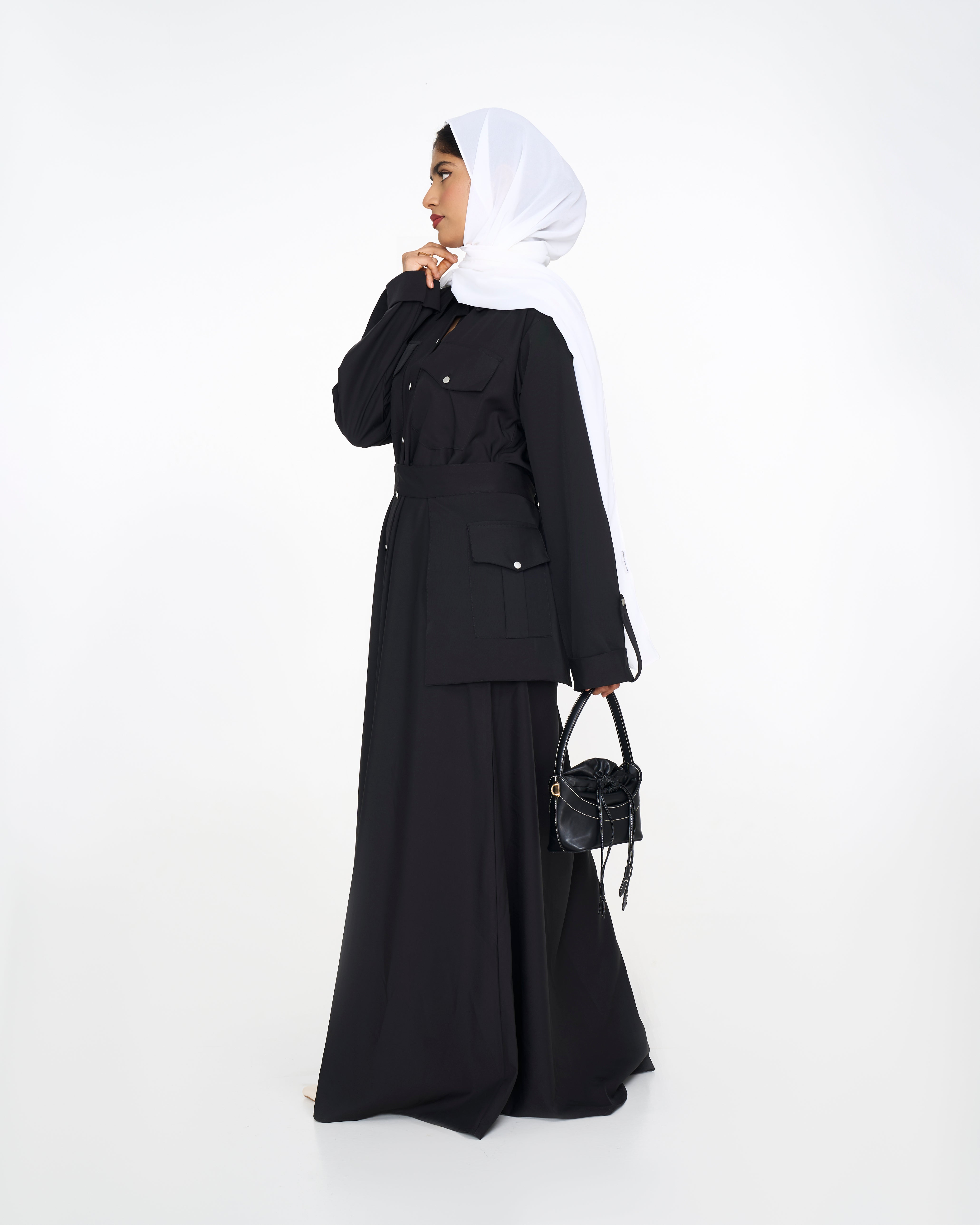 - Easy, comfortable fit that can be cinched with the belt for added shape