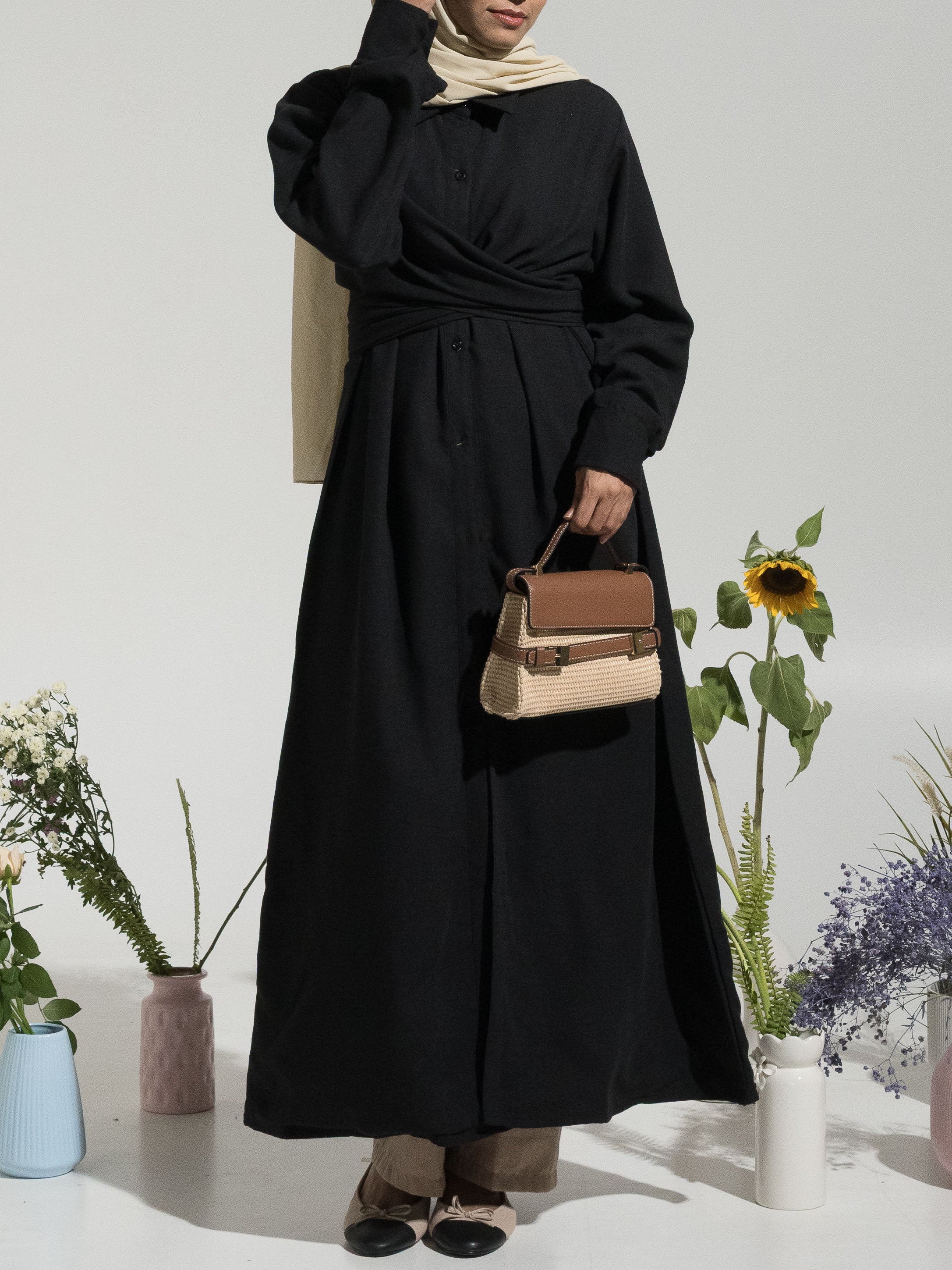 Sadie Tie-Up Shirt Dress - Black