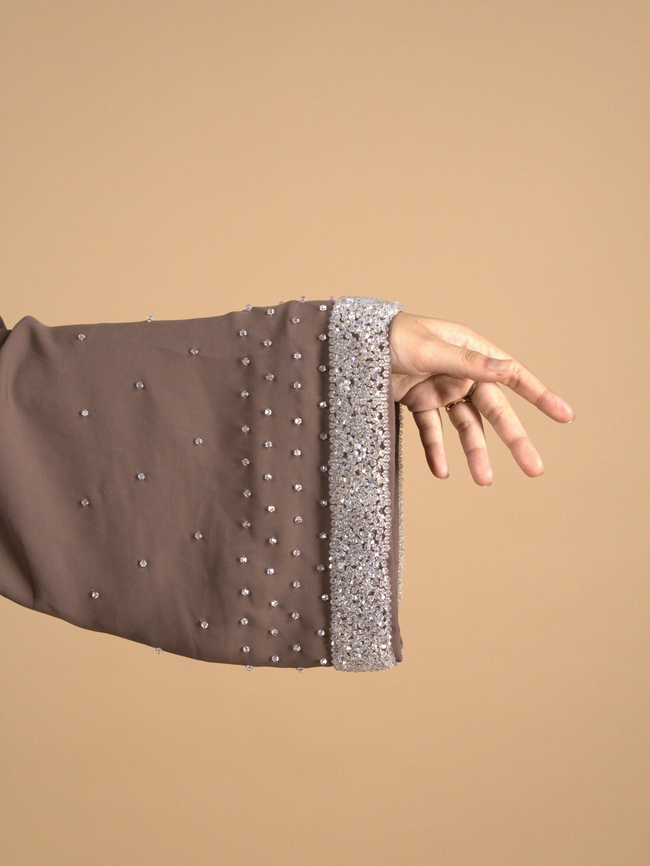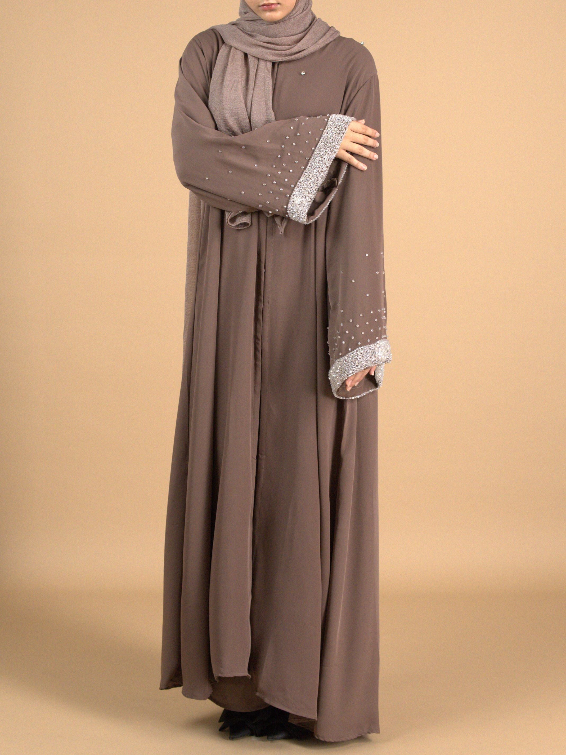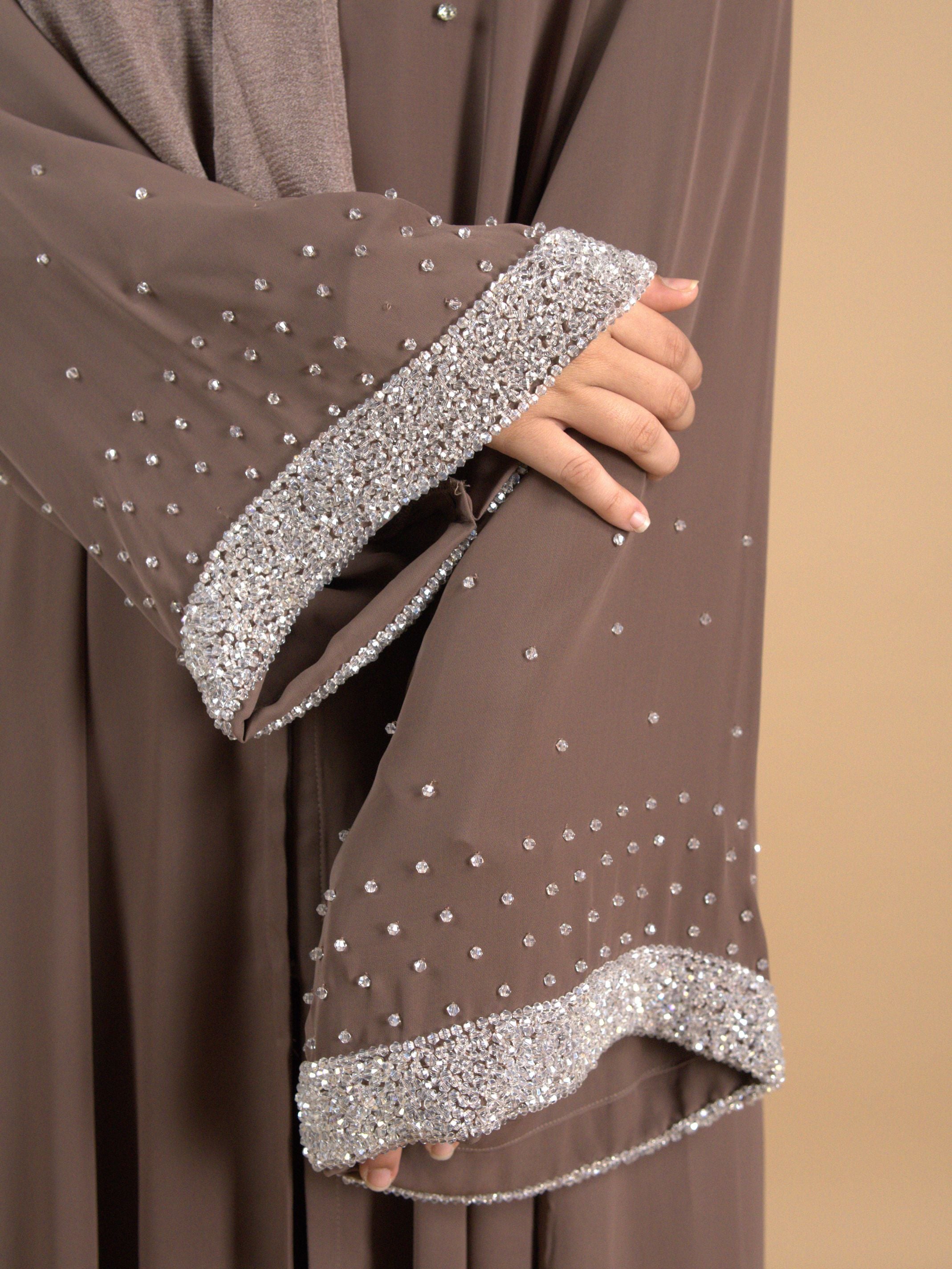 Indulge in the epitome of elegance with the Mahra Luxury Abaya. Crafted from premium fabric, this exquisite garment exudes luxury and sophistication. The attention to detail is unparalleled, with delicate crystal detailing adorning the sleeves, adding a touch of glamour to your ensemble. Step into any occasion with confidence, knowing that you are draped in the finest abaya that effortlessly combines style and modesty. Elevate your wardrobe and embrace the allure of Mahra Luxury Abaya today.