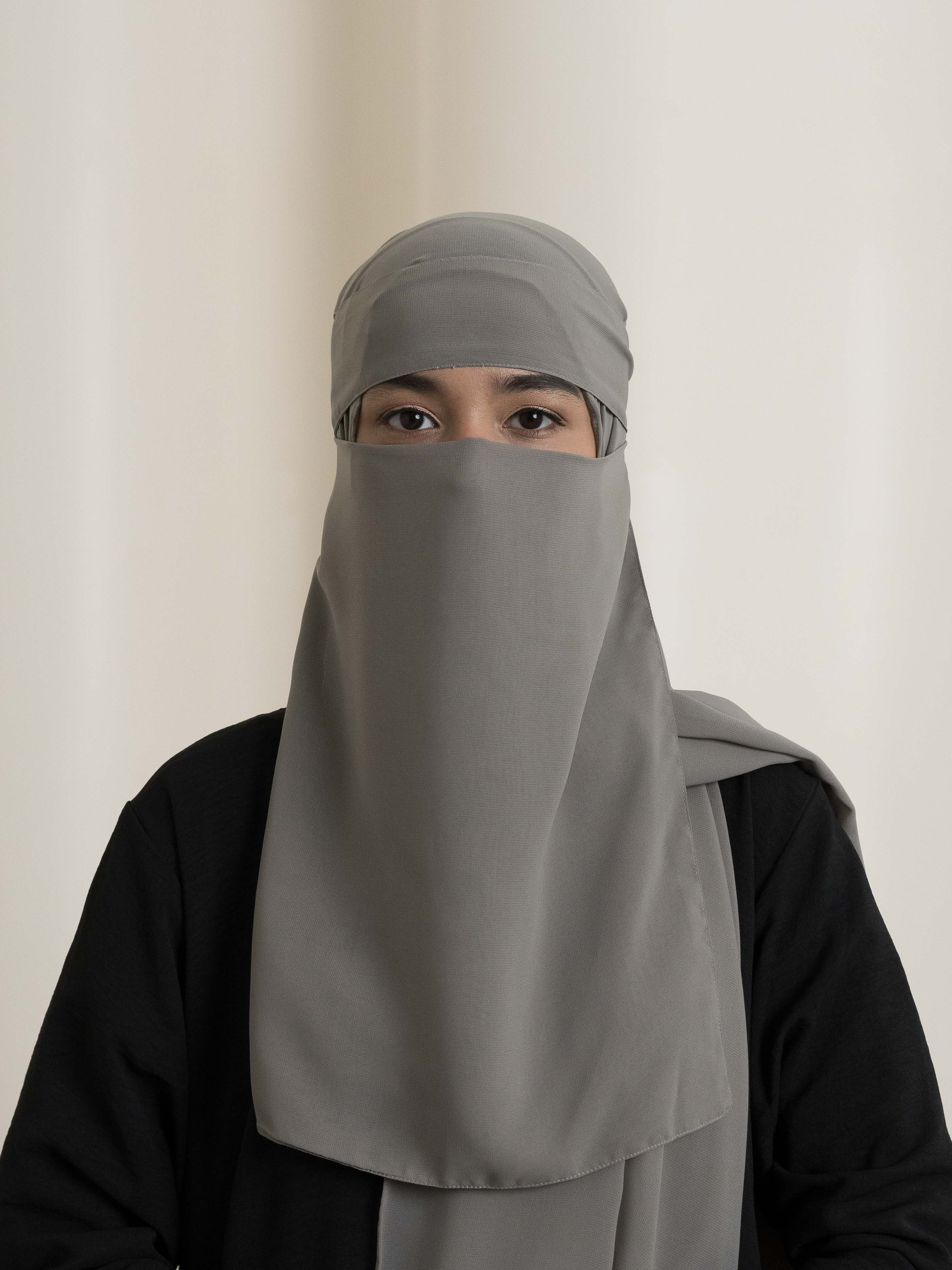 Medina Silk Niqab Set - Grey