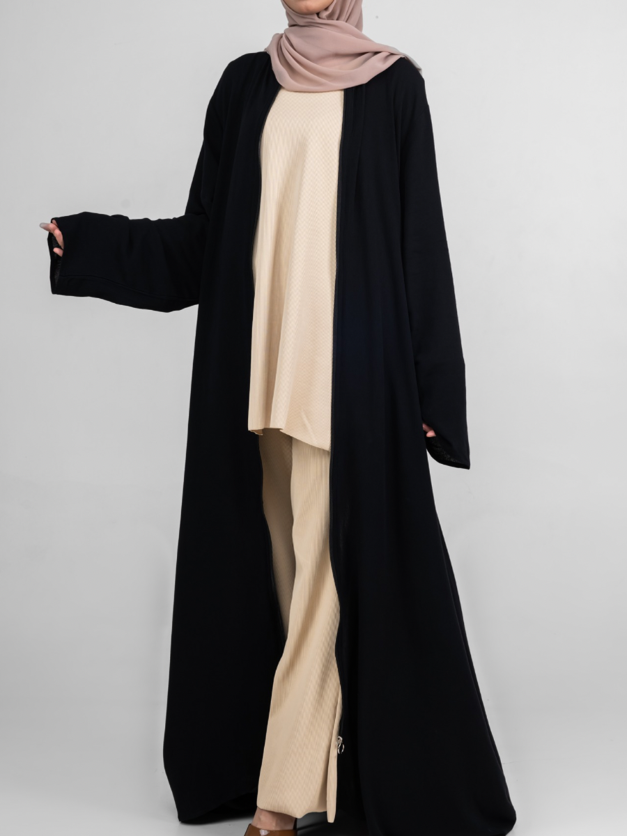 Essential Zipper Abaya - Black