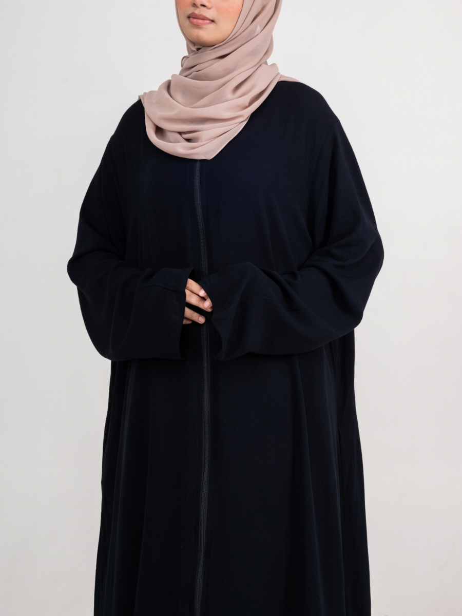 Crafted from soft, lightweight fabric, this plain zipper abaya offers a breezy feel that’s perfect for all-day wear. The front zipper makes it easy to slip on and style, whether layered over casual outfits or dressed up for an evening out. Its minimal design ensures versatility, while the airy material keeps you cool and comfortable no matter the season.
