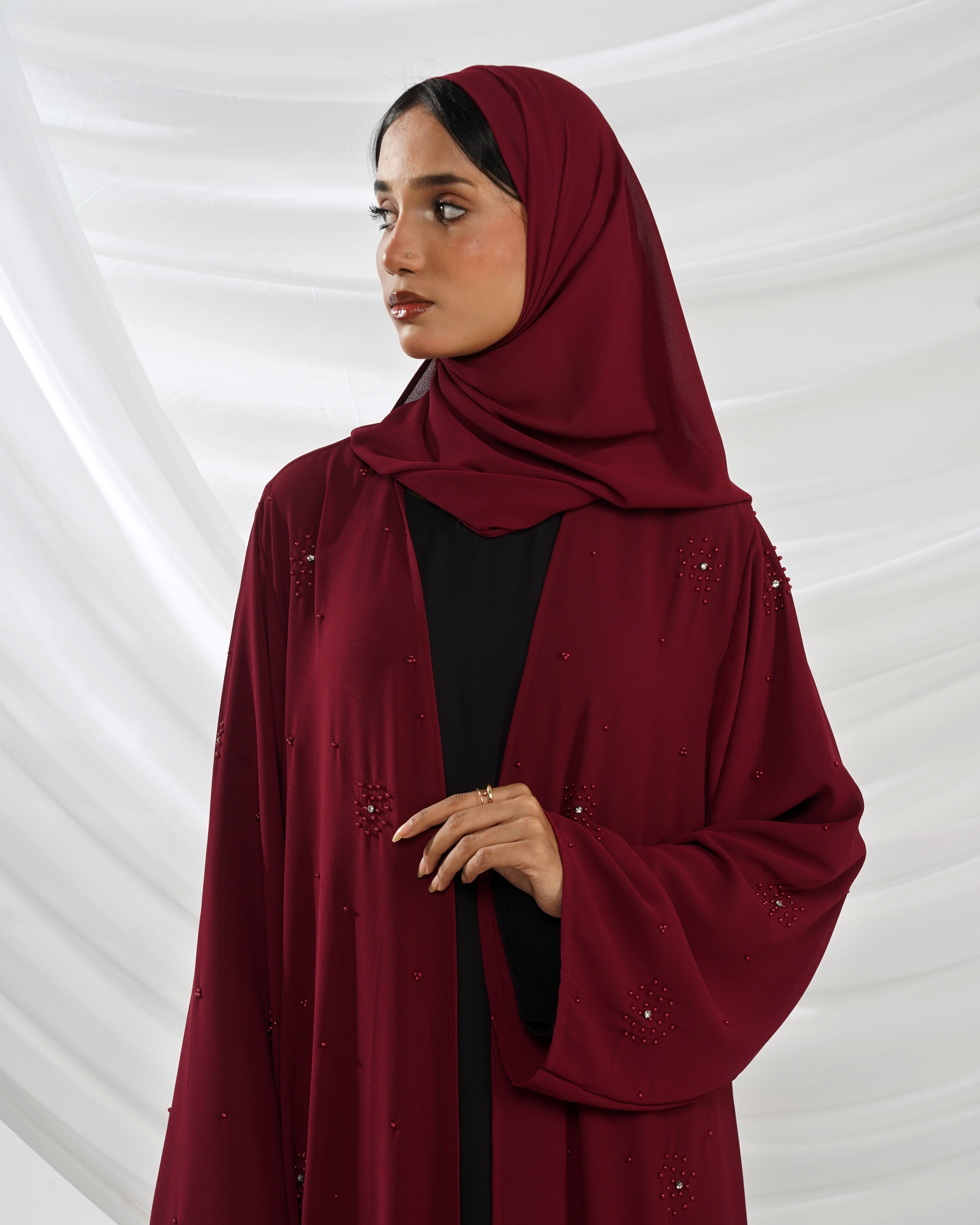 Elara Luxe Abaya - Maroon