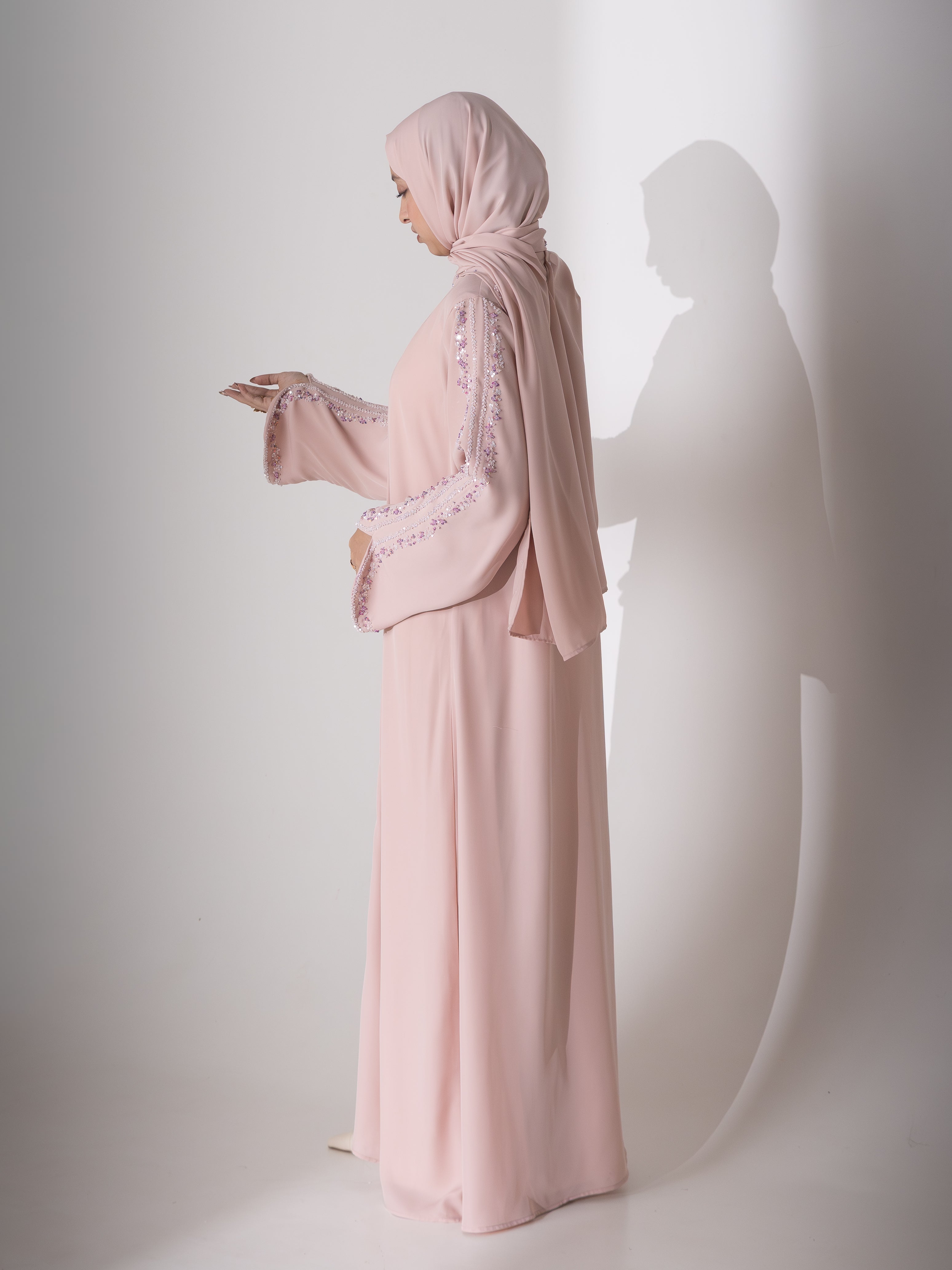 – Classic abaya featuring intricate embellished handwork on the sleeves