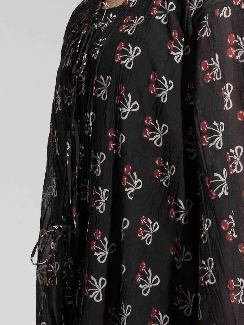 The Cherie Shrug is a chic and elegant piece, perfect for summer. Featuring a playful cherry print, it adds a fun touch to your outfit. With stylish, chic sleeves and front tie-ups for an adjustable fit, it’s lightweight and breathable—ideal for layering on warm days.