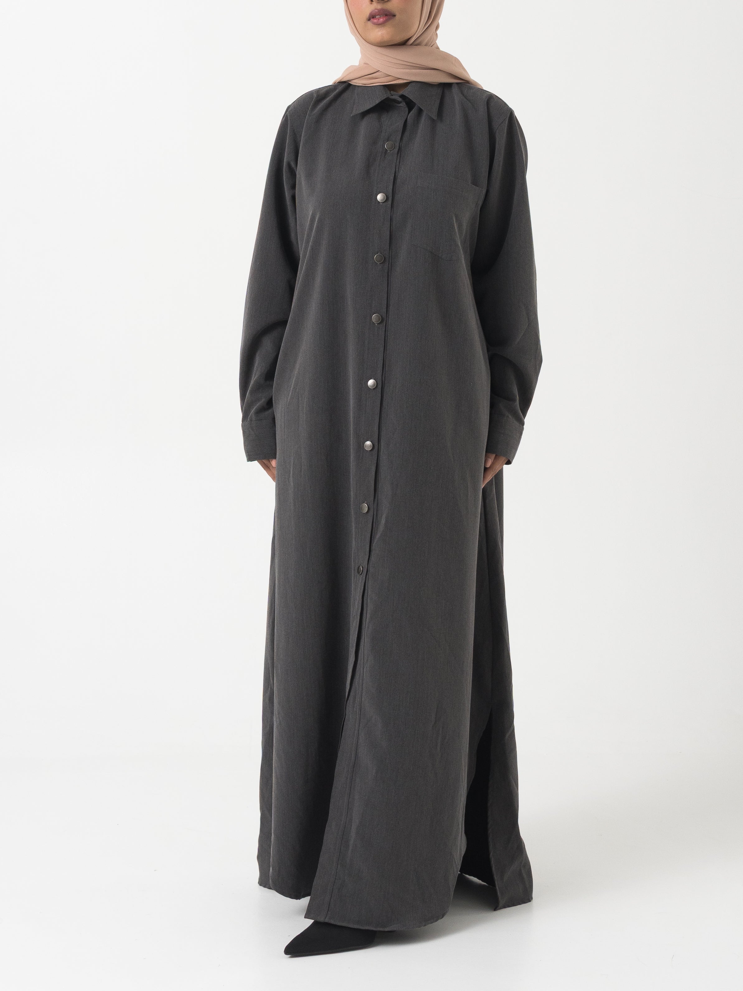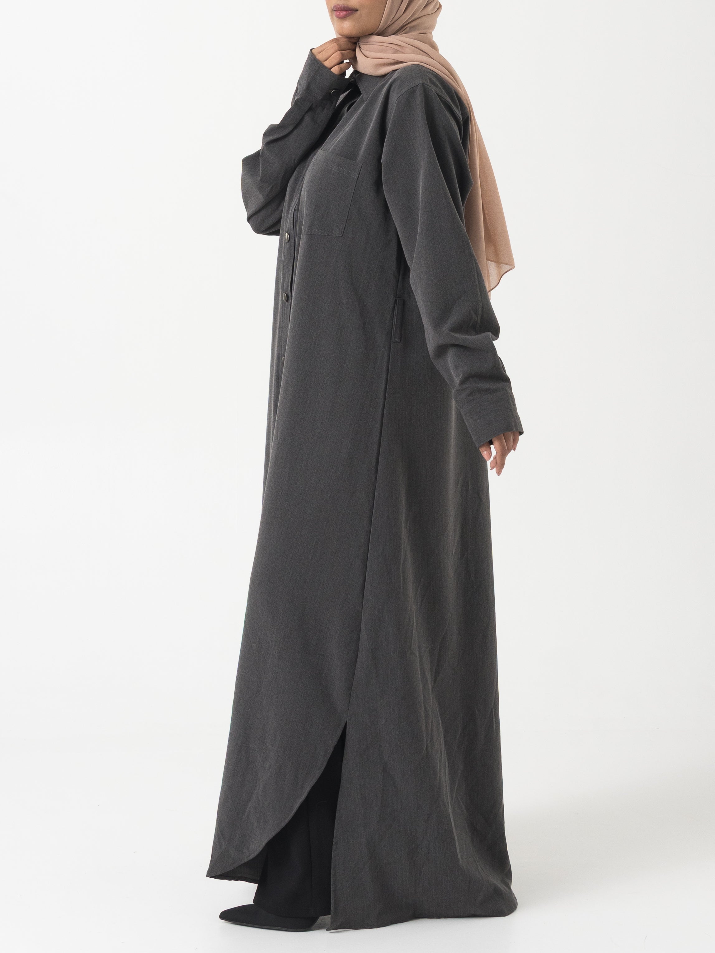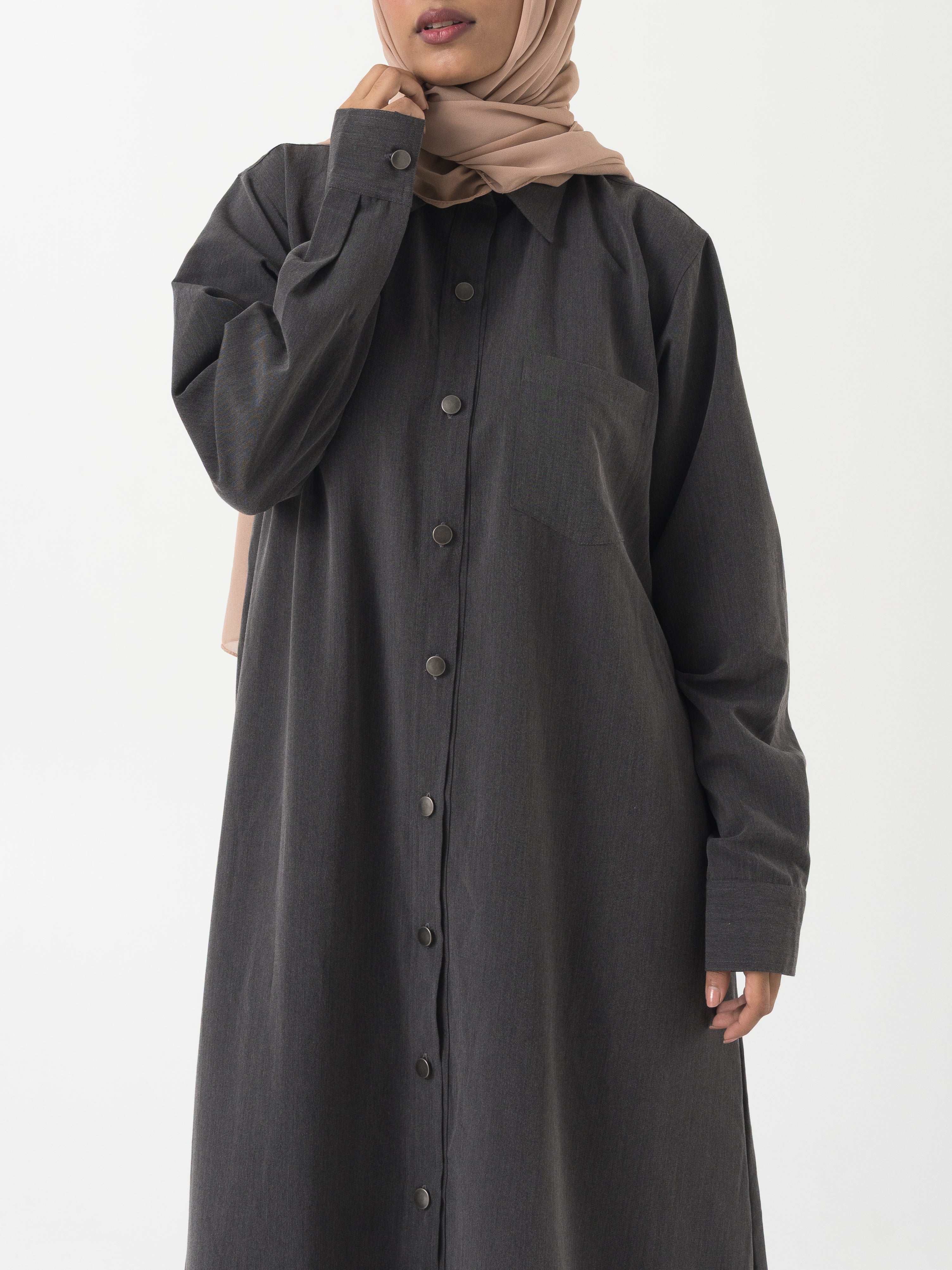 Effortless and versatile, the Shirt Dress is designed for everyday comfort with a touch of refined style. Crafted in lightweight denim, it drapes beautifully while offering a modest and contemporary silhouette. Perfect for both casual days and elevated looks, it’s a piece you’ll reach for on repeat.