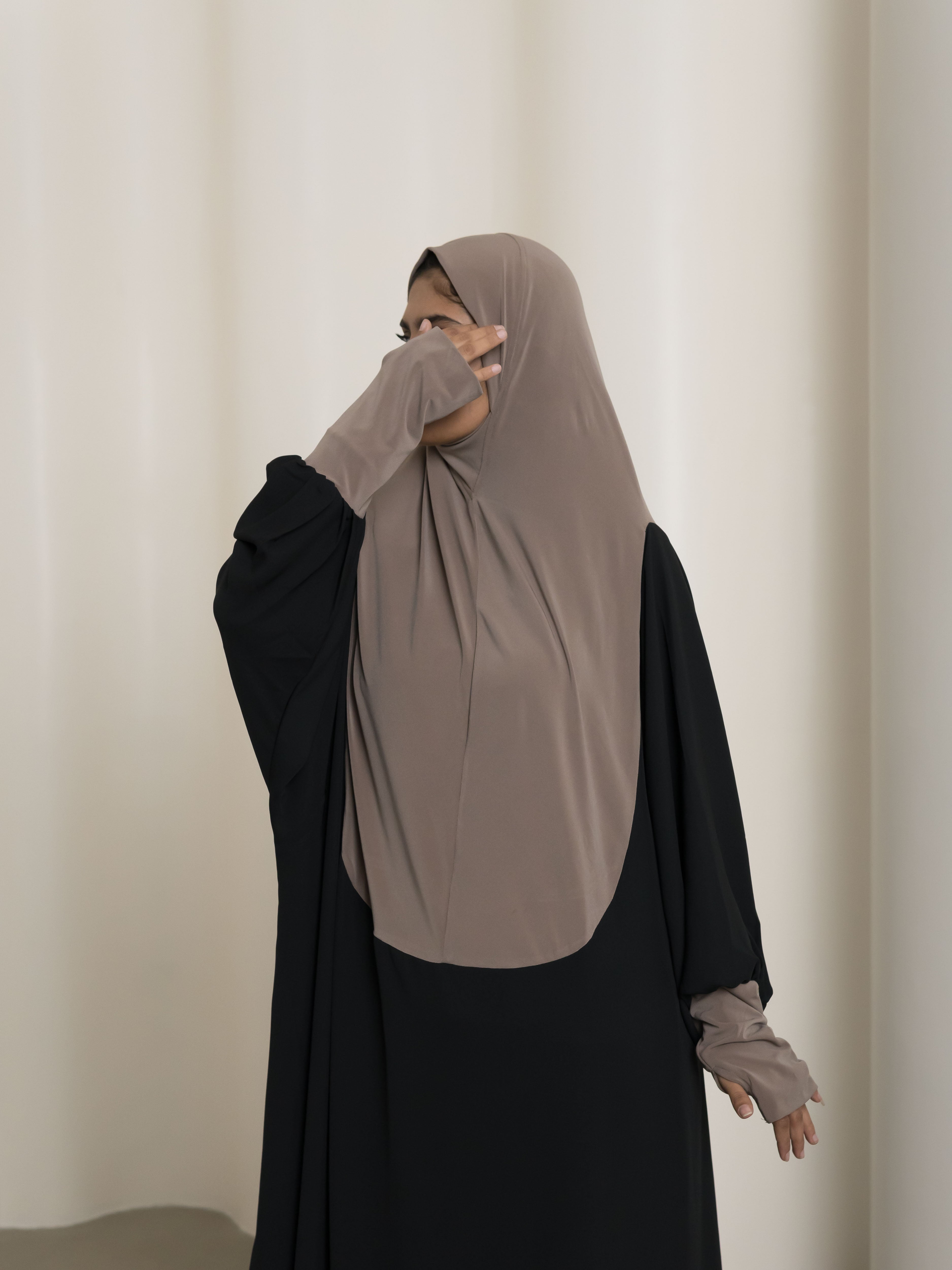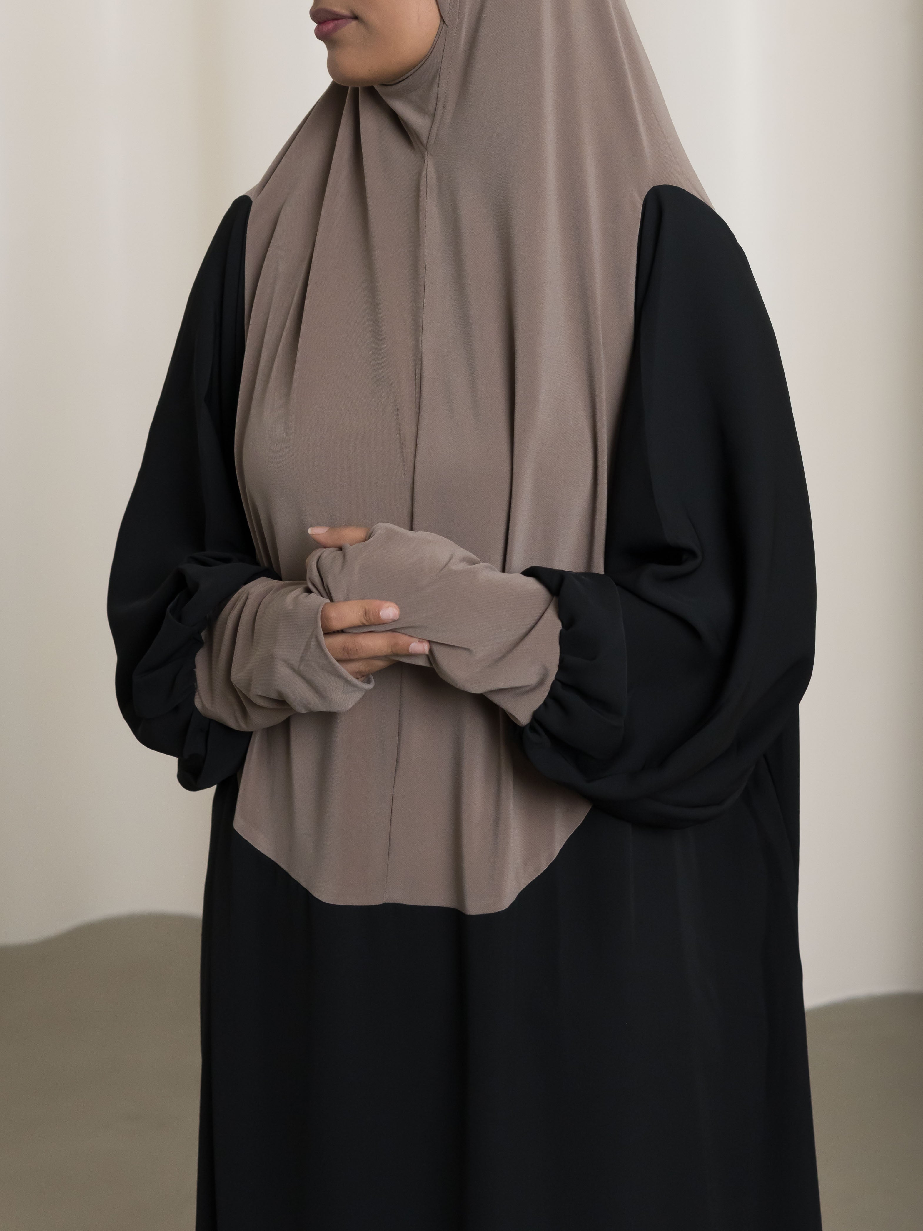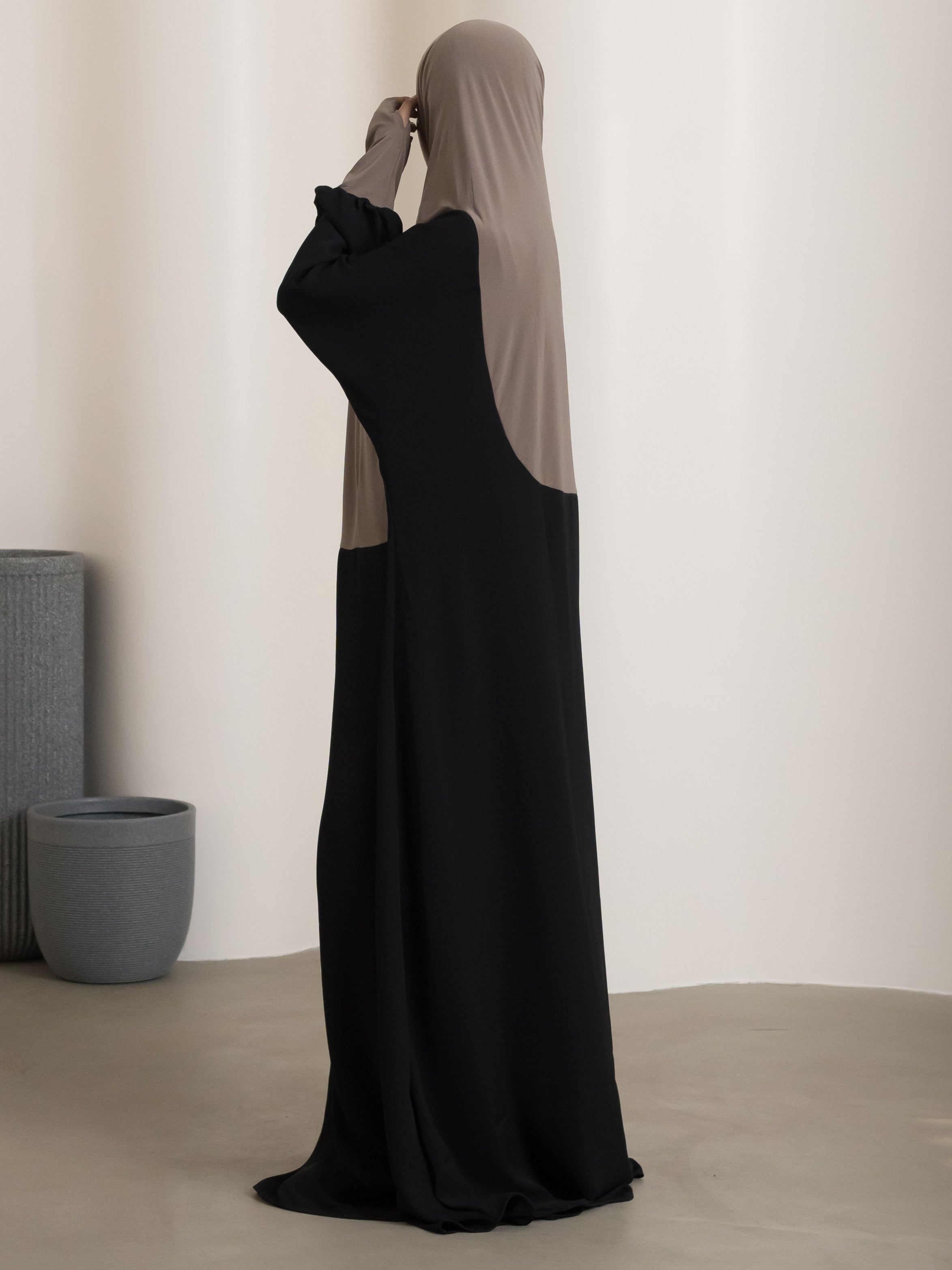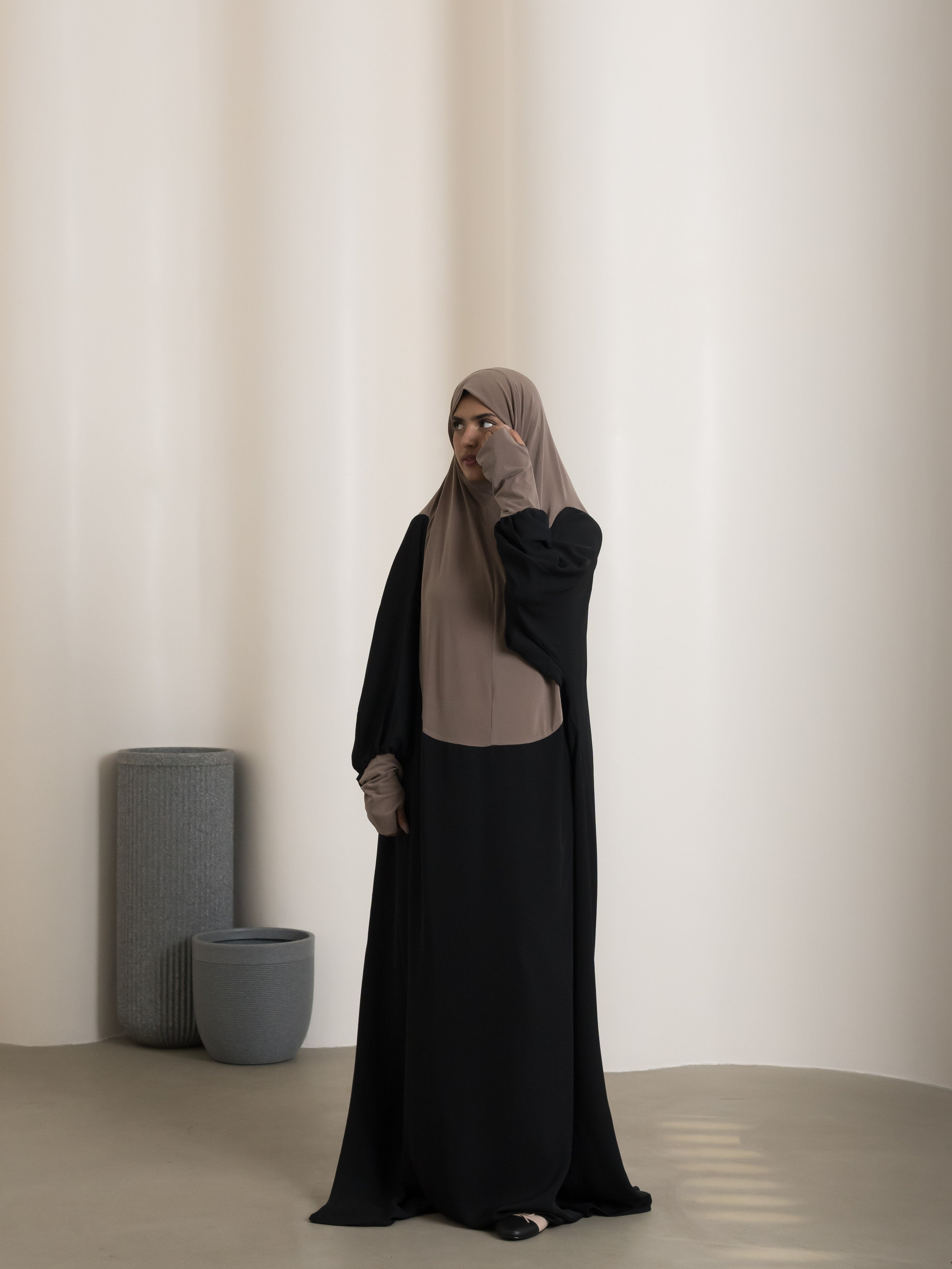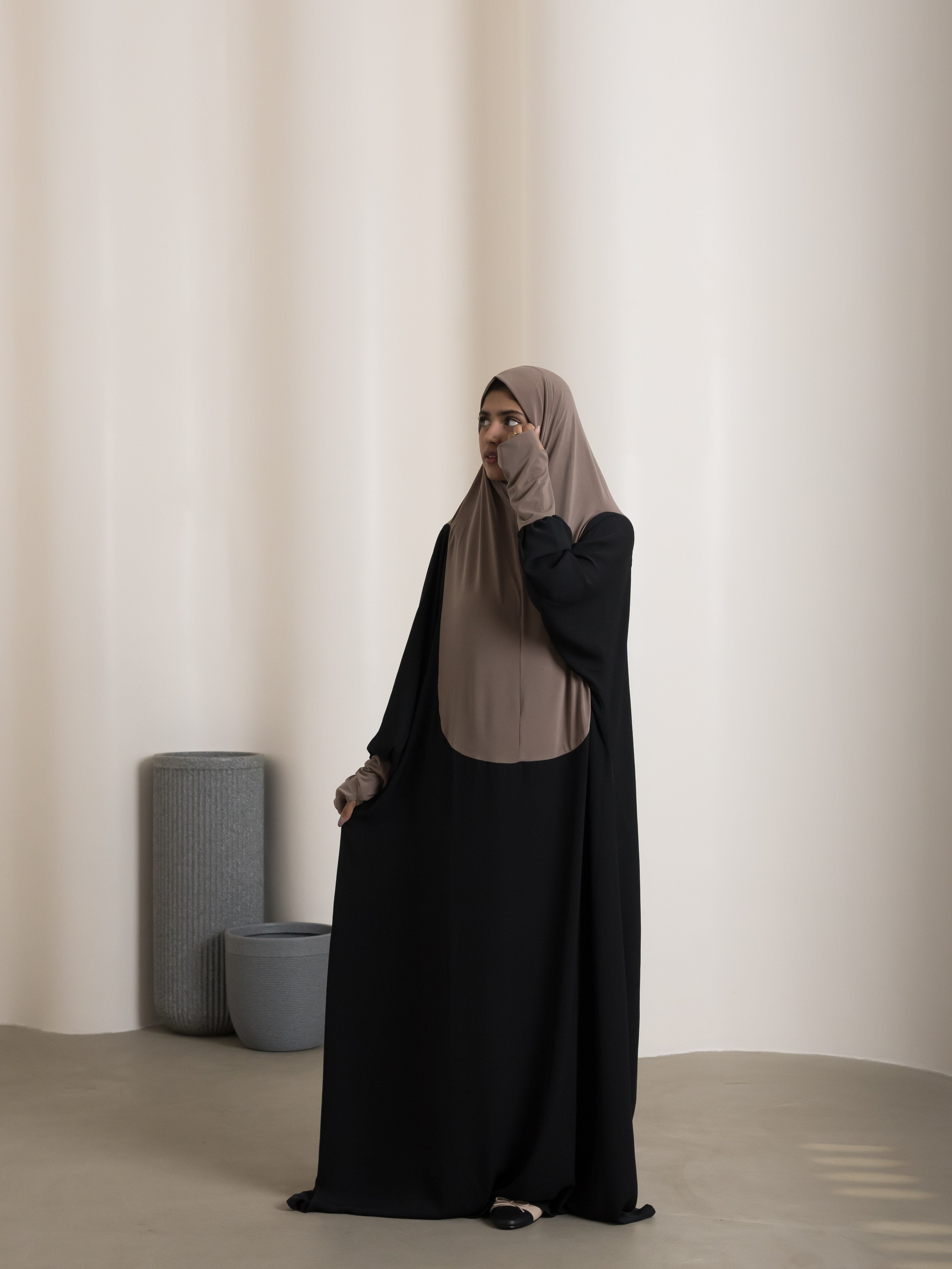 The Prayer Jilbab Abaya is designed for full coverage and ease, making it perfect for prayer and everyday wear. Featuring a unique attached jilbab design, it offers a seamless, modest look with effortless wearability.