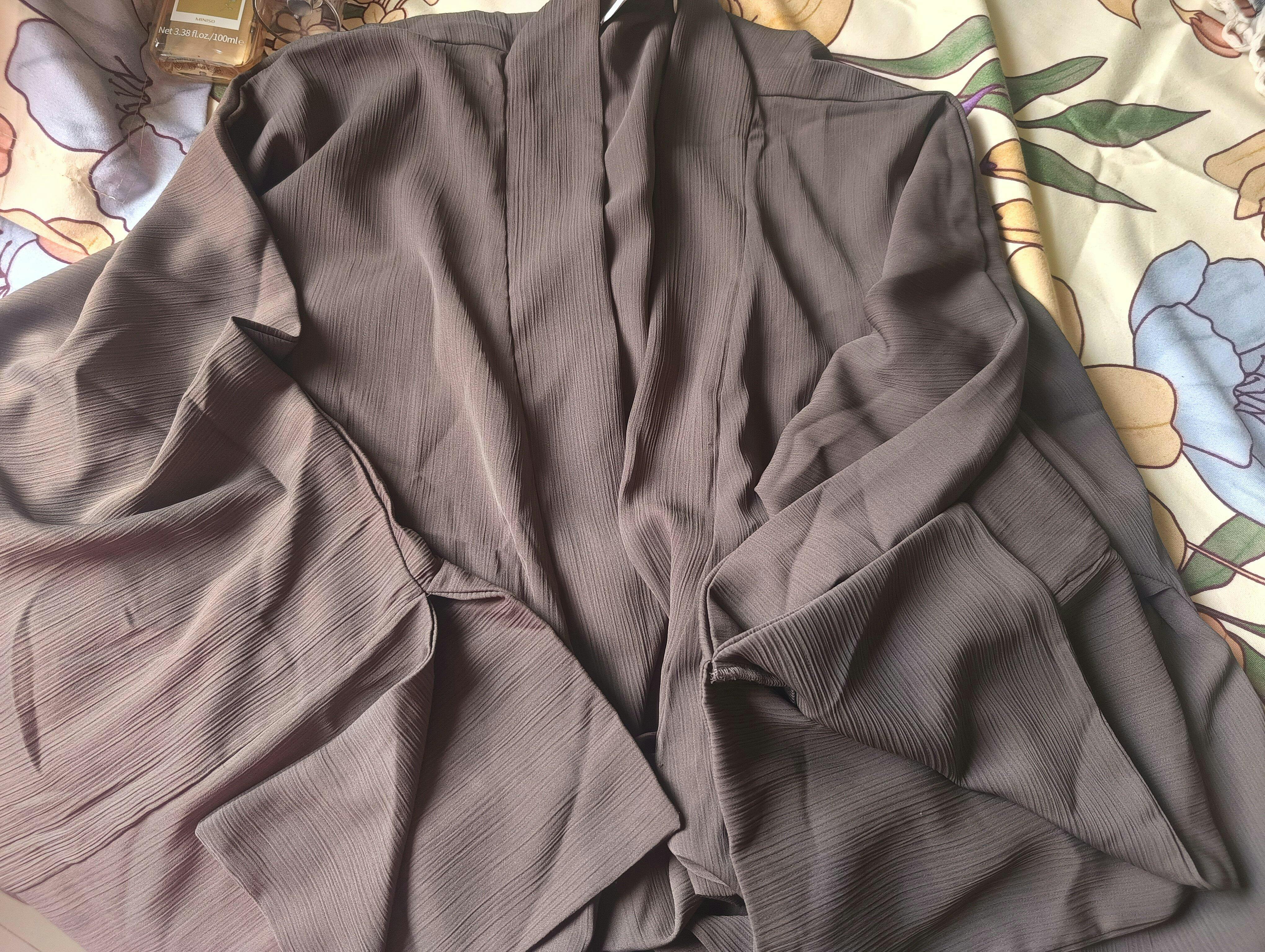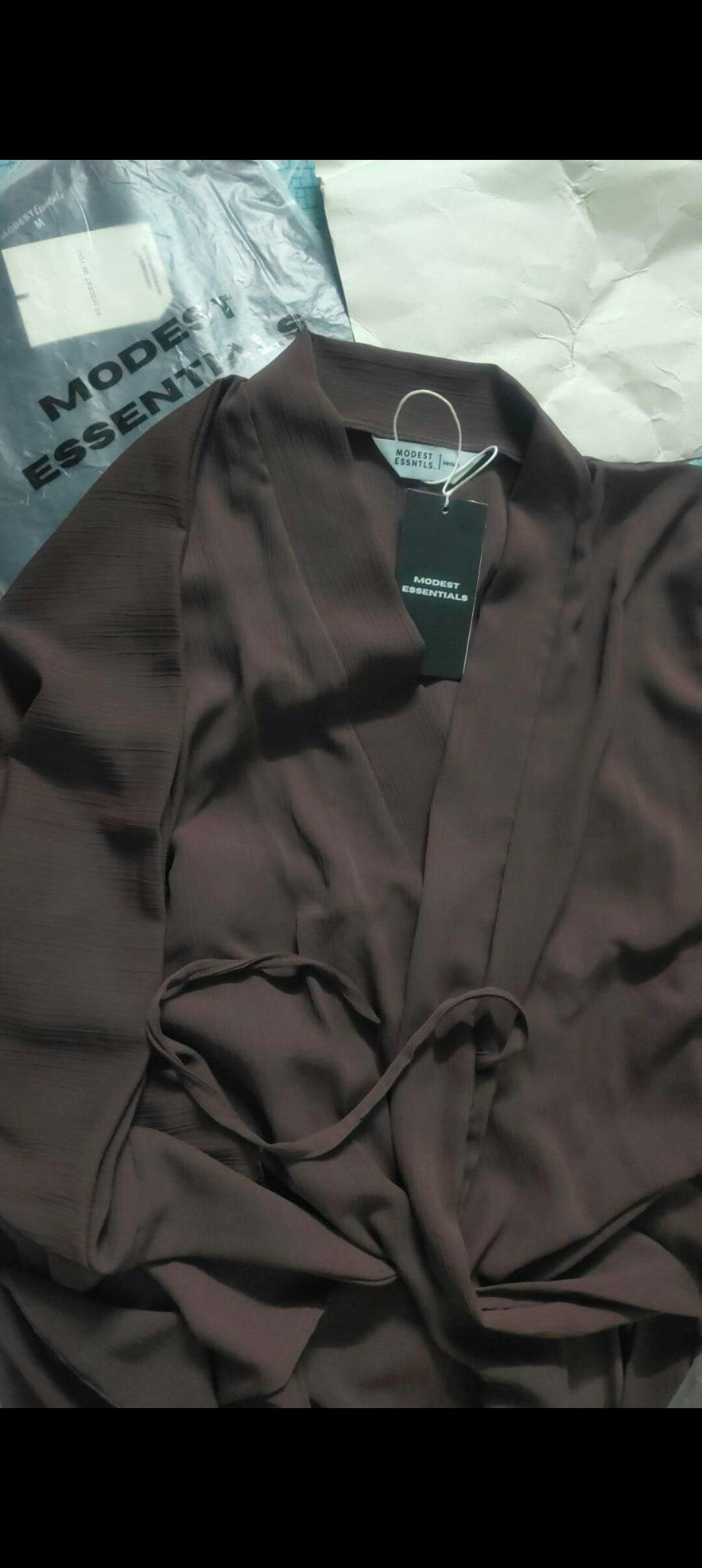 The Iram tie-up abaya is made from elegant crinkled satin fabric and features a tie-up closure in the front. It has a perfect abaya silhouette with slits on the sleeves for a modern touch. This abaya comes with an inner and a matching hijab.