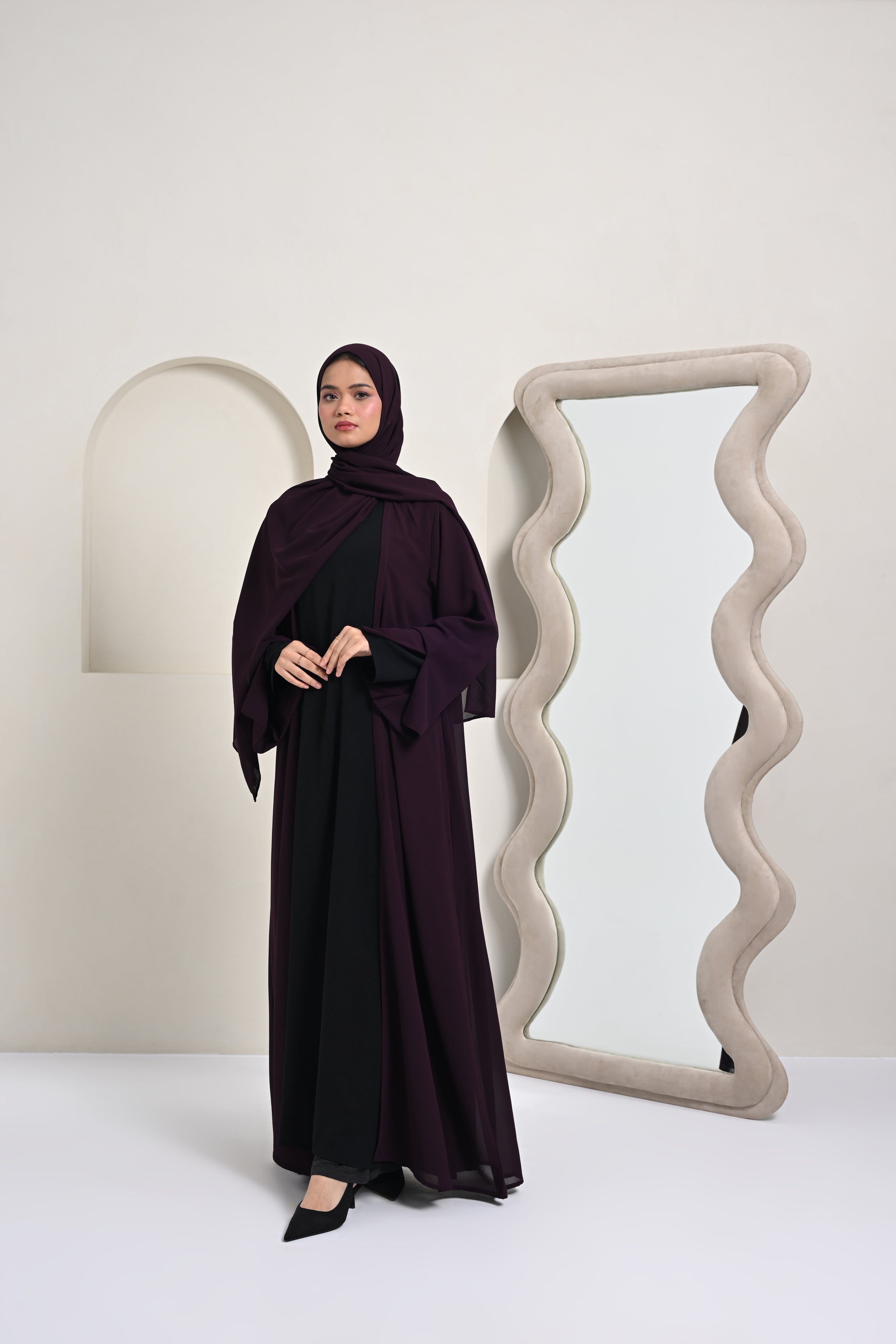 Essential Georgette Abaya (Attatched Hijab) - Plum
