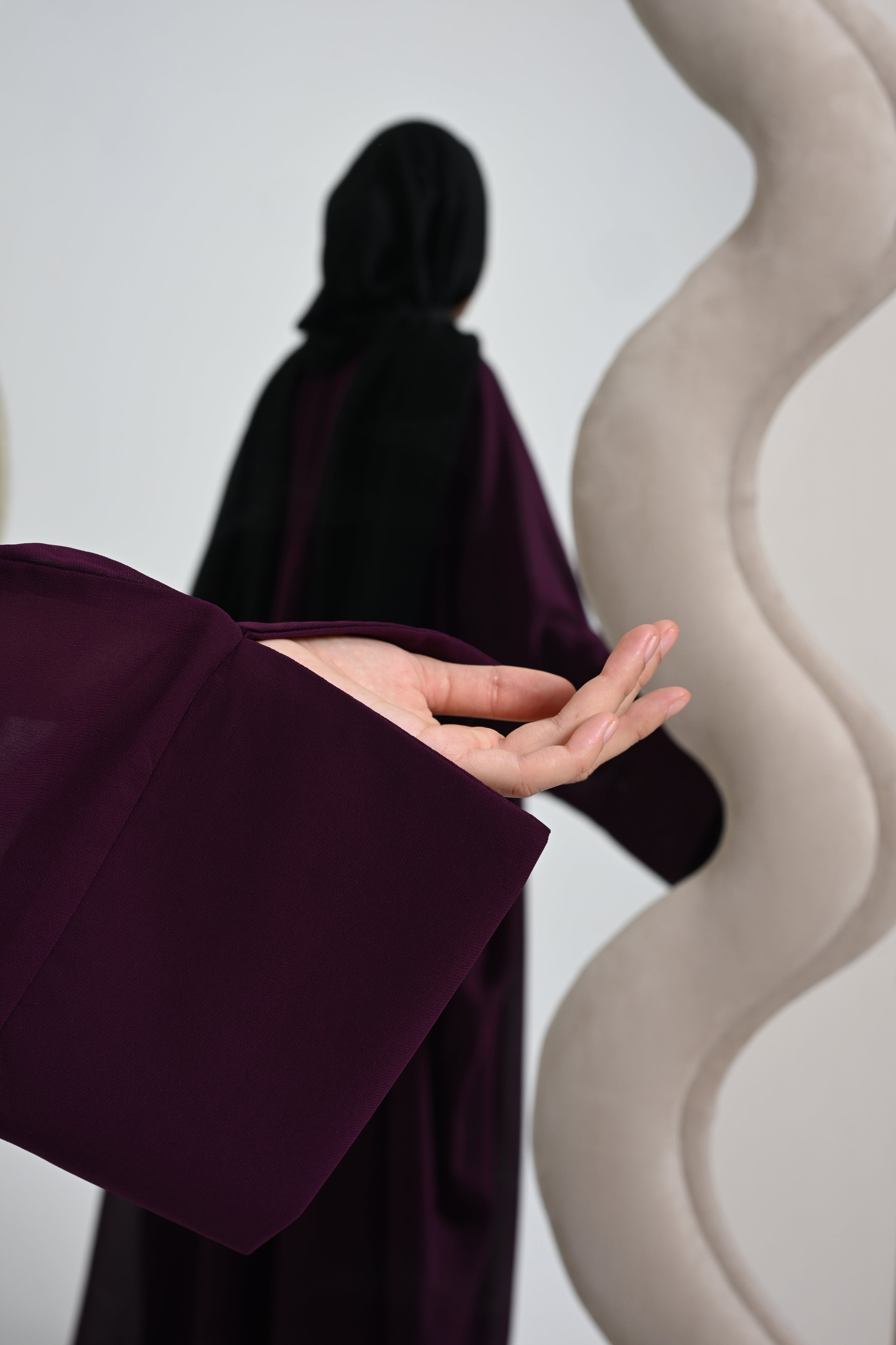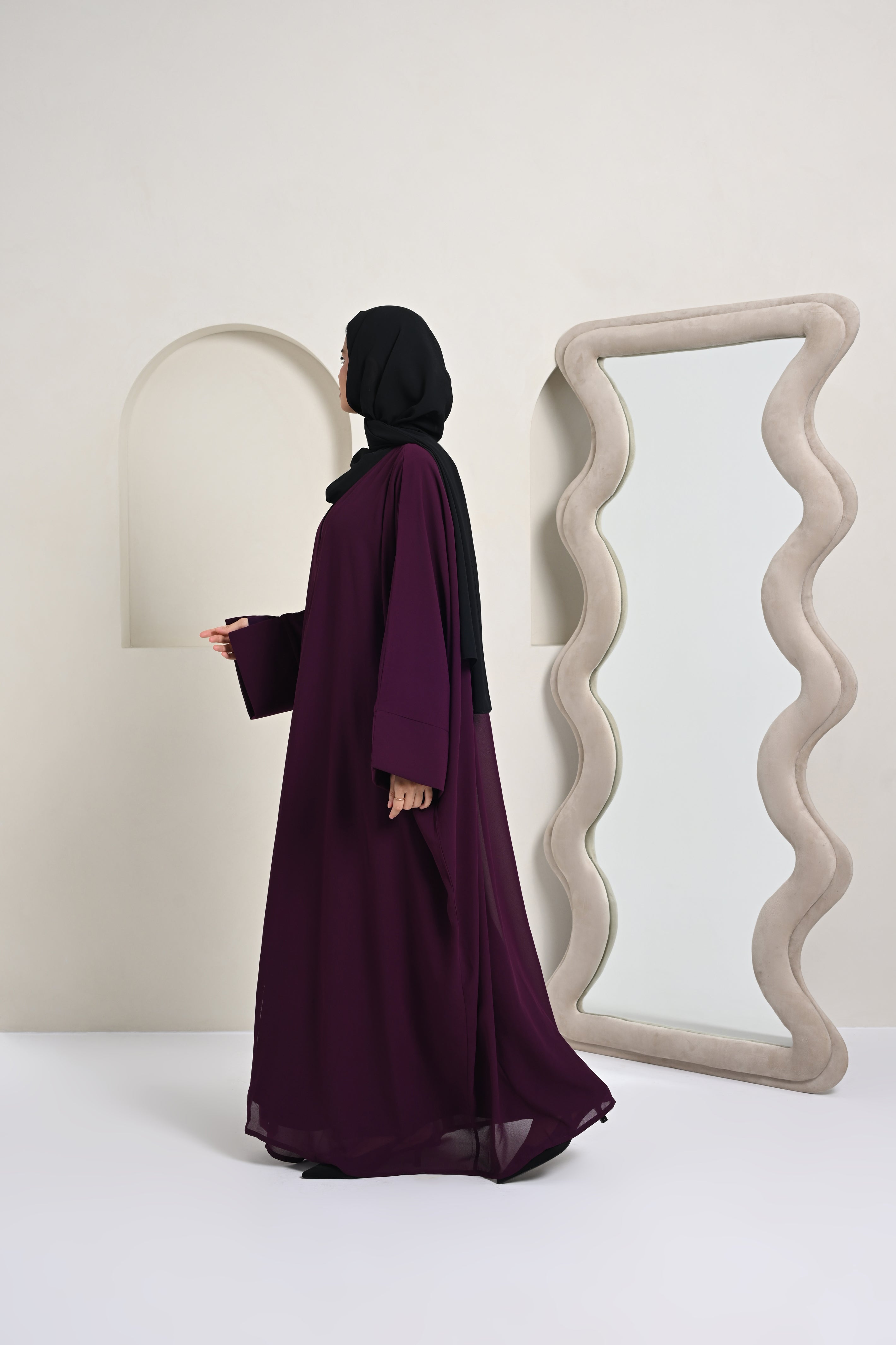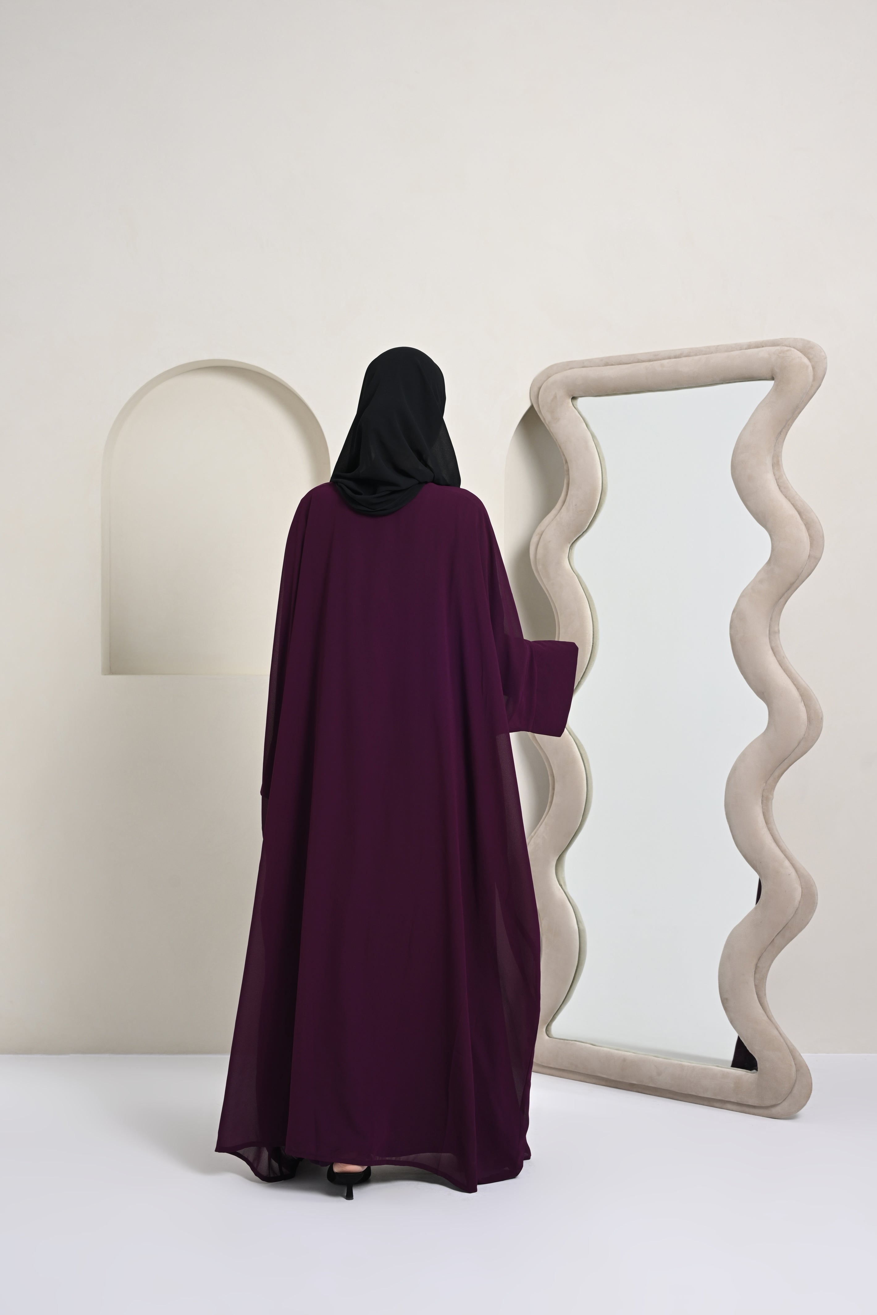 A flowing two-piece kaftan abaya designed for effortless elegance.