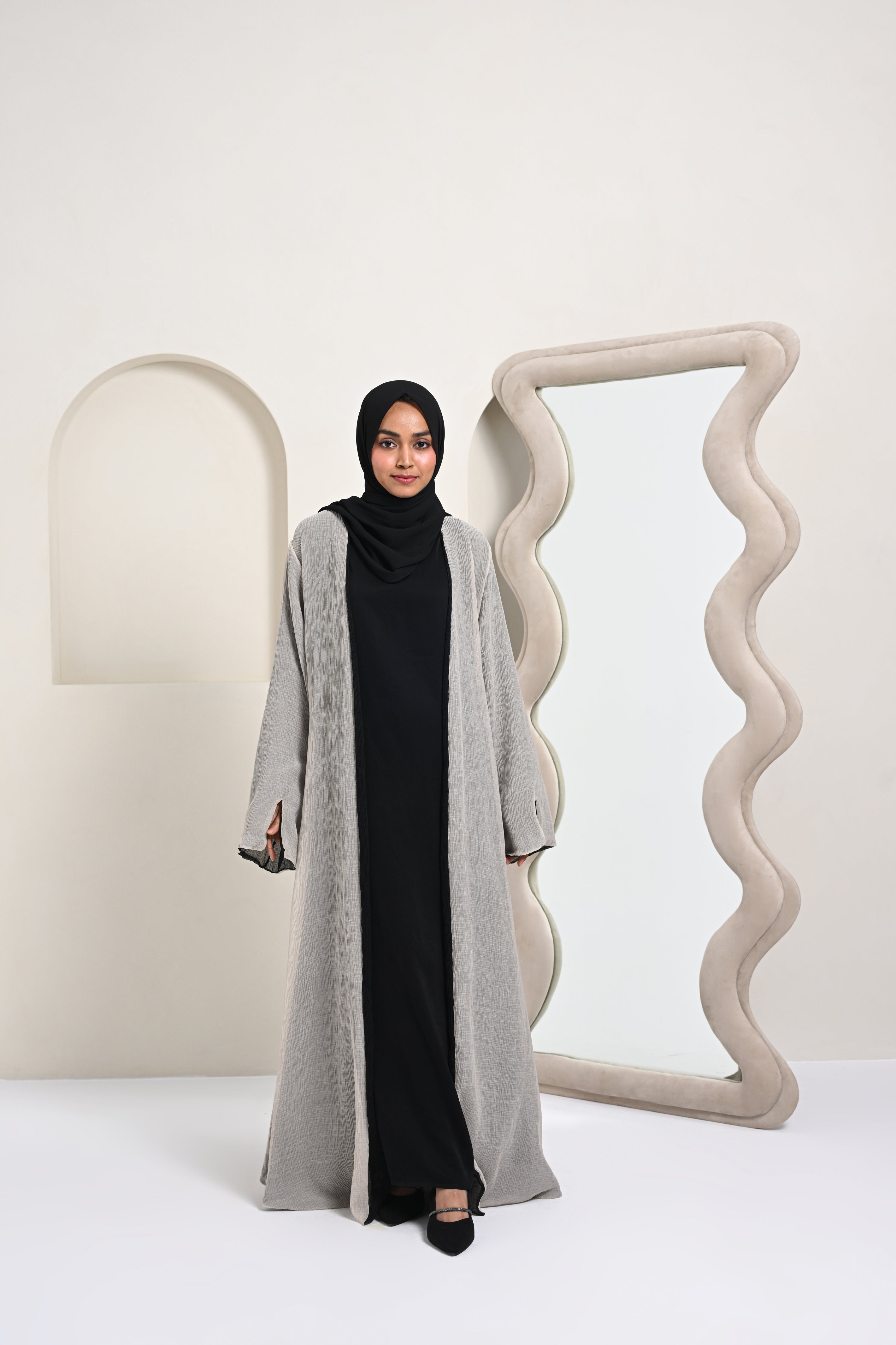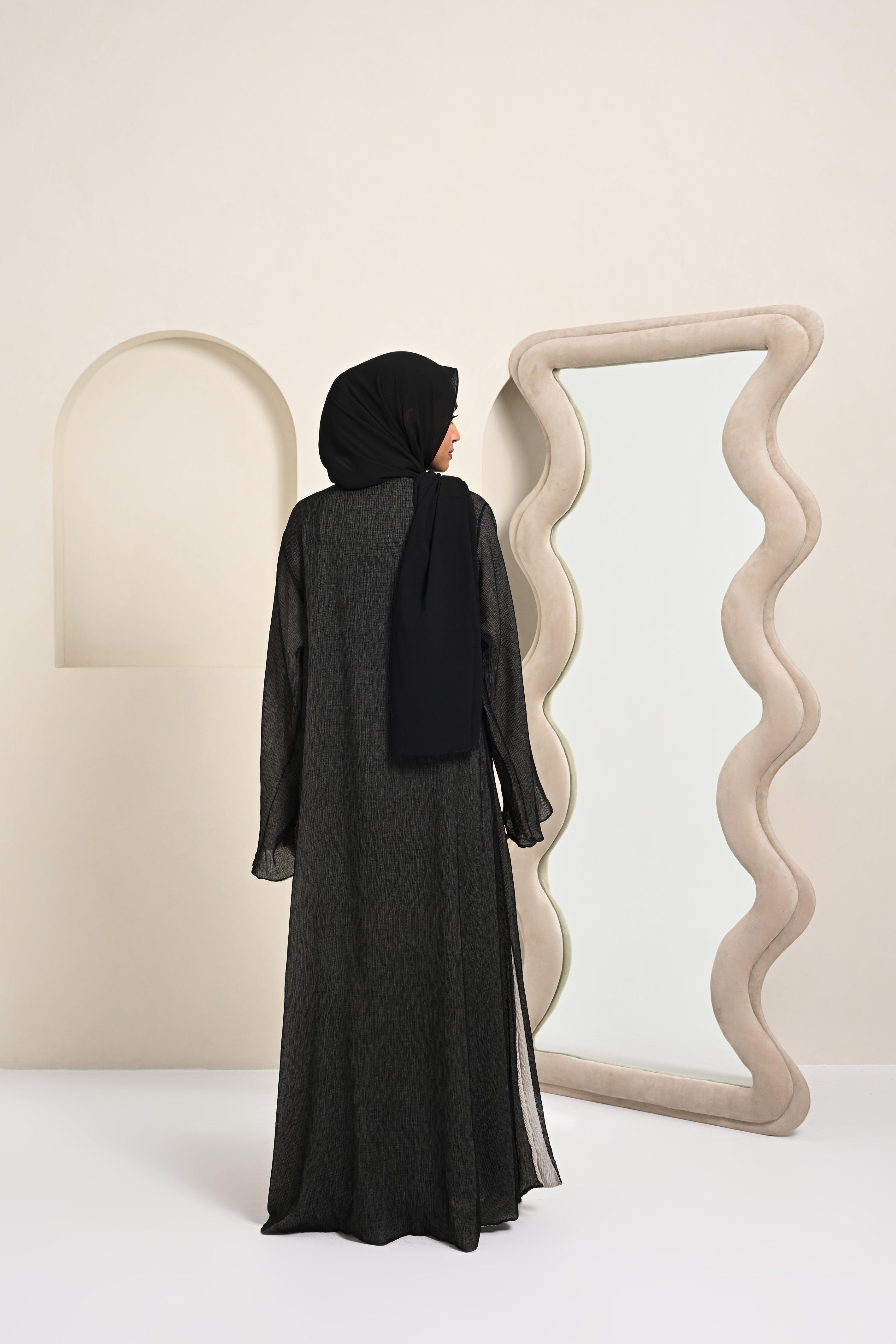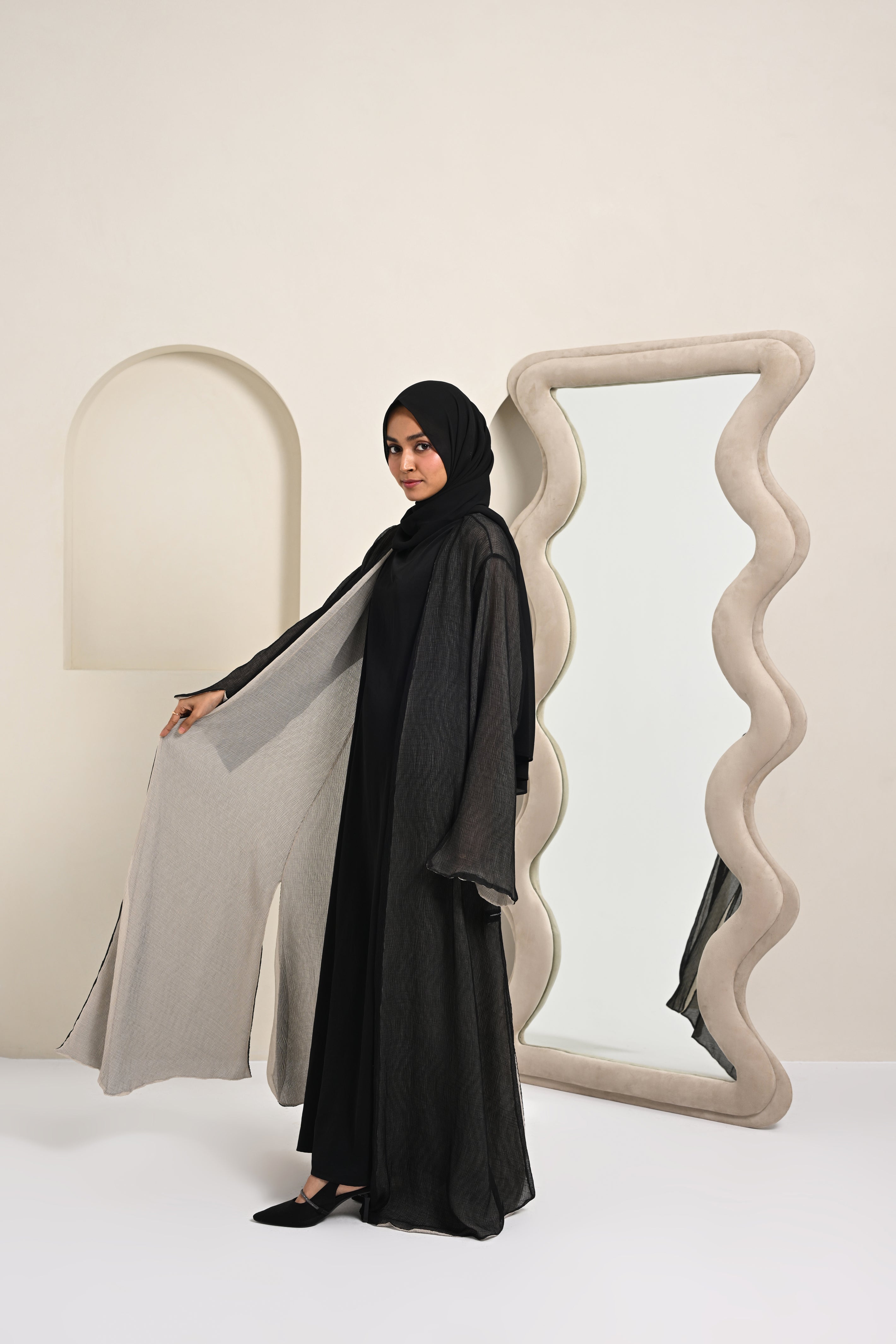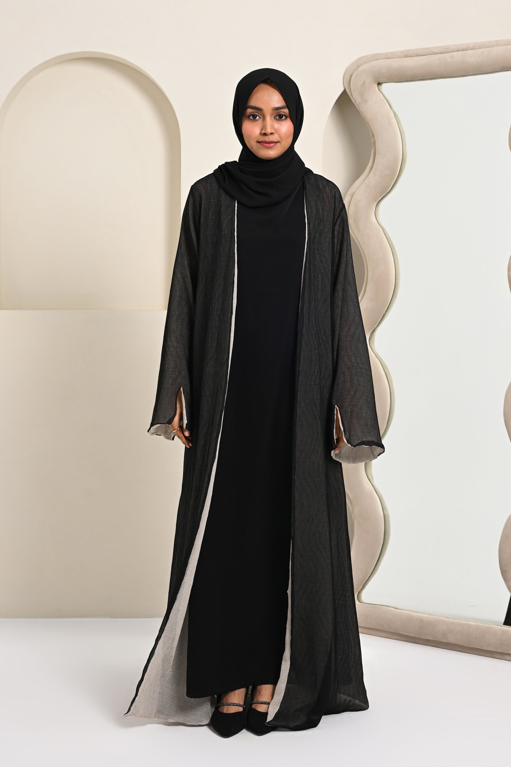 Crinkled Reversible Abaya - Black/White