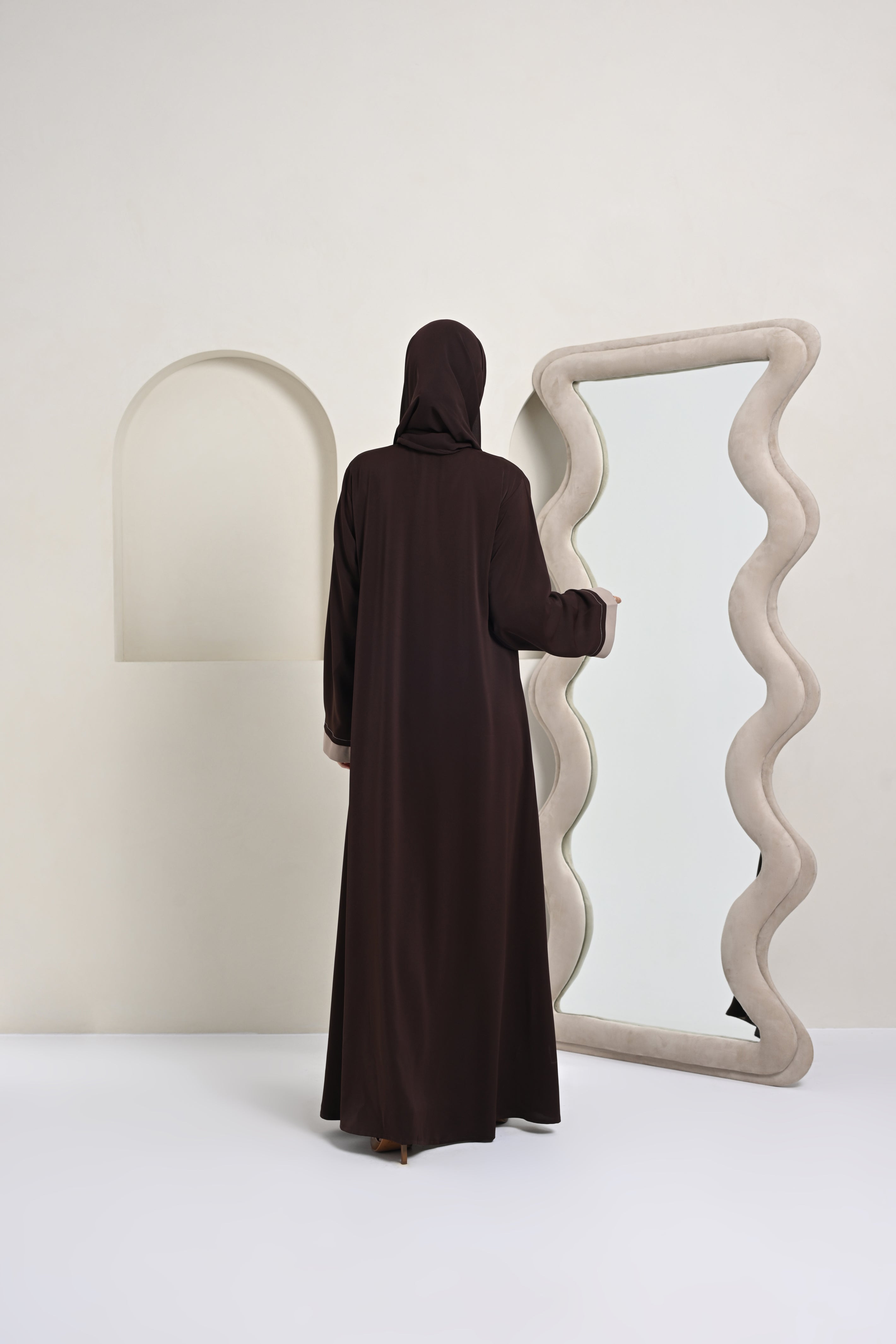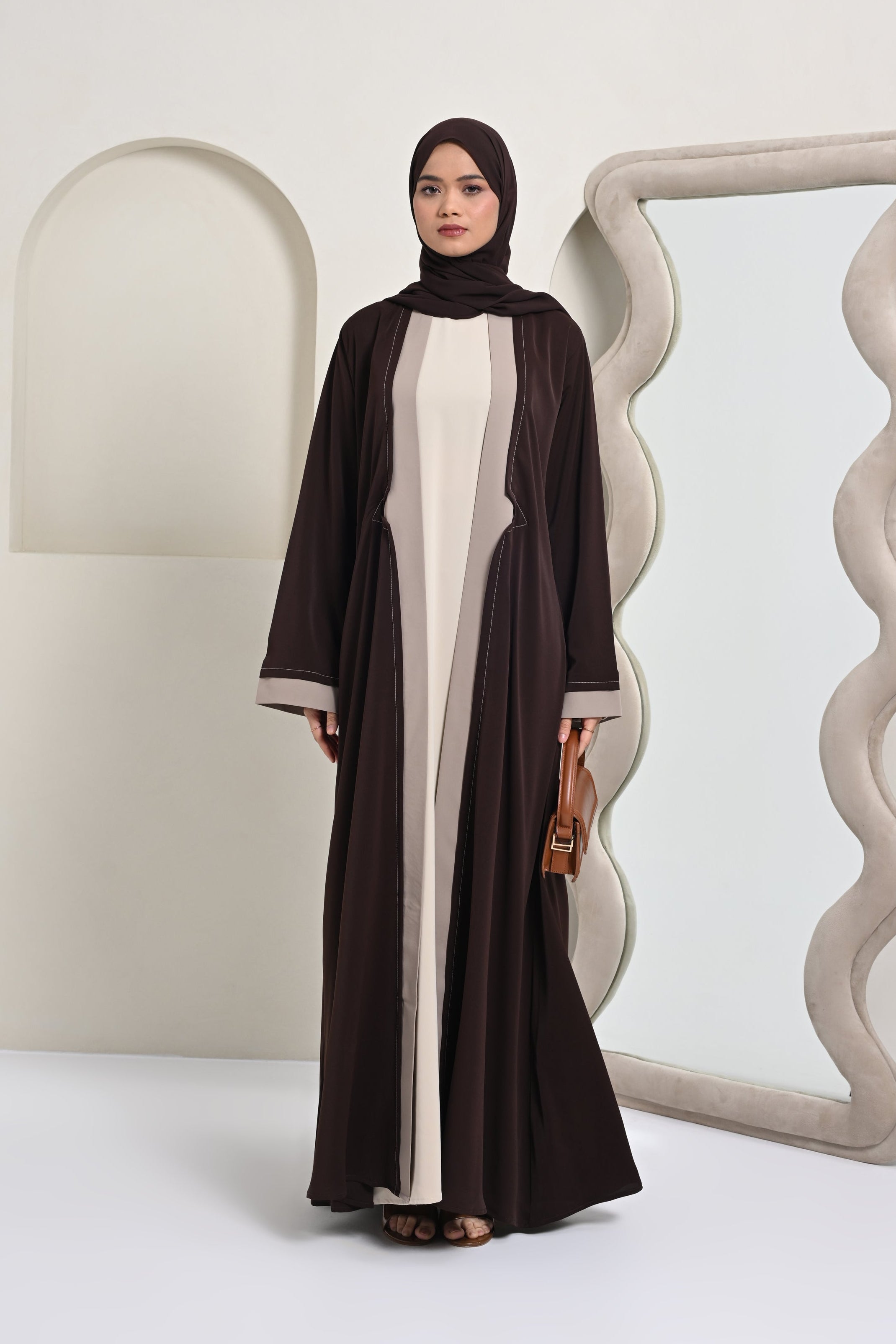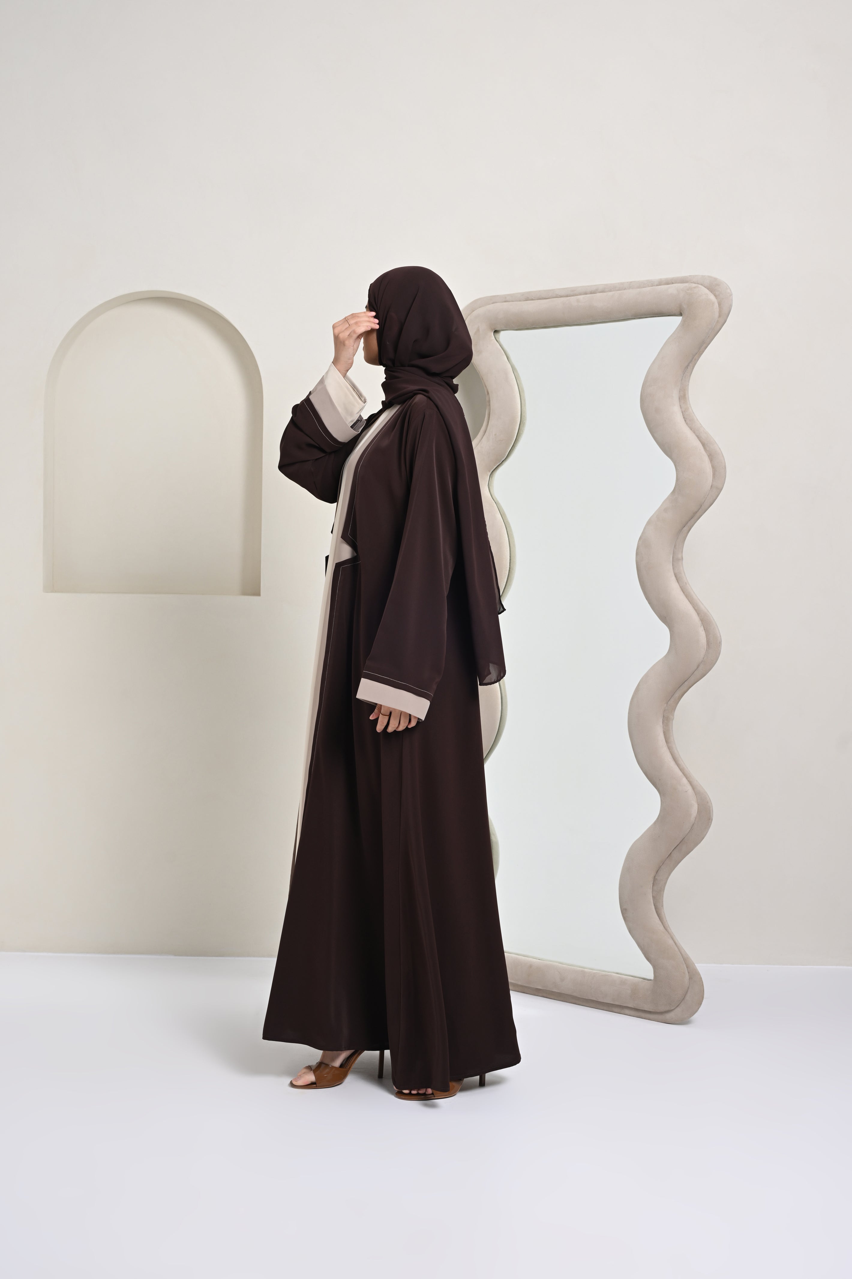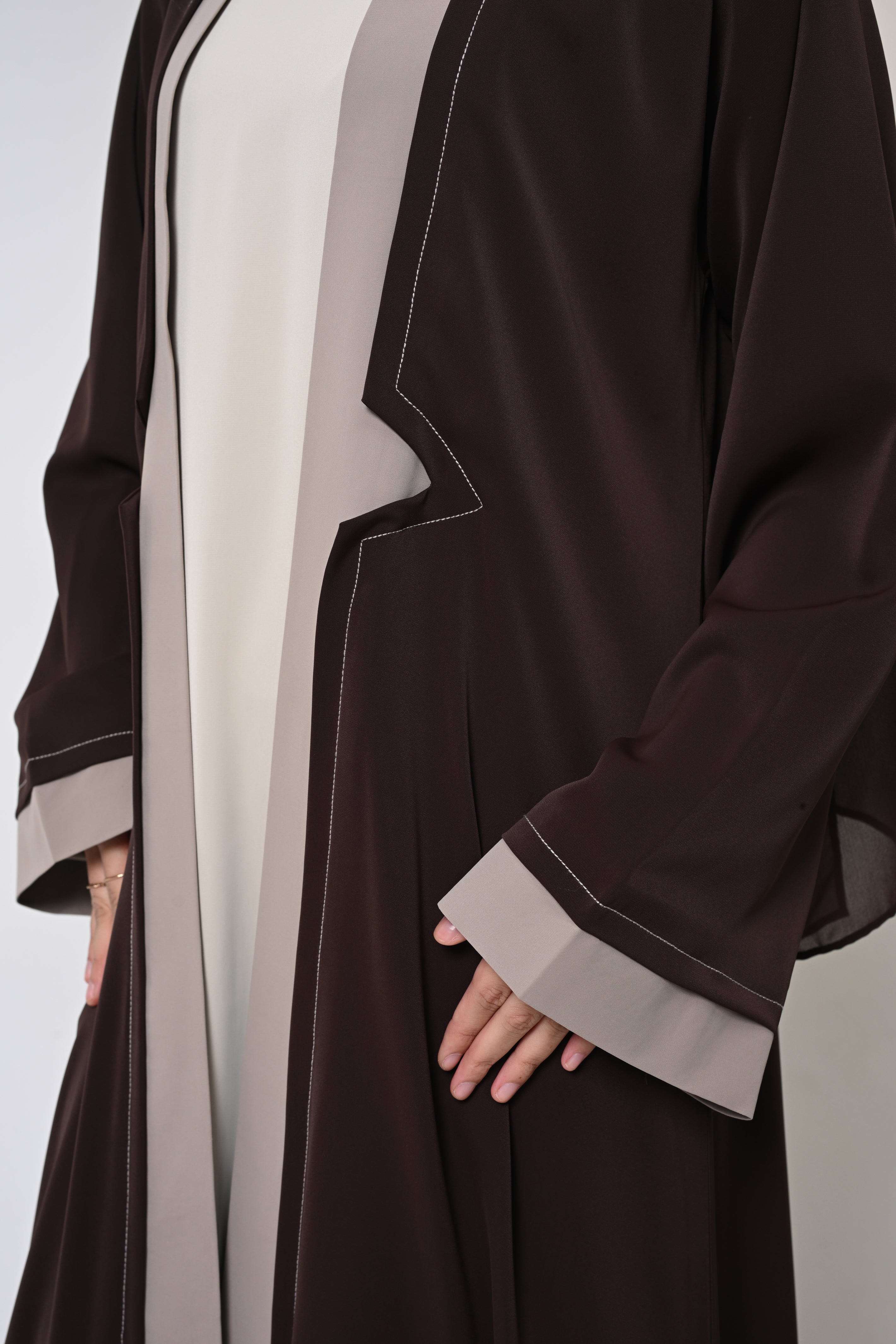A modern abaya featuring top-stitch panel detailing for a structured finish.