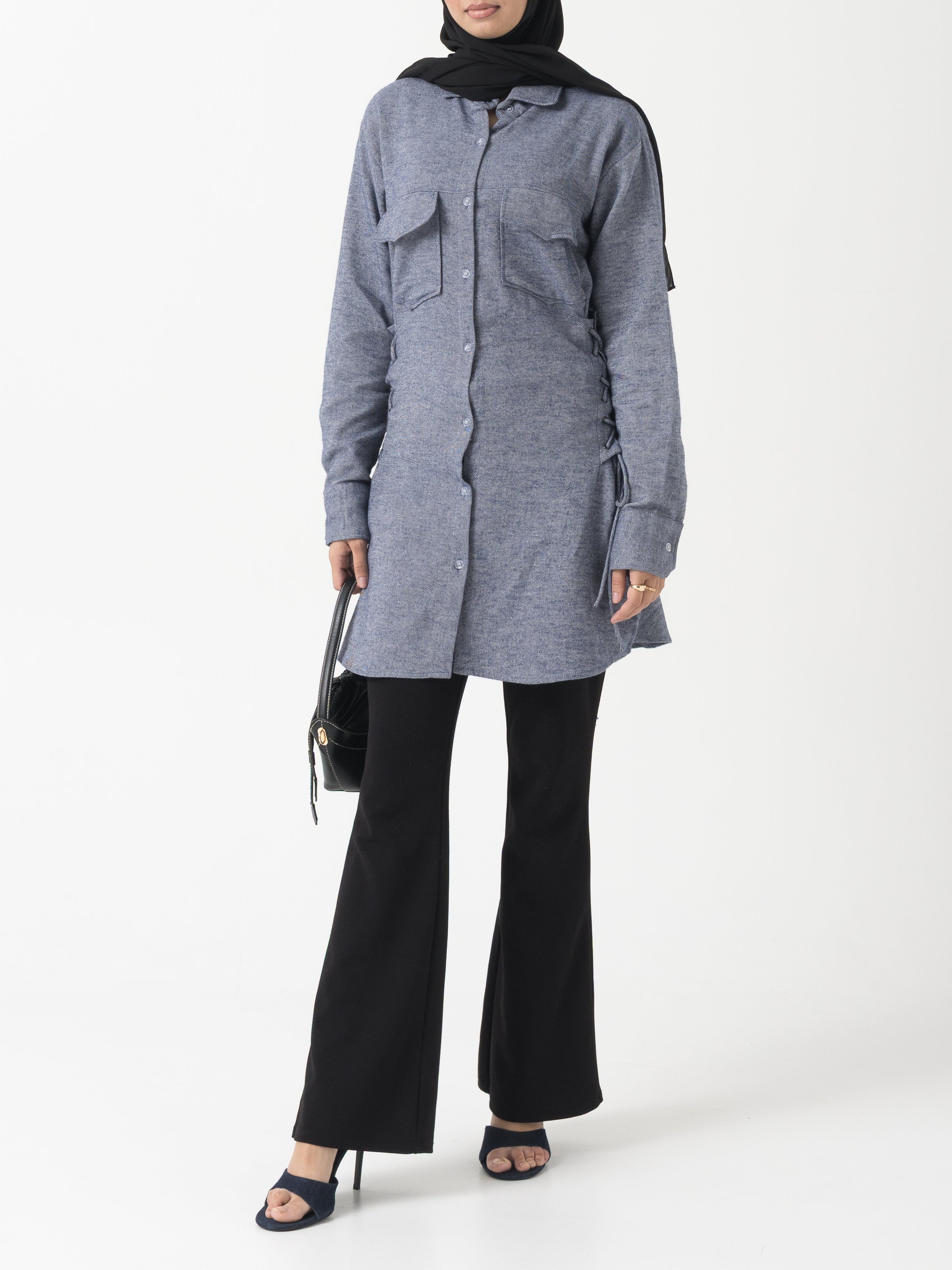 Crafted from high-quality denim, the Side Tie Up Top is a versatile piece that blends structure with style. Featuring corset-inspired tie-ups at both sides, it adds a fashionable yet practical detail, giving you the freedom to adjust the fit while maintaining a chic, modest silhouette.