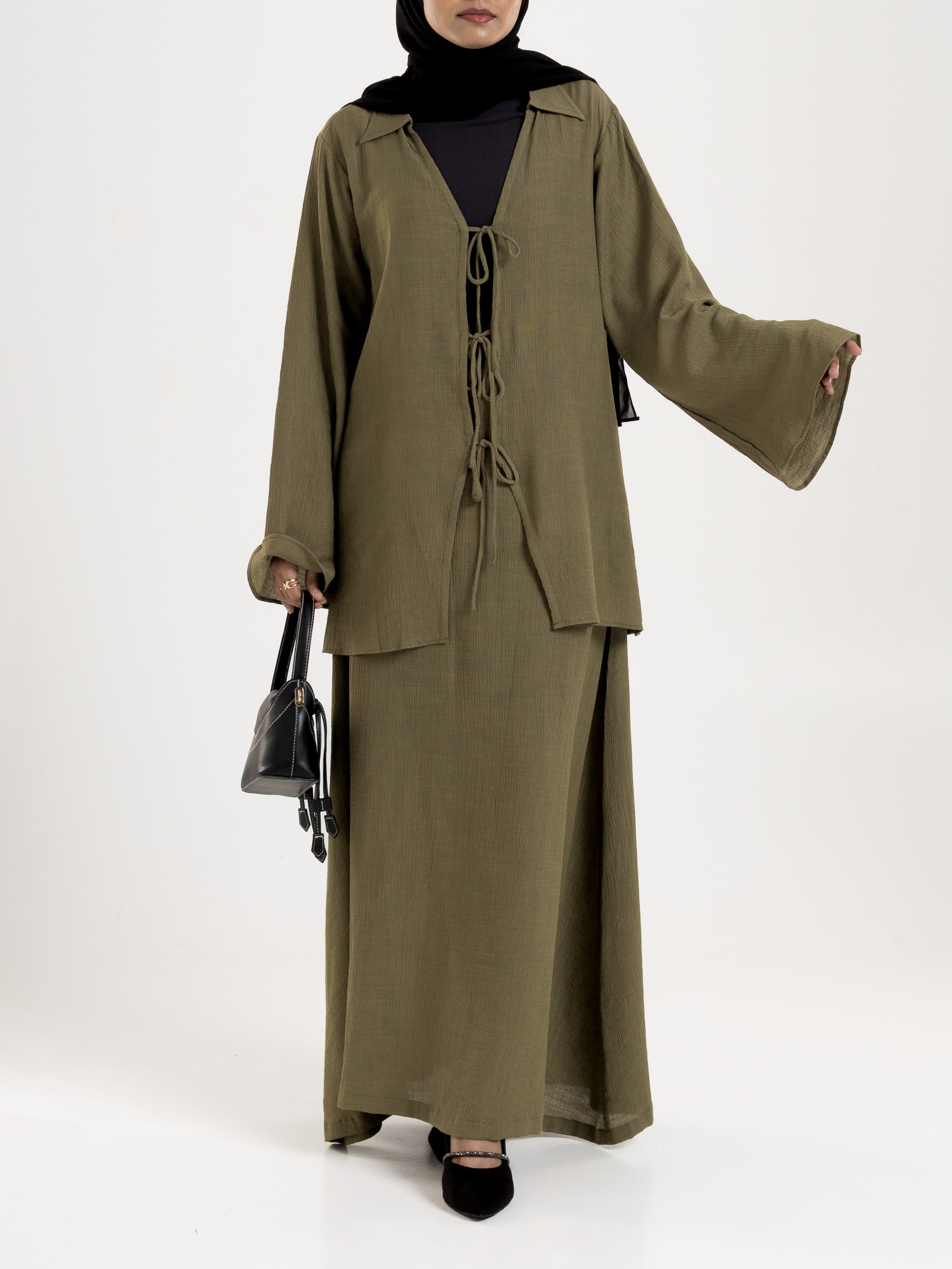 Amaya Tie-Up Skirt Set - Green