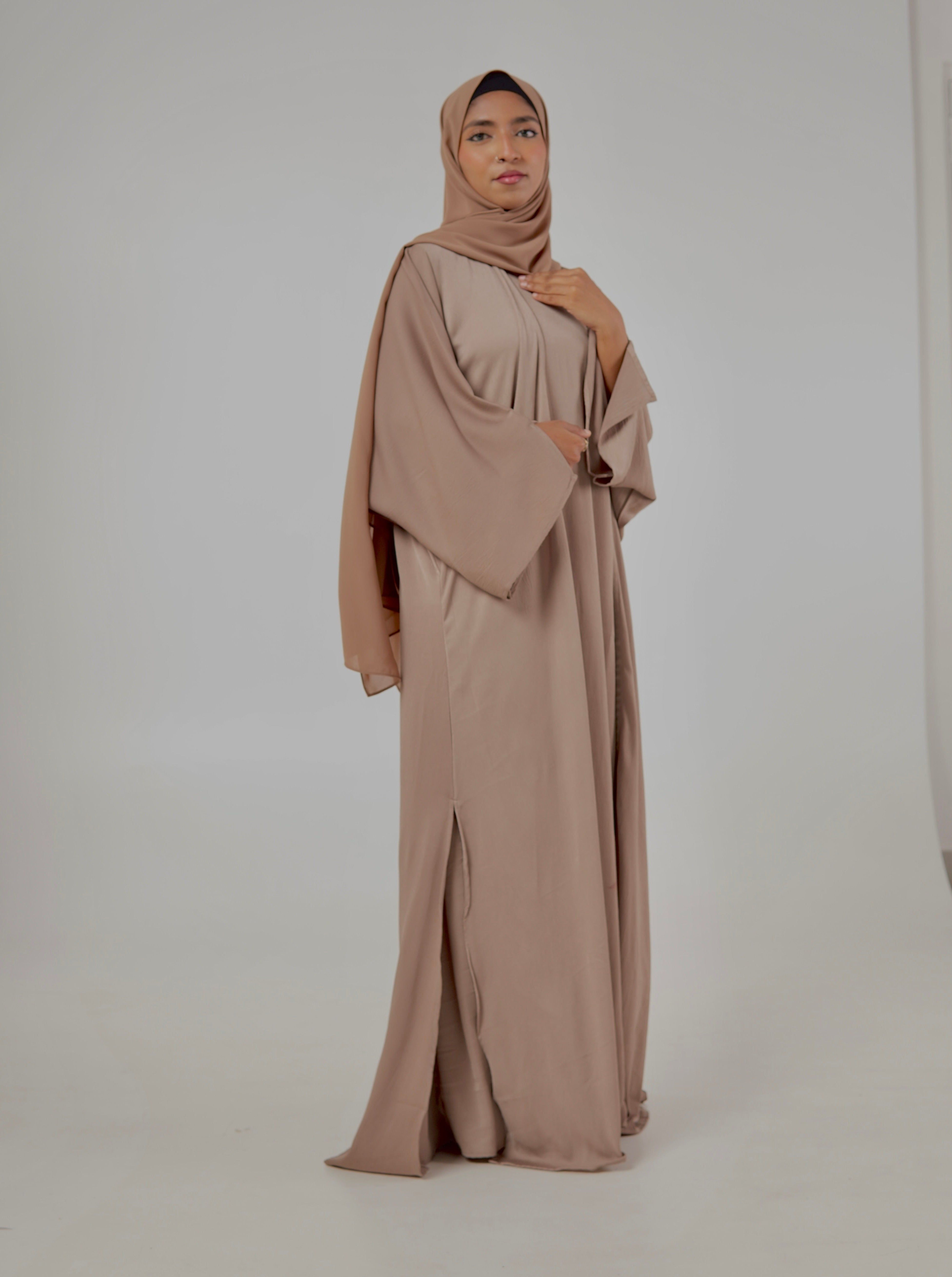 Introducing the Manaal Two Piece Abaya - Beige, where elegance meets comfort. Crafted from luxurious satin silk, this flowy abaya set will make you feel like royalty wherever you go. With its beautiful shades that exude sophistication, you'll effortlessly stand out from the crowd. Whether it's a special occasion or a casual outing, the Manaal Two Piece Abaya is your perfect companion for embracing modest fashion with style. Step into the world of grace and beauty today!