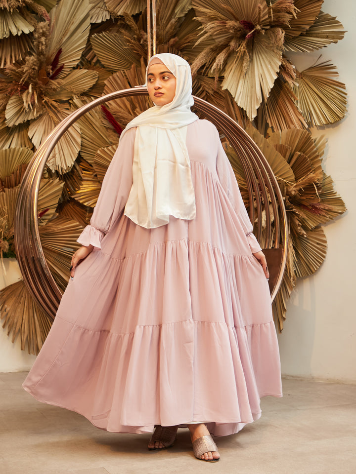 The Layered Abaya is a unique design that provides depth and elegance to your OOTD. This style exudes femininity and elegance with its ruffle pattern on the sleeves. It can be worn as an Abaya or a shrug, similar to our striped abaya, allowing you to experiment with different looks. The soft and airy fabric used in its make makes it a wonderful choice for the summer season. With this abaya style, embrace the layered trend and create a fashion statement while maintaining modesty.