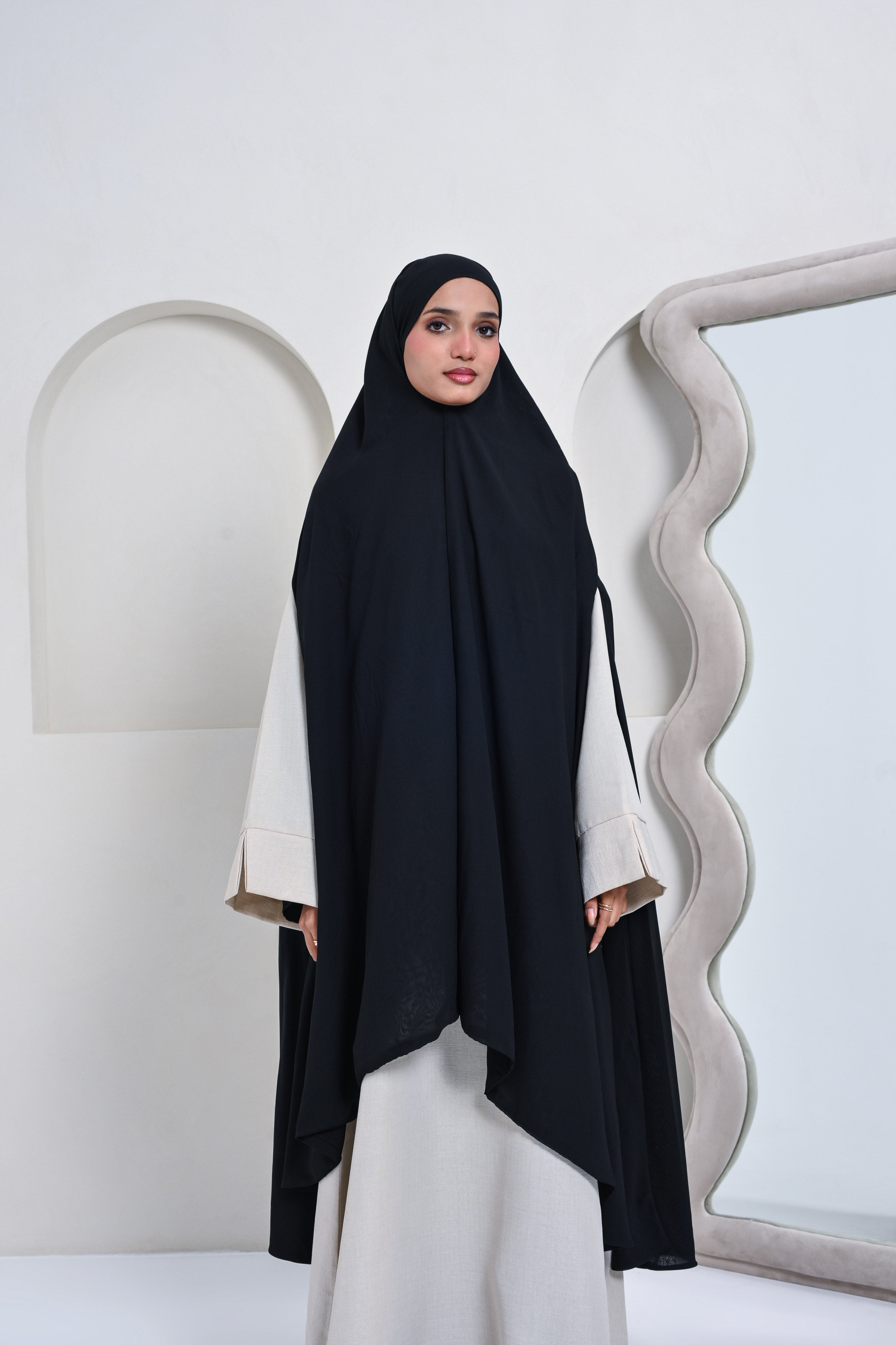 Designed for effortless modesty, the Khimar Prayer Wear offers graceful coverage with a lightweight, flowy silhouette. Perfect for daily prayers, it blends comfort and elegance so you can focus with ease and serenity.