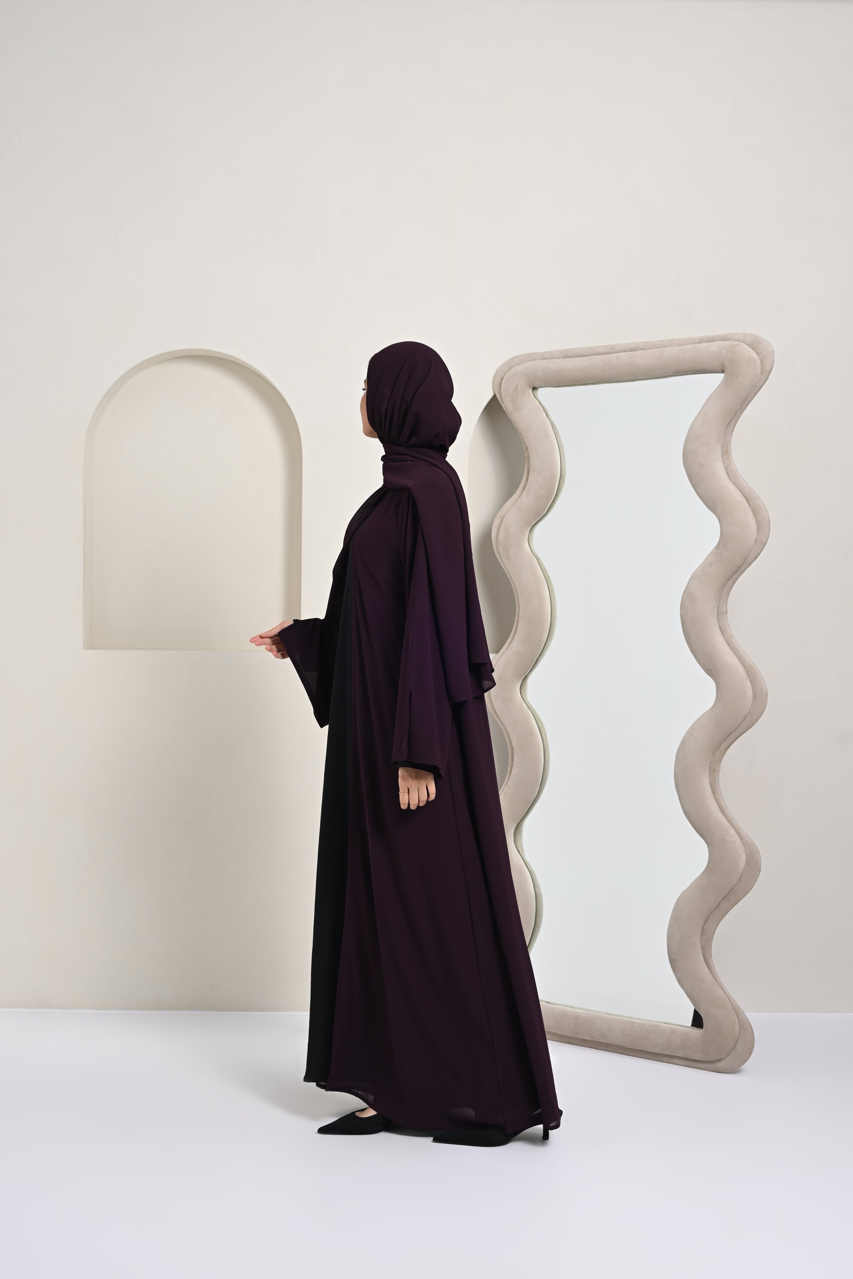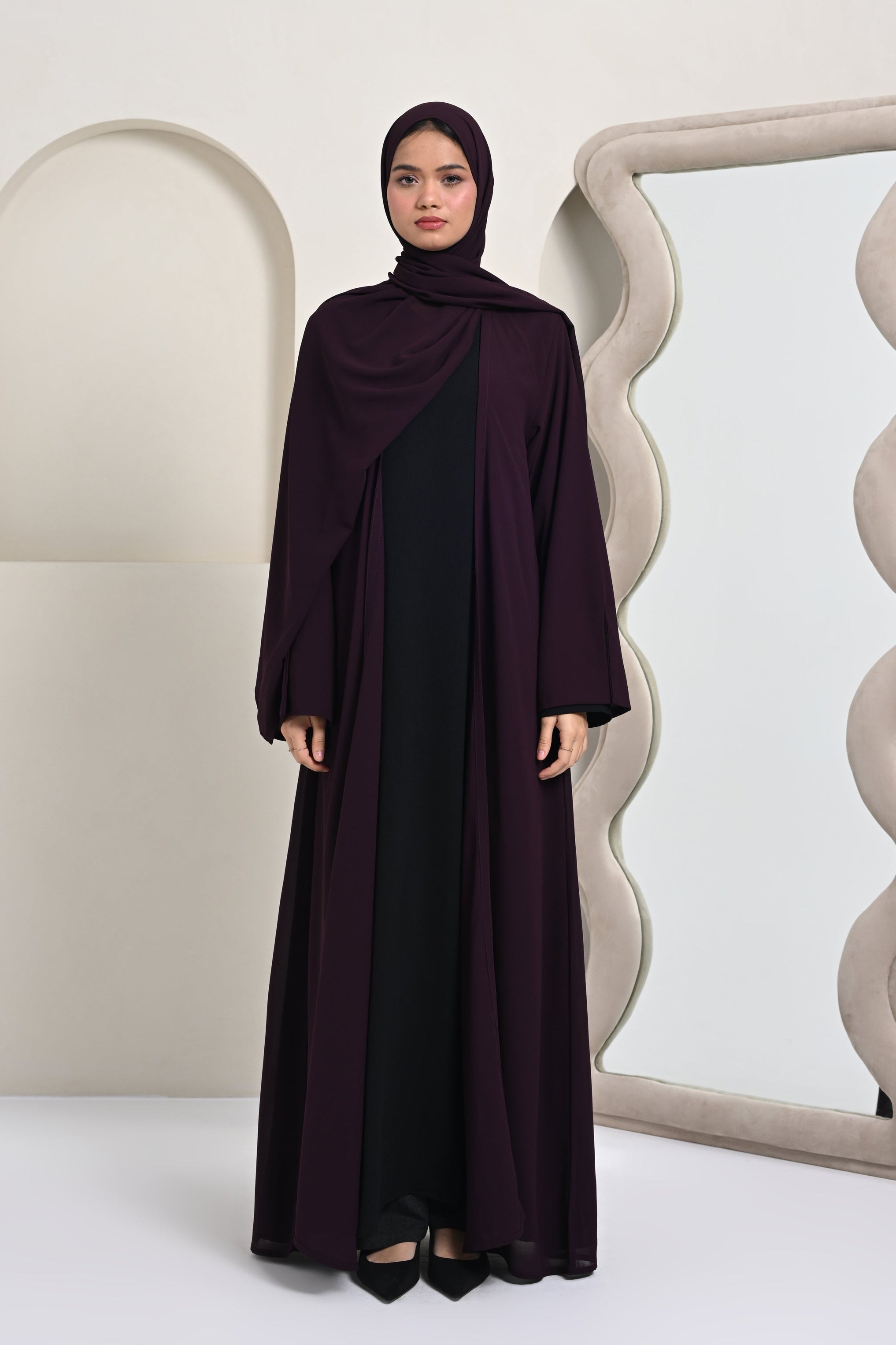 Essential Georgette Abaya (Attached Hijab) - Plum
