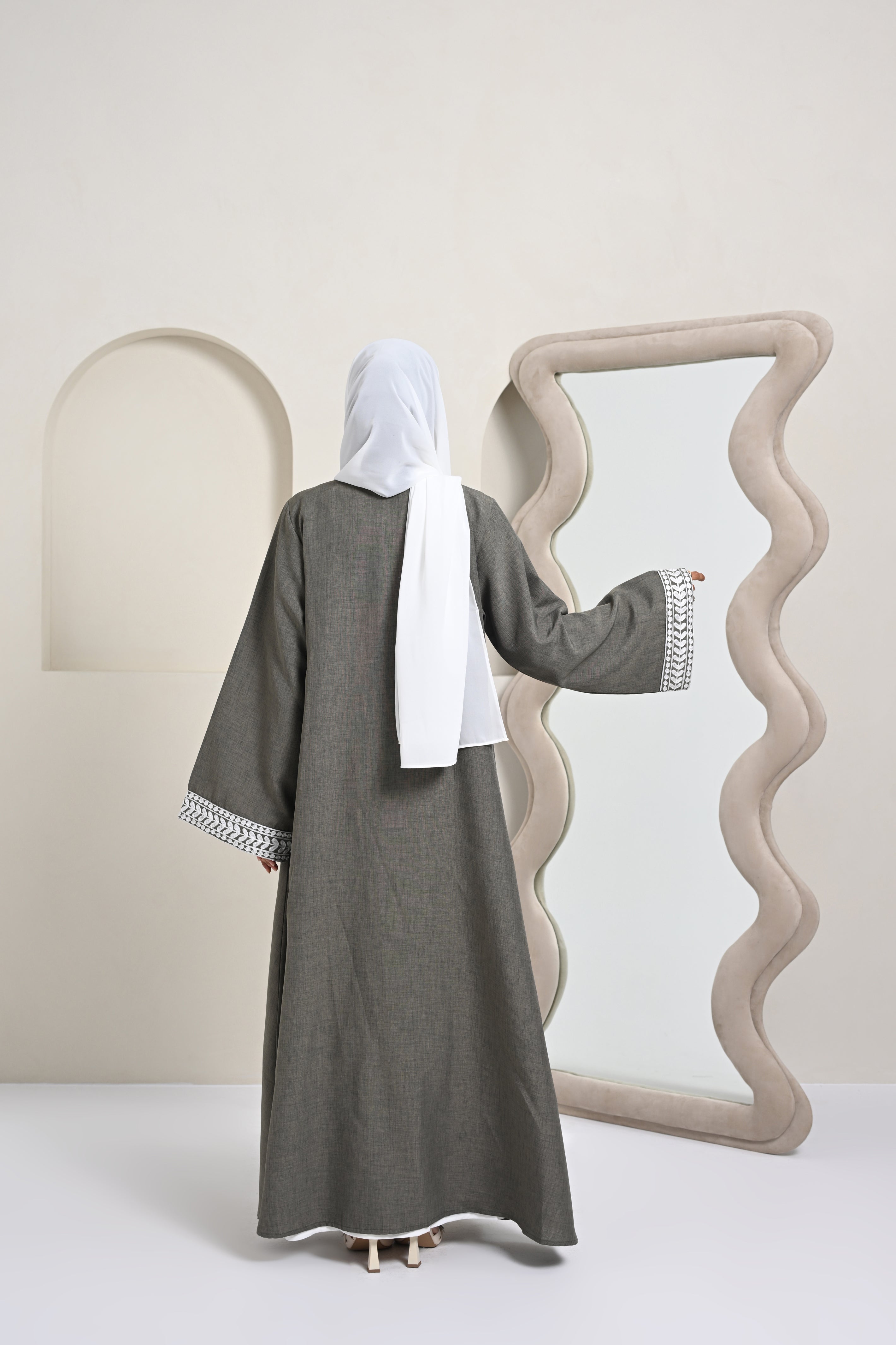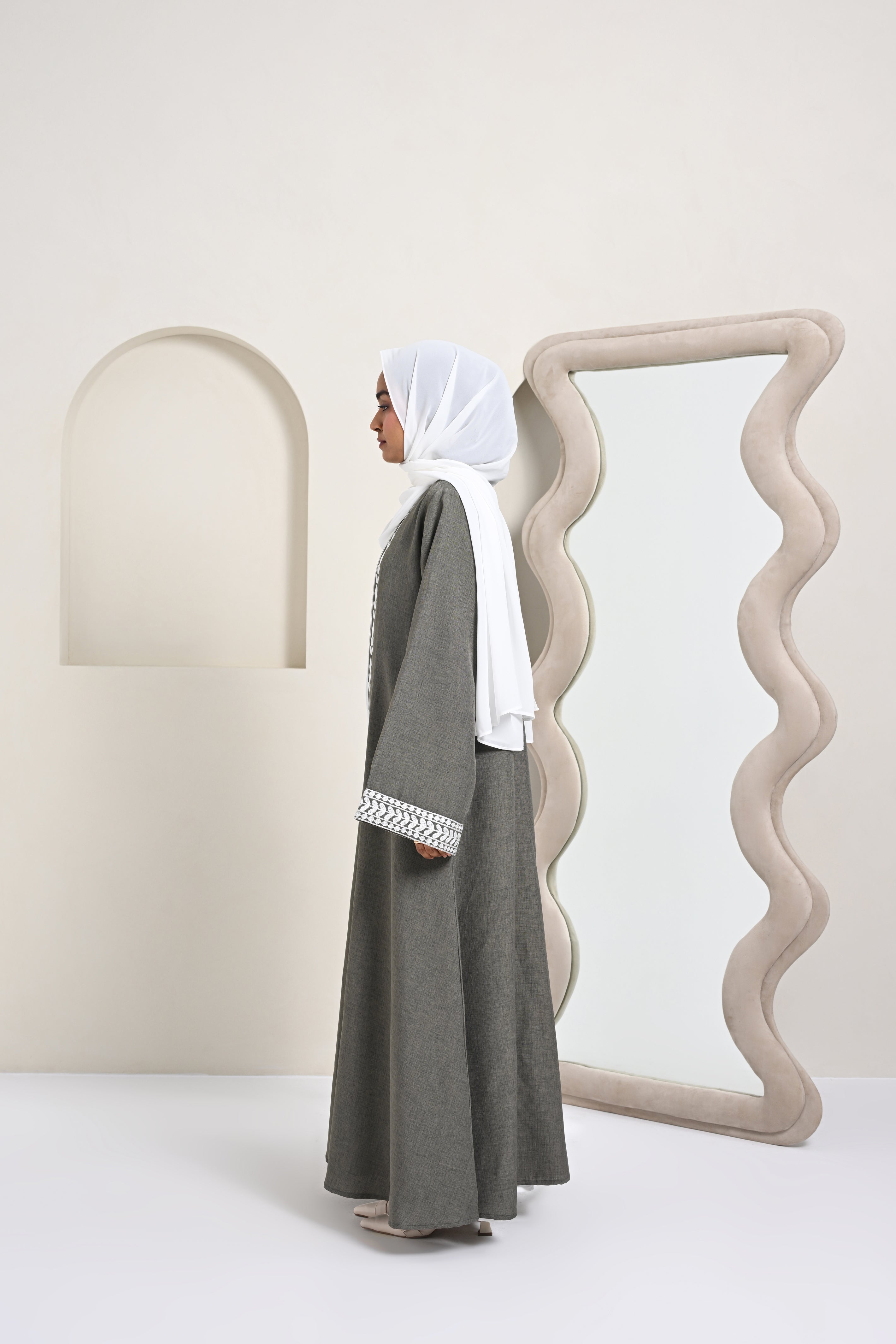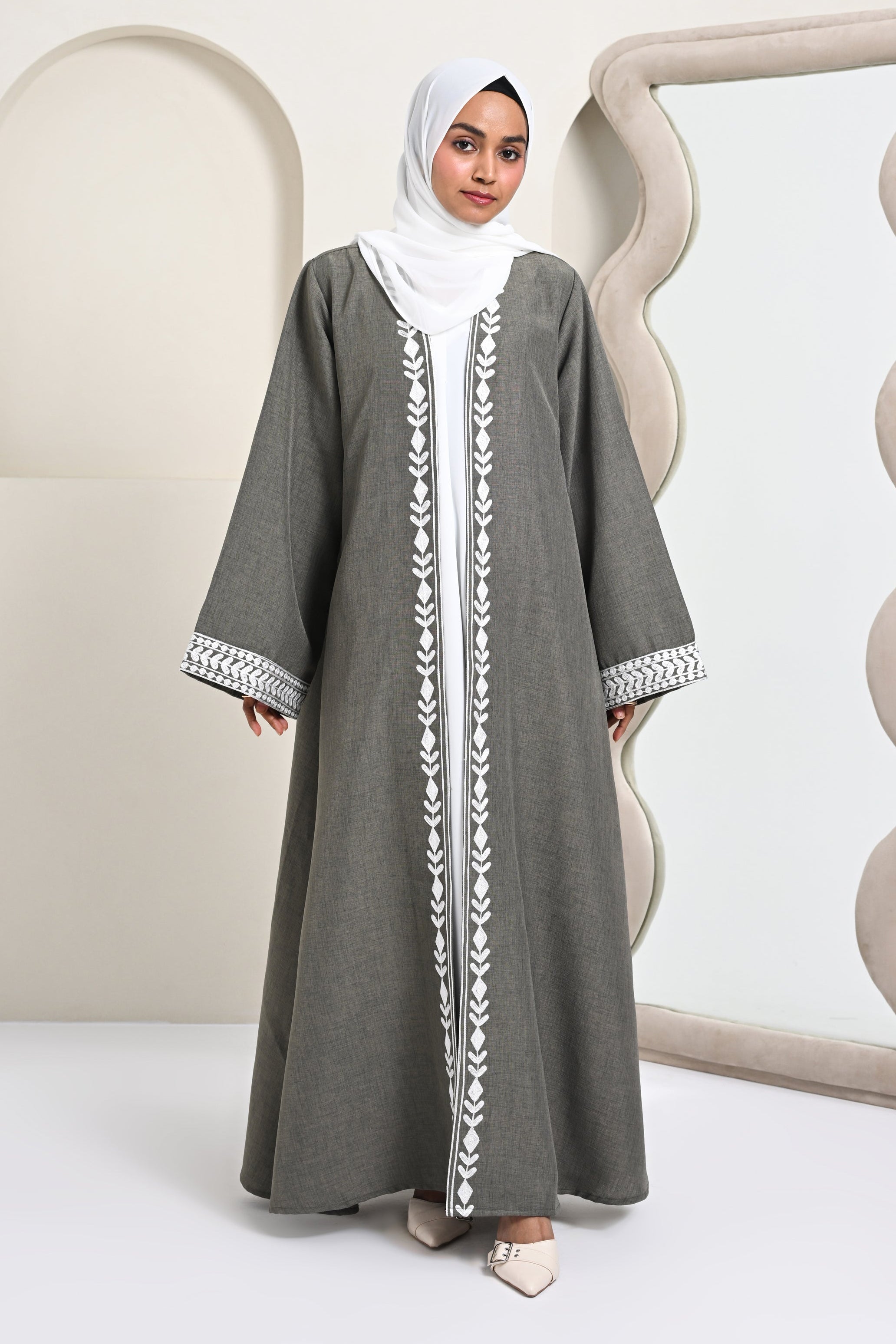 A refined abaya inspired by classic Kashmiri artistry and timeless elegance.