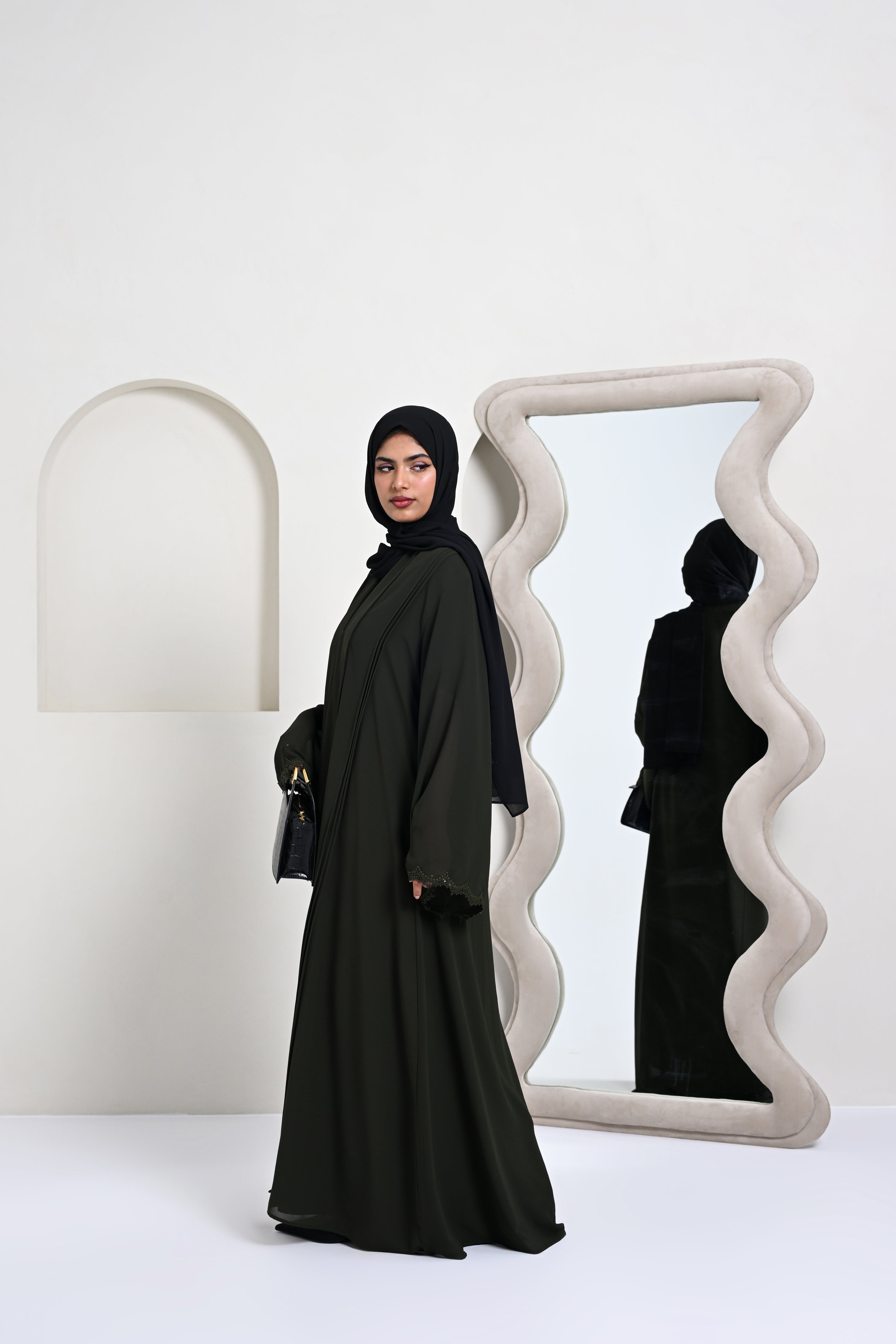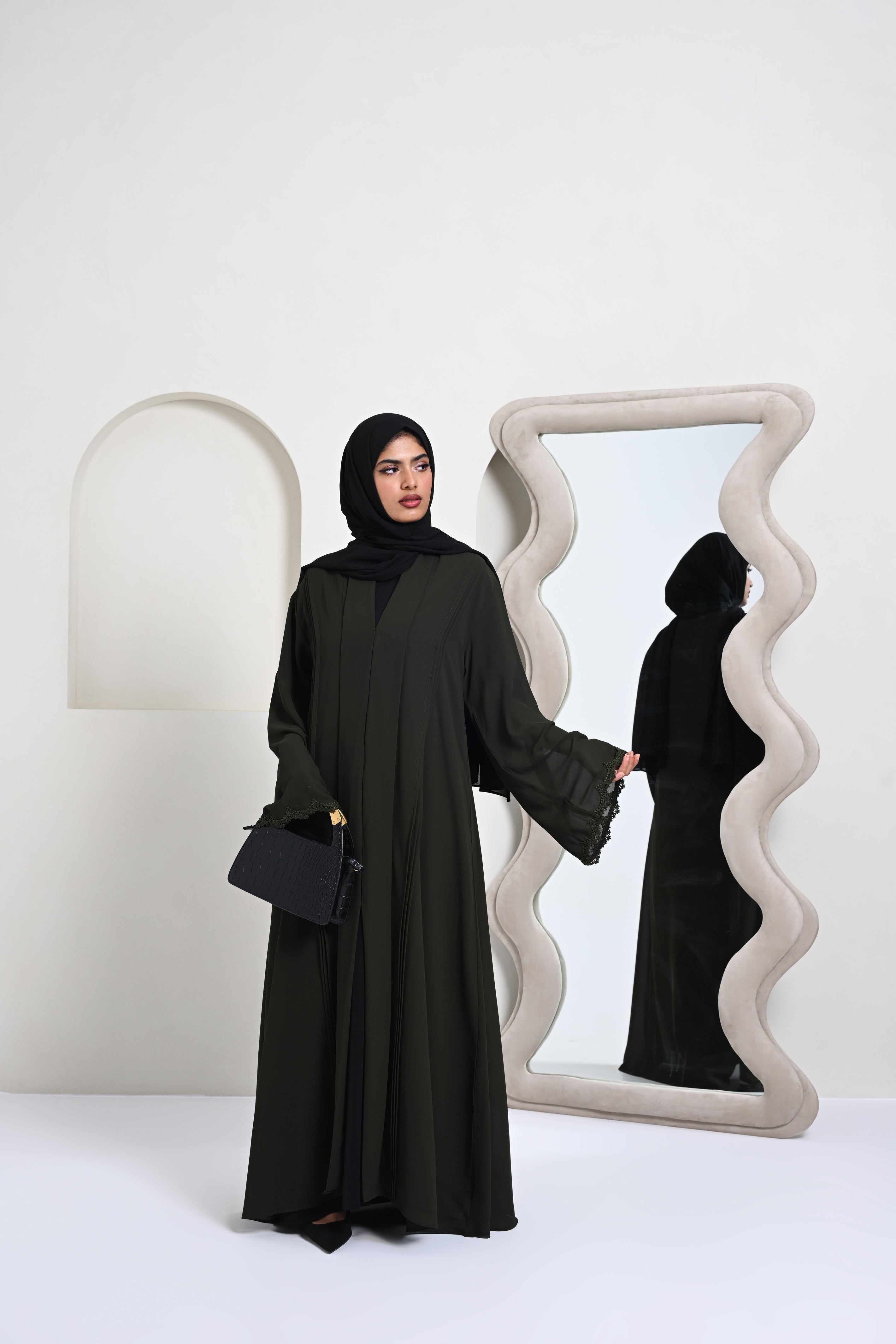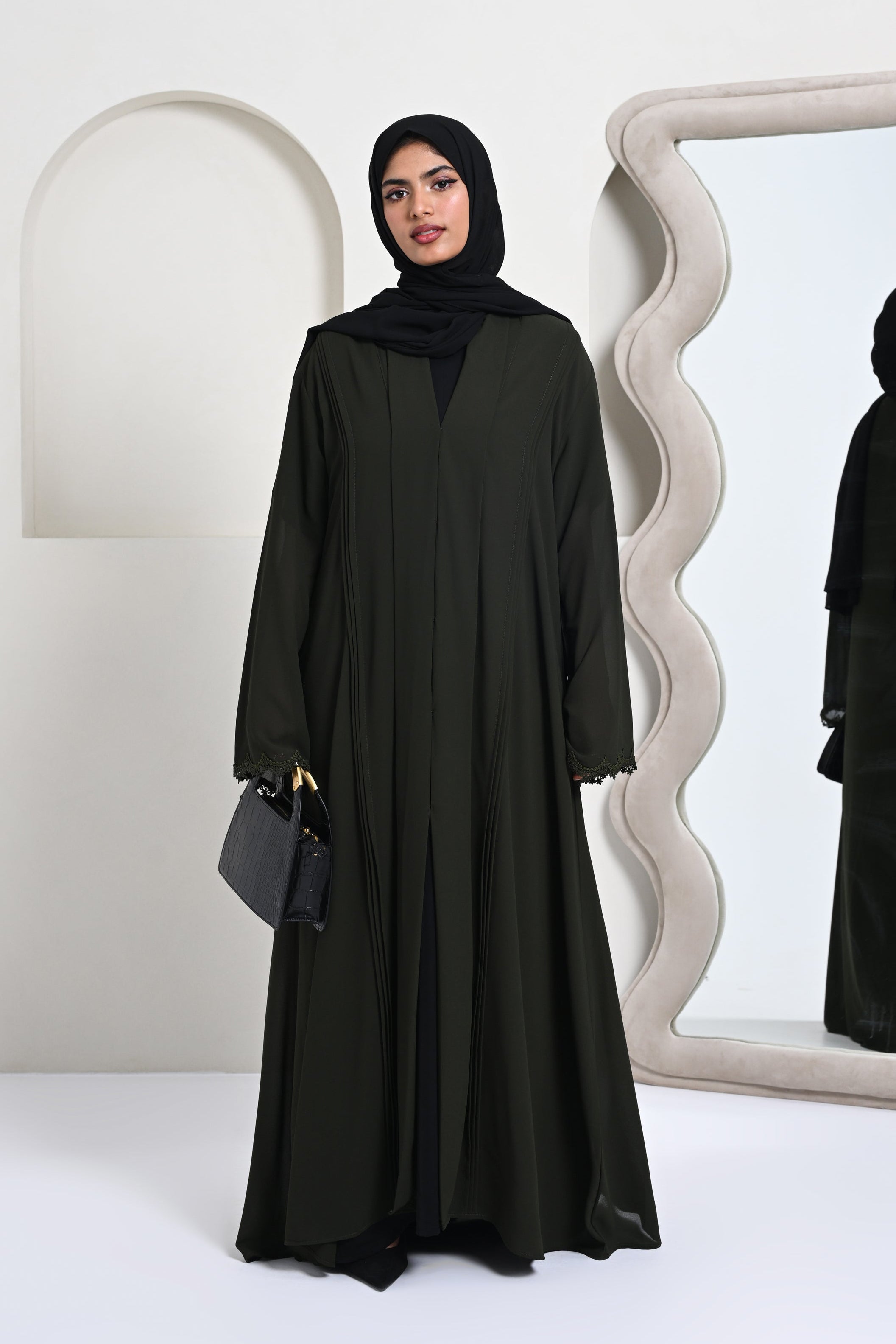 Bahiz Georgette Abaya - Dark Olive Green