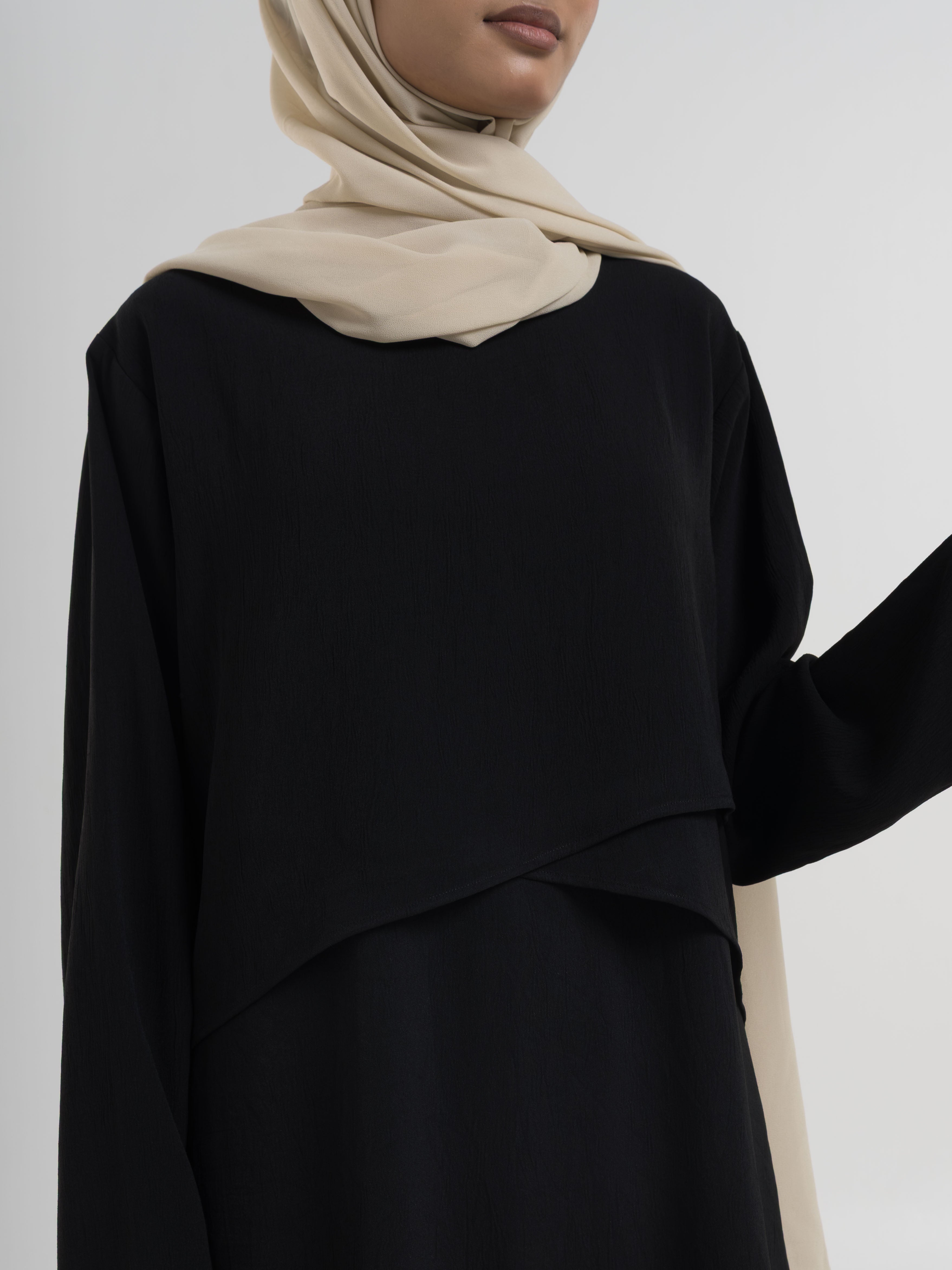 – Relaxed, modest fit designed for maternity and nursing ease