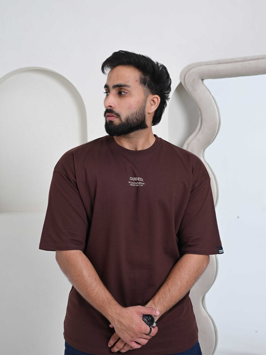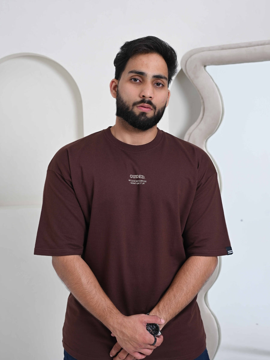 The quote “GUIDED — HE GAVE ME PURPOSES I WON’T GIVE IT UP” is printed on the front using HD screen print, while the back carries the bold message “DON’T SELL YOUR DEEN FOR DUNYA” in puff print, creating a powerful blend of meaning and minimalism.