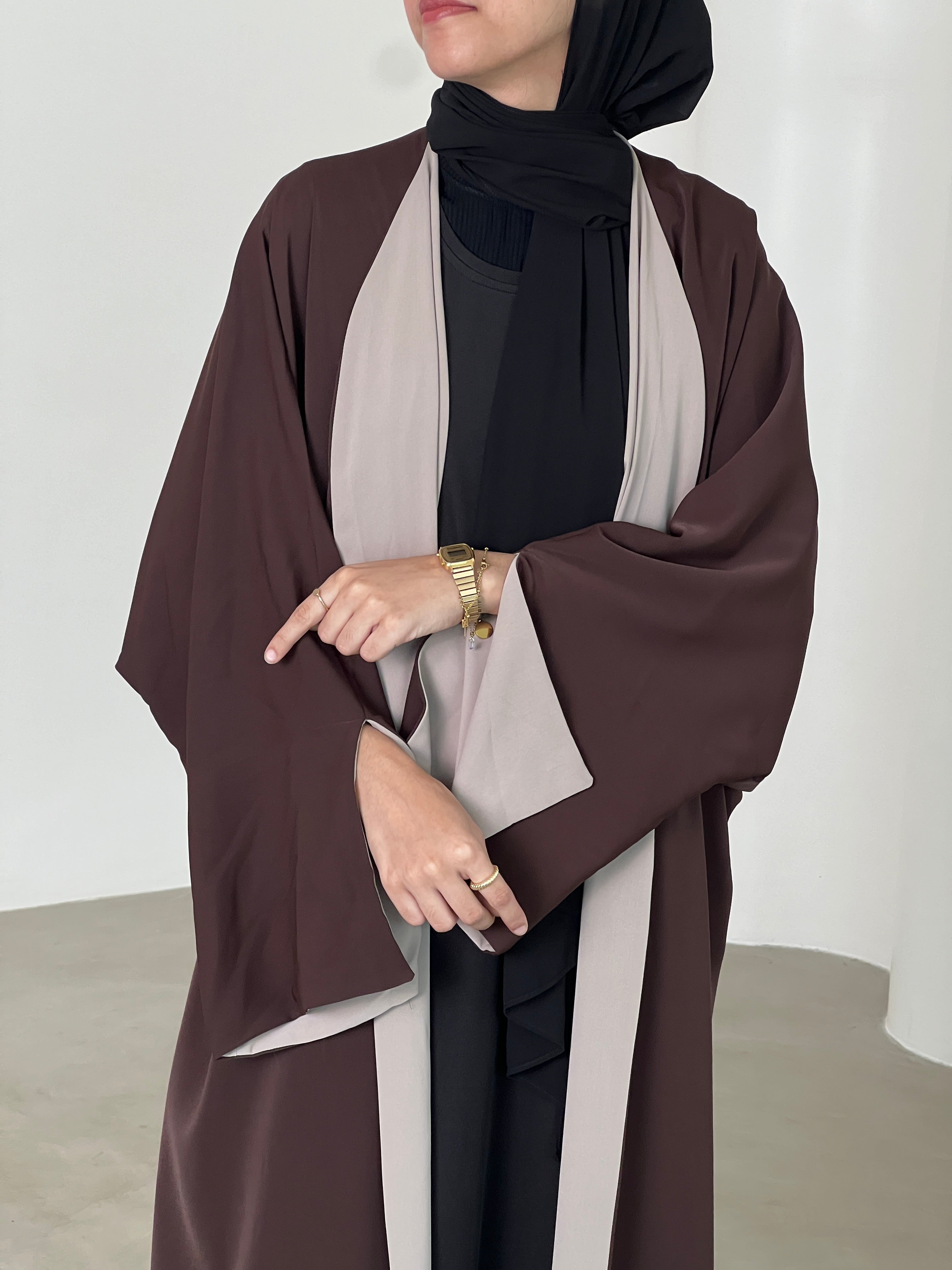 Raha Reversible Abaya - Beige & Brown