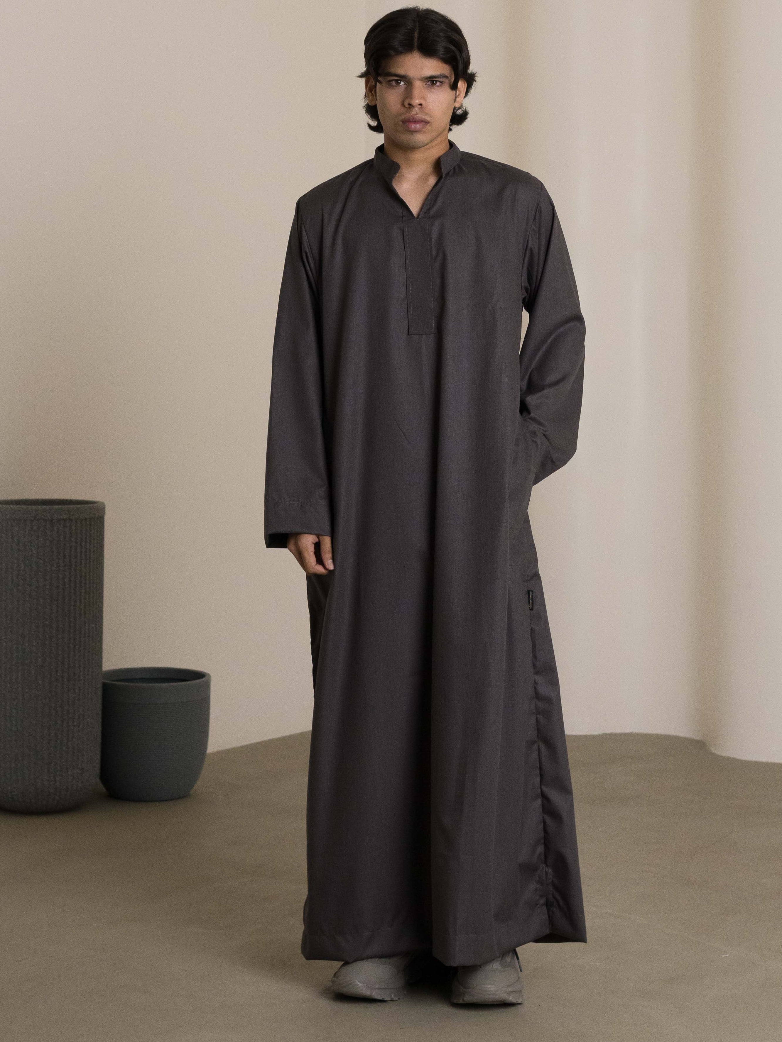 The V-Neck Classic Thobe also known as Jubba or Kandura offers a sleek, slim-fit design with practical features, making it perfect for daily wear. Crafted with comfort and style in mind, this thobe comes in three timeless colors, offering versatility for any occasion.