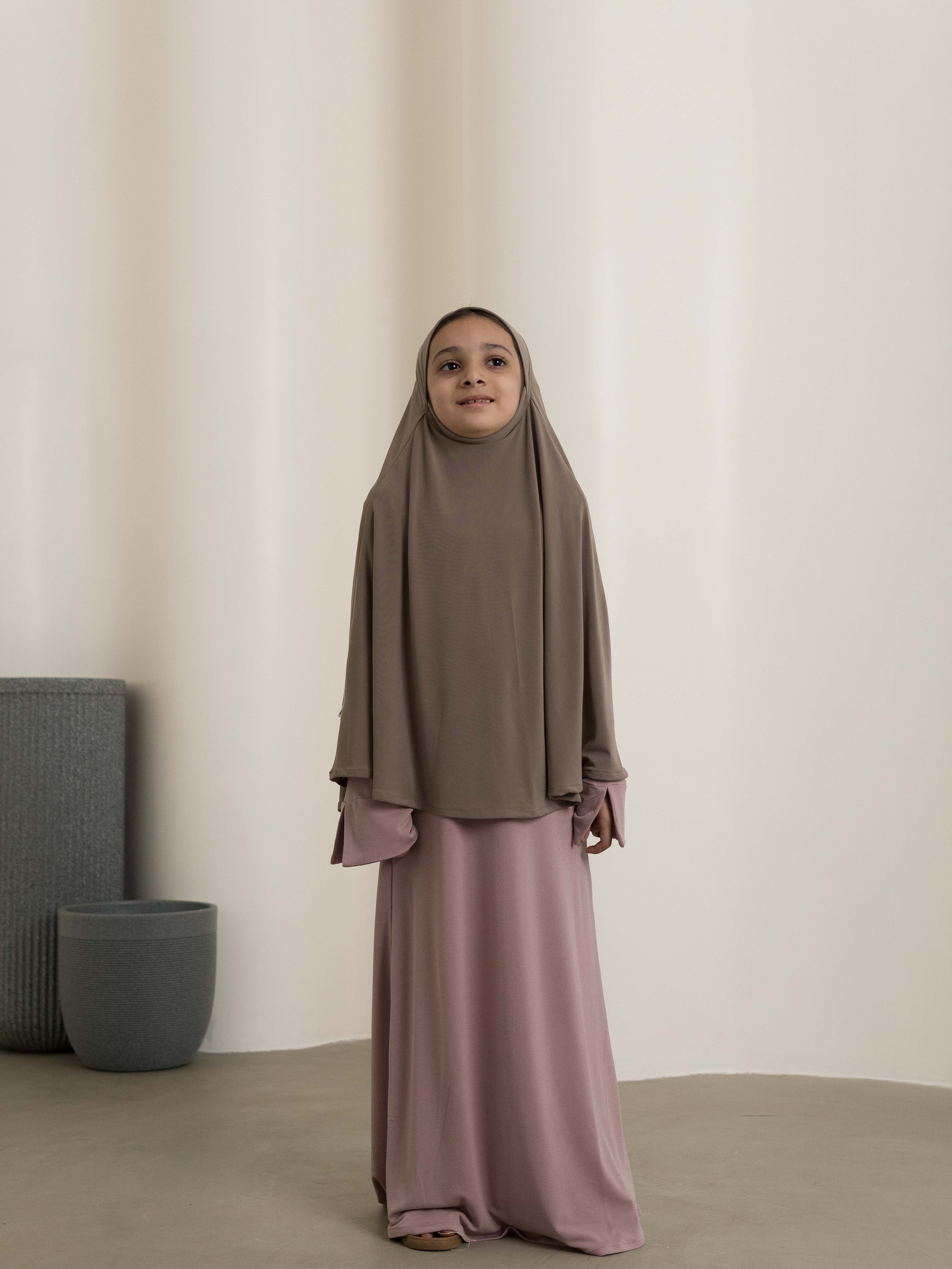 This Kids Abaya features a minimal yet charming design, offering both comfort and elegance. The Kid’s Scarf is sold separately for added versatility.