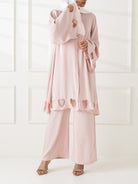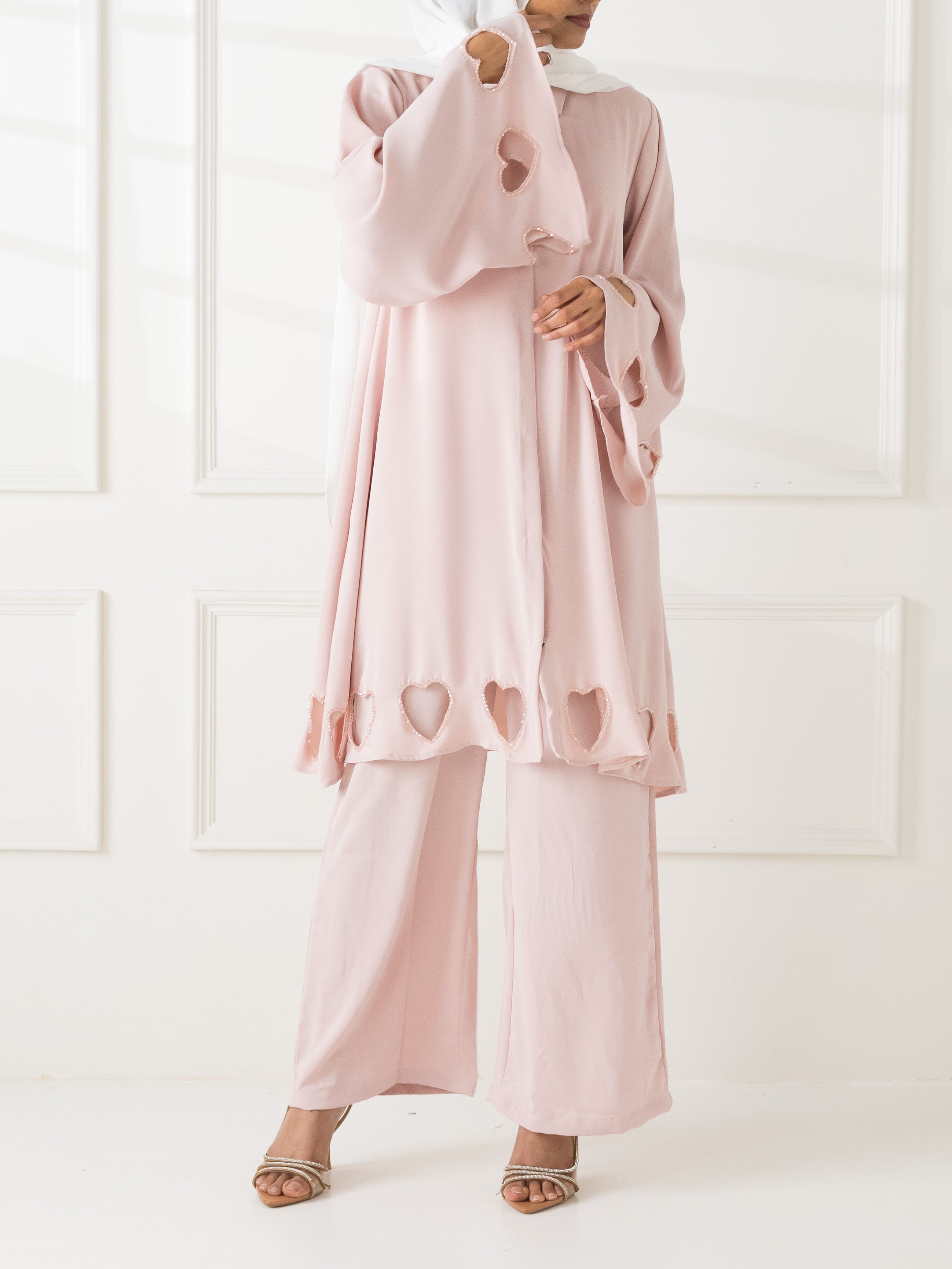 Naila Co-ord Set is a perfect blend of charm and elegance. This coordinated outfit features unique heart-shaped sleeves and a matching heart detail on the back, making it a truly standout piece.