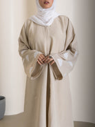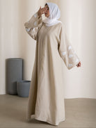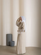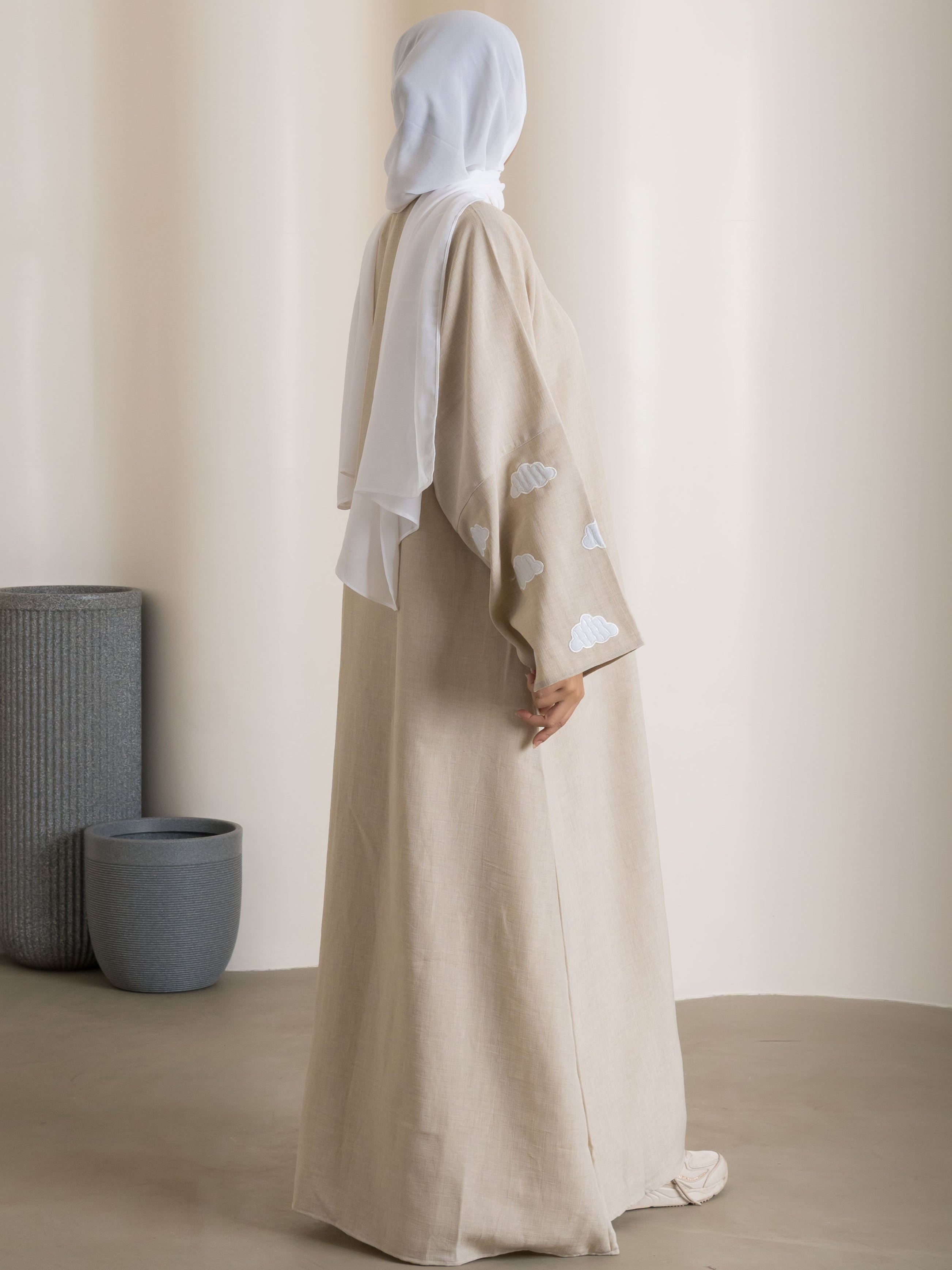 Inspired by the beauty of drifting clouds, the Sahab Abaya is a perfect blend of elegance and serenity. The delicate cloud-inspired design on the sleeves adds a touch of softness, while the classic button-down silhouette offers versatility and sophistication.