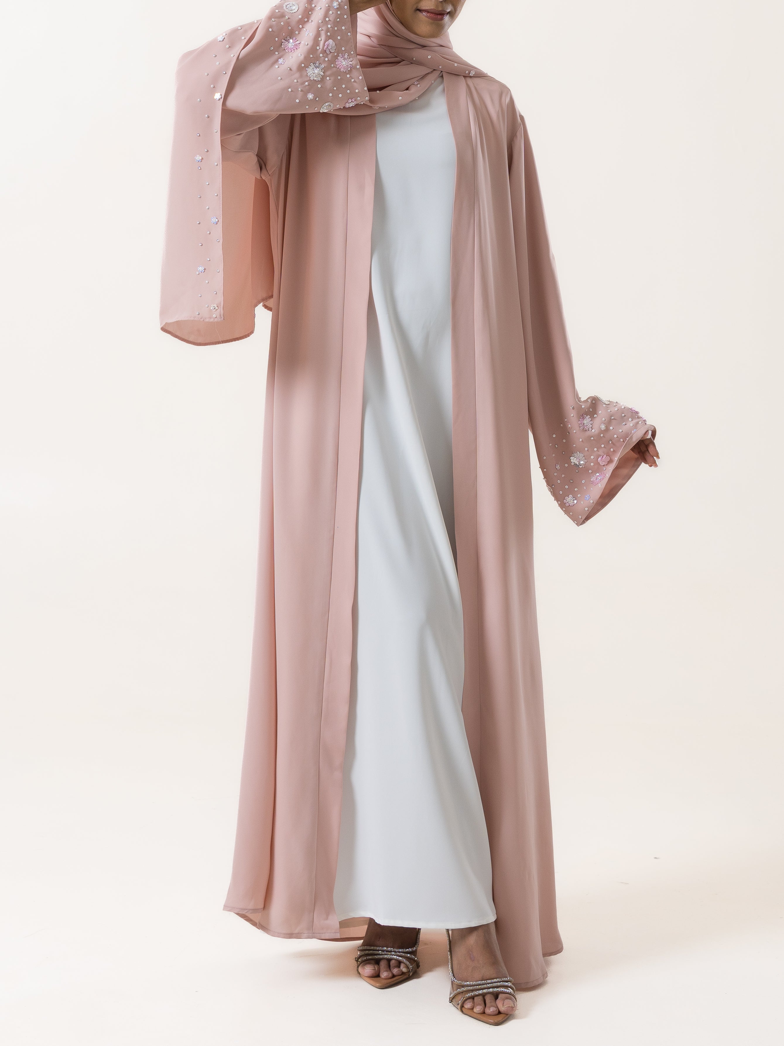 A delicate blend of elegance and charm — this Embroidered Abaya features intricate floral embroidery that adds a touch of femininity to your modest wardrobe. Perfect for festive gatherings, events, or evening outings.