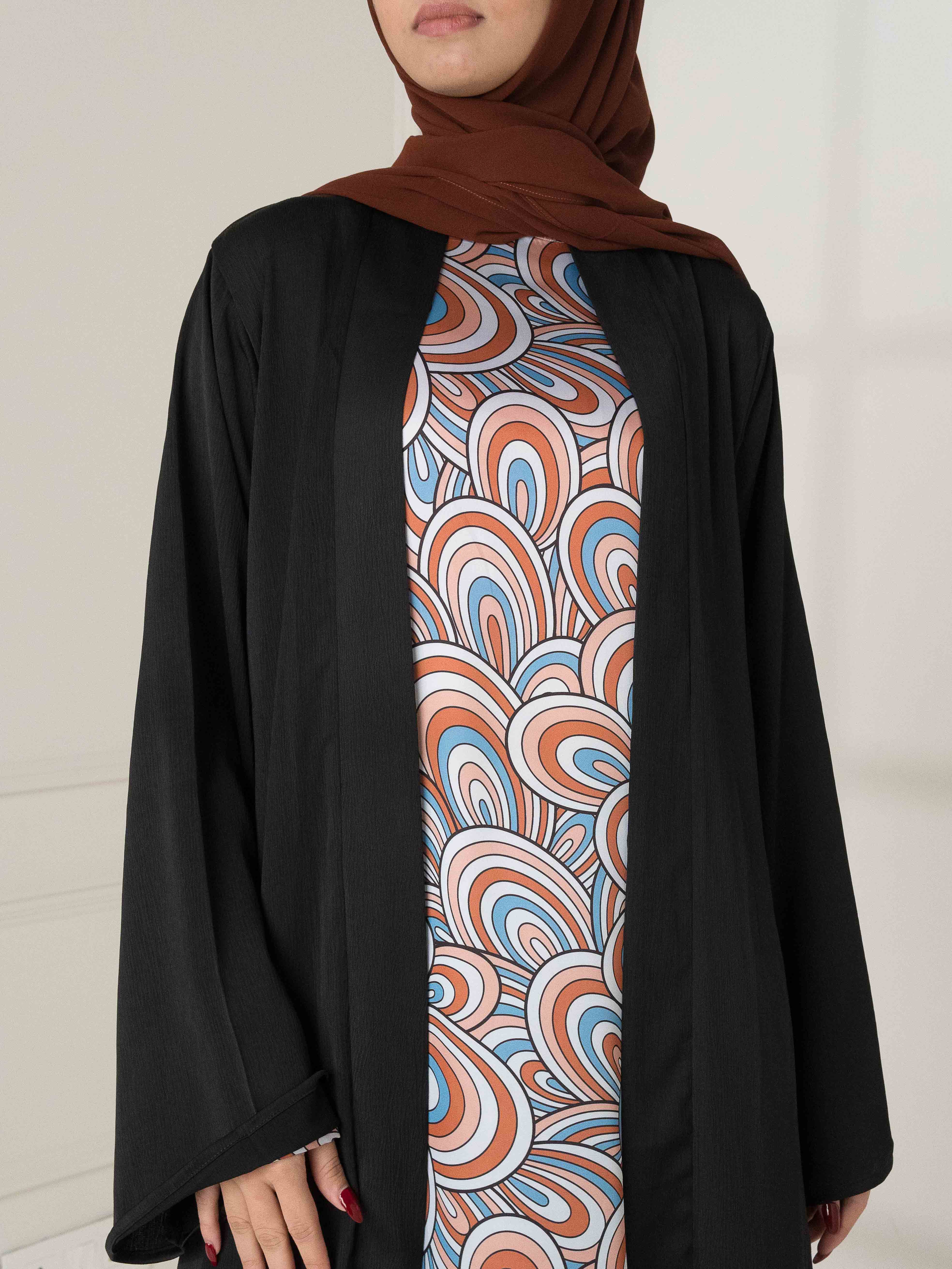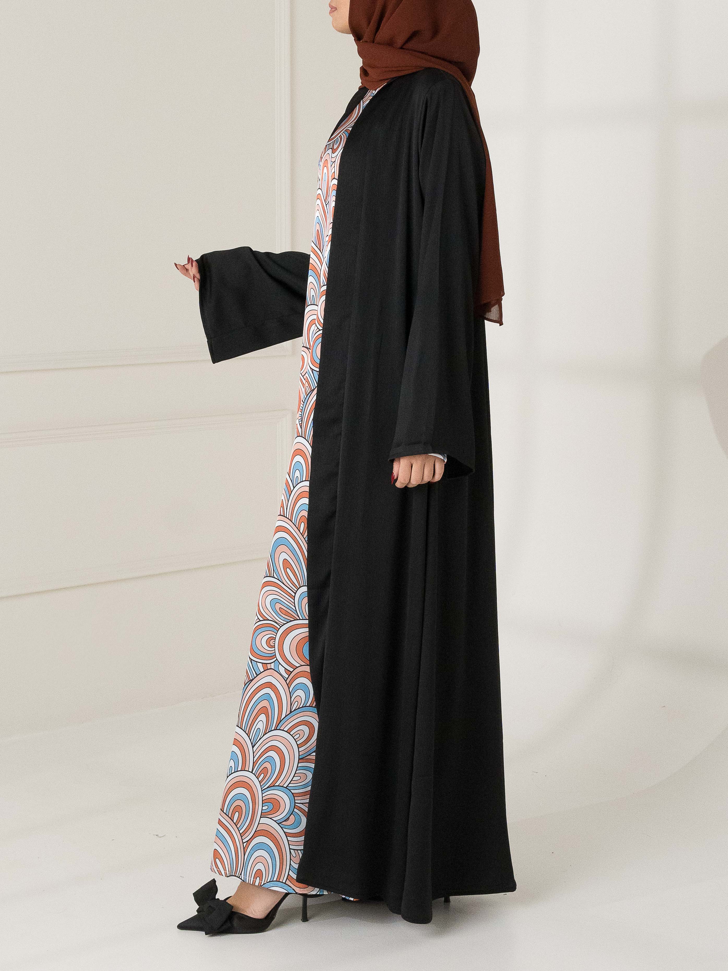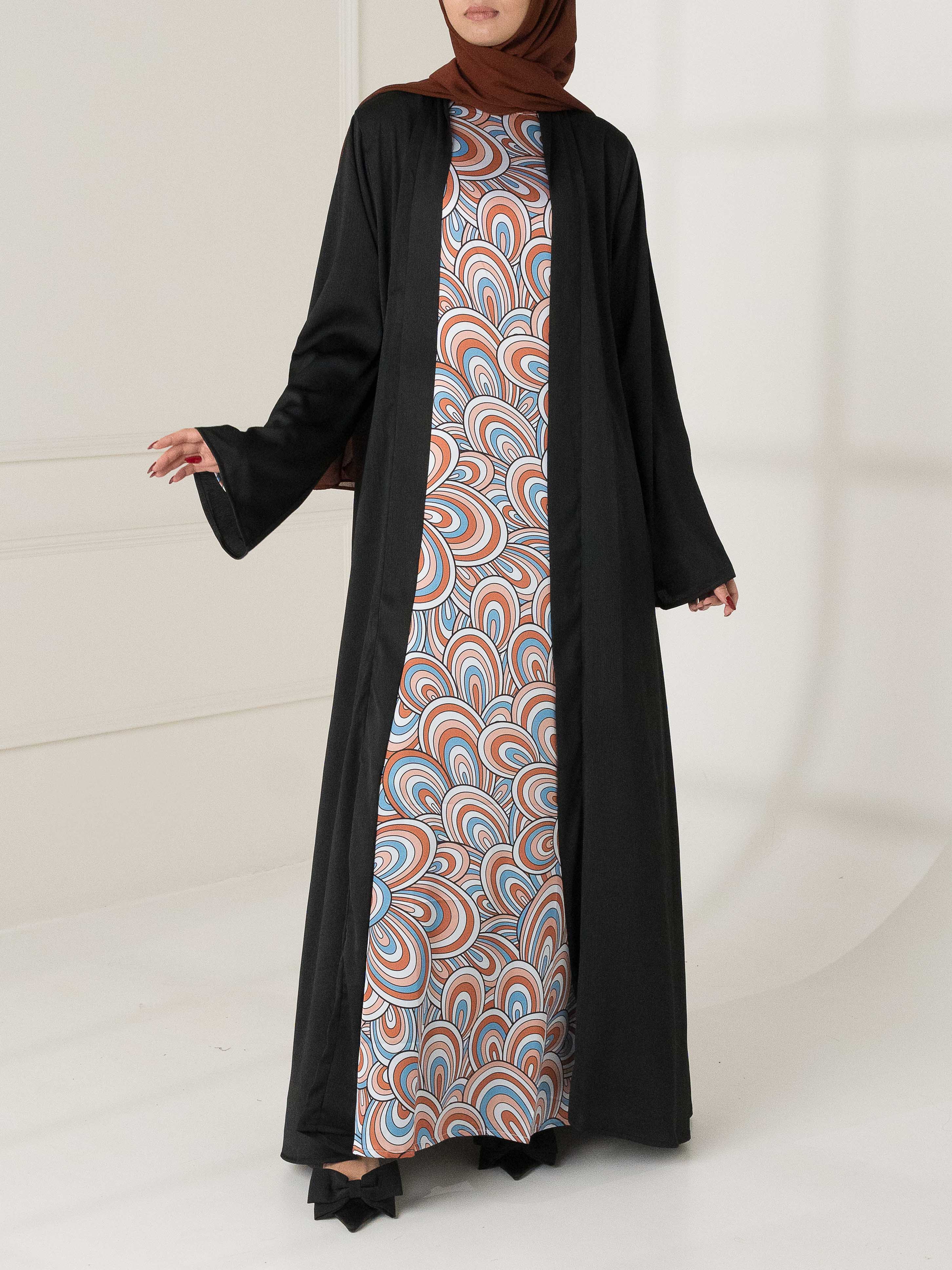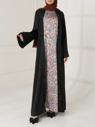 Elevate your modest wardrobe with our Haneen Two-Piece Inner Abaya, a two-piece set that exudes sophistication and practicality. This thoughtfully designed ensemble includes a beautifully printed inner dress paired with a flowy, open-front abaya, offering a complete, coordinated outfit for any occasion.