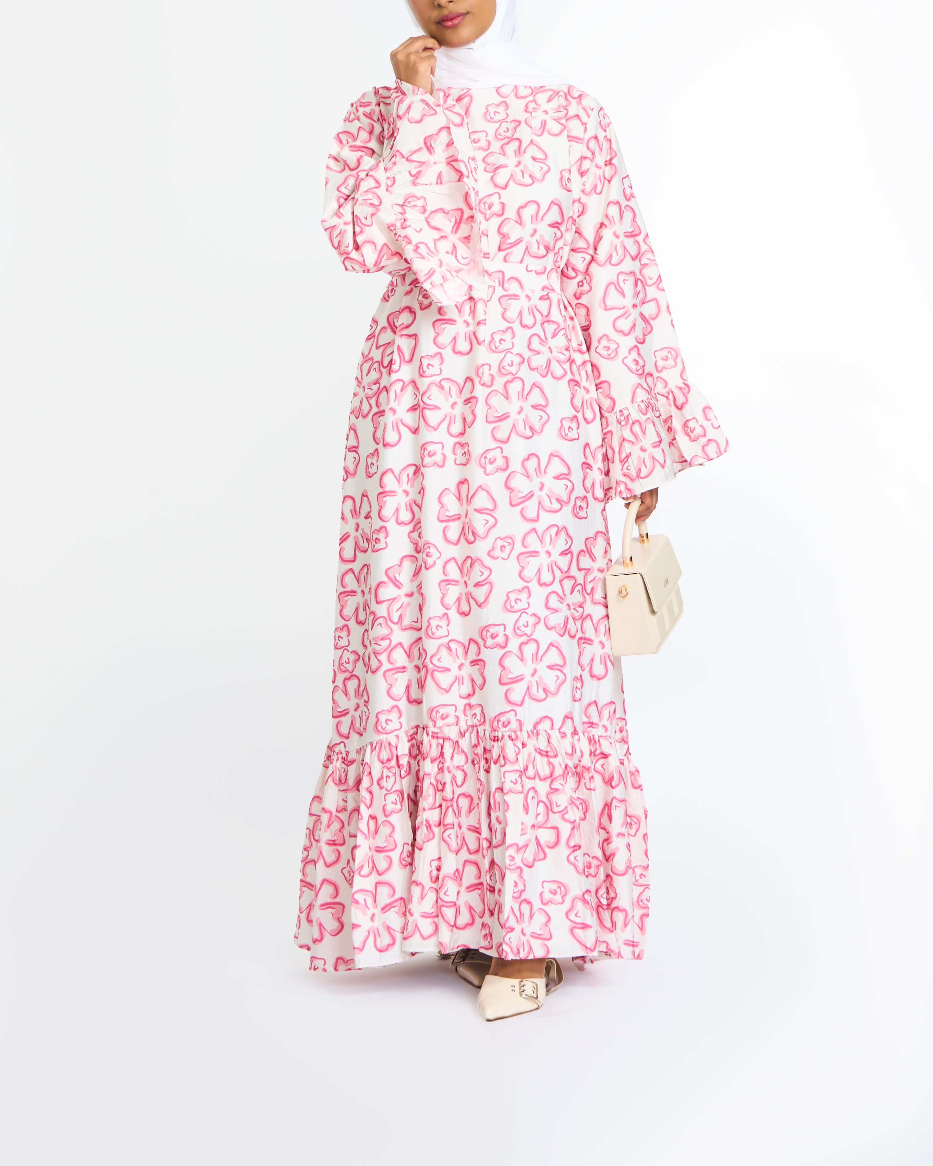 – Playful floral print.
