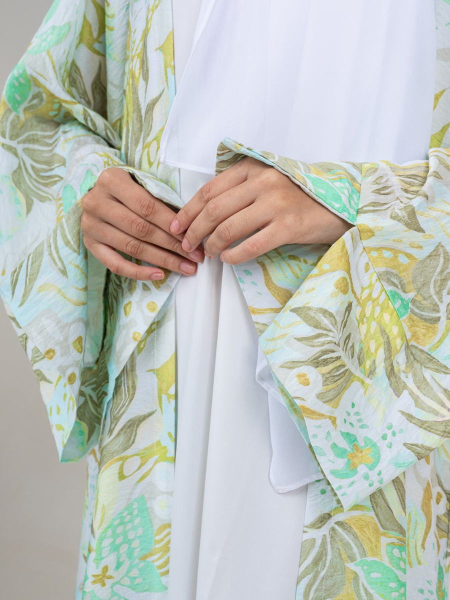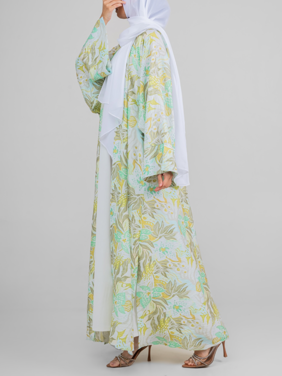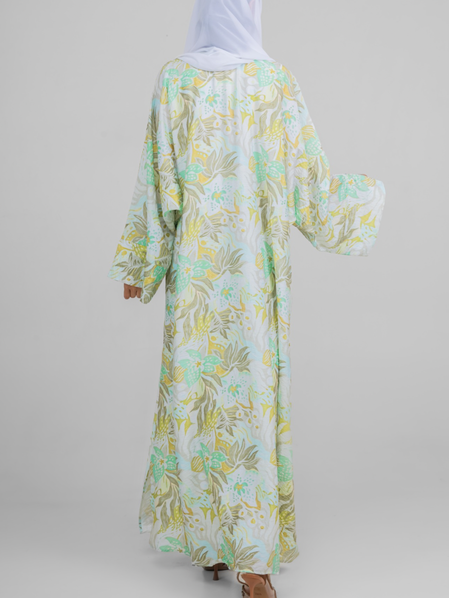 Introducing our Hala Abaya — where modesty meets playful elegance. Crafted from soft, lightweight nylon, this flowy shrug-style abaya is adorned with whimsical prints inspired by nature, adding a fresh and vibrant touch to your wardrobe. The open-front design makes it a versatile layering piece, perfect for pairing with your favorite inners and hijabs to create endless looks. Whether you’re dressing up for a special gathering or adding a statement layer to your everyday outfit, this abaya is your go-to for effortless style and comfort.