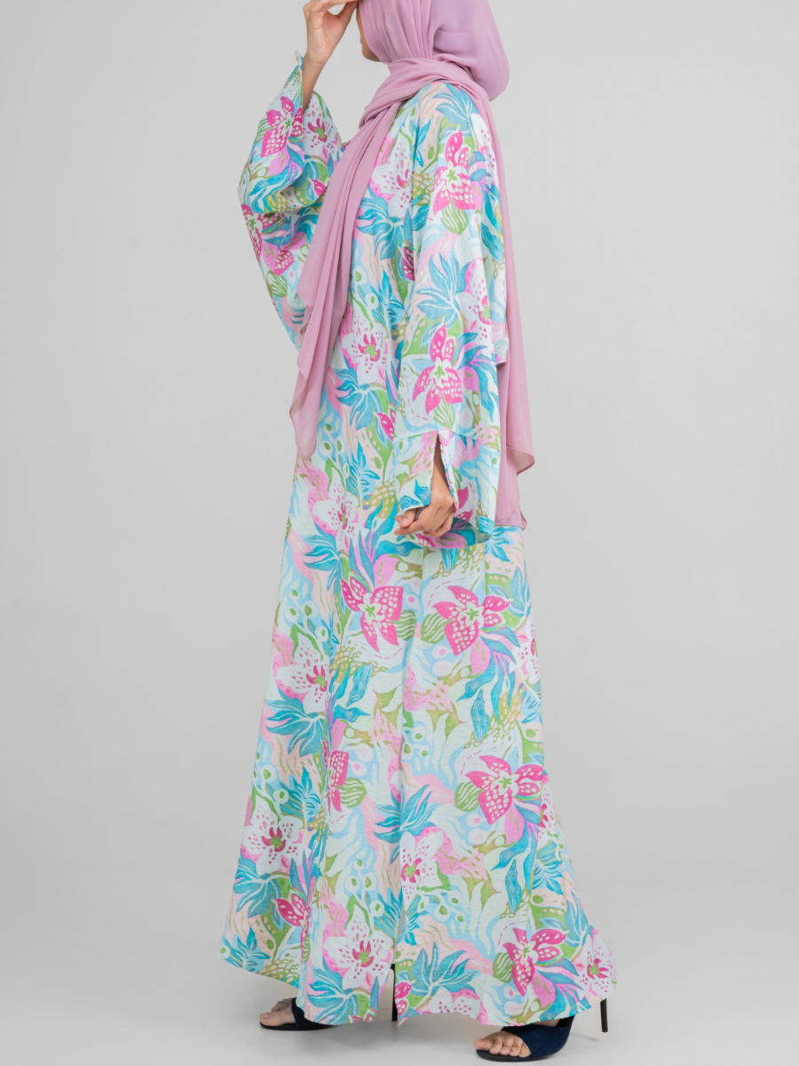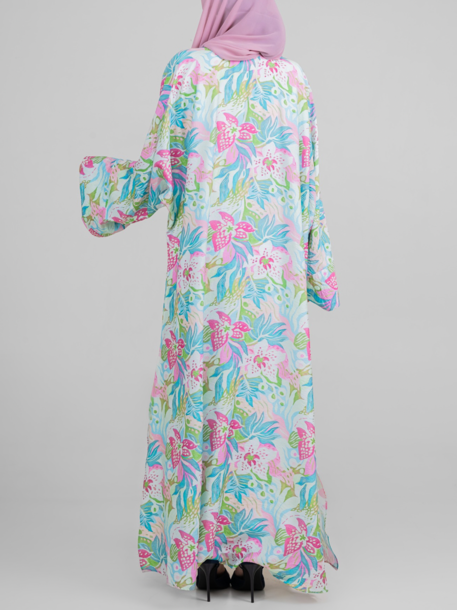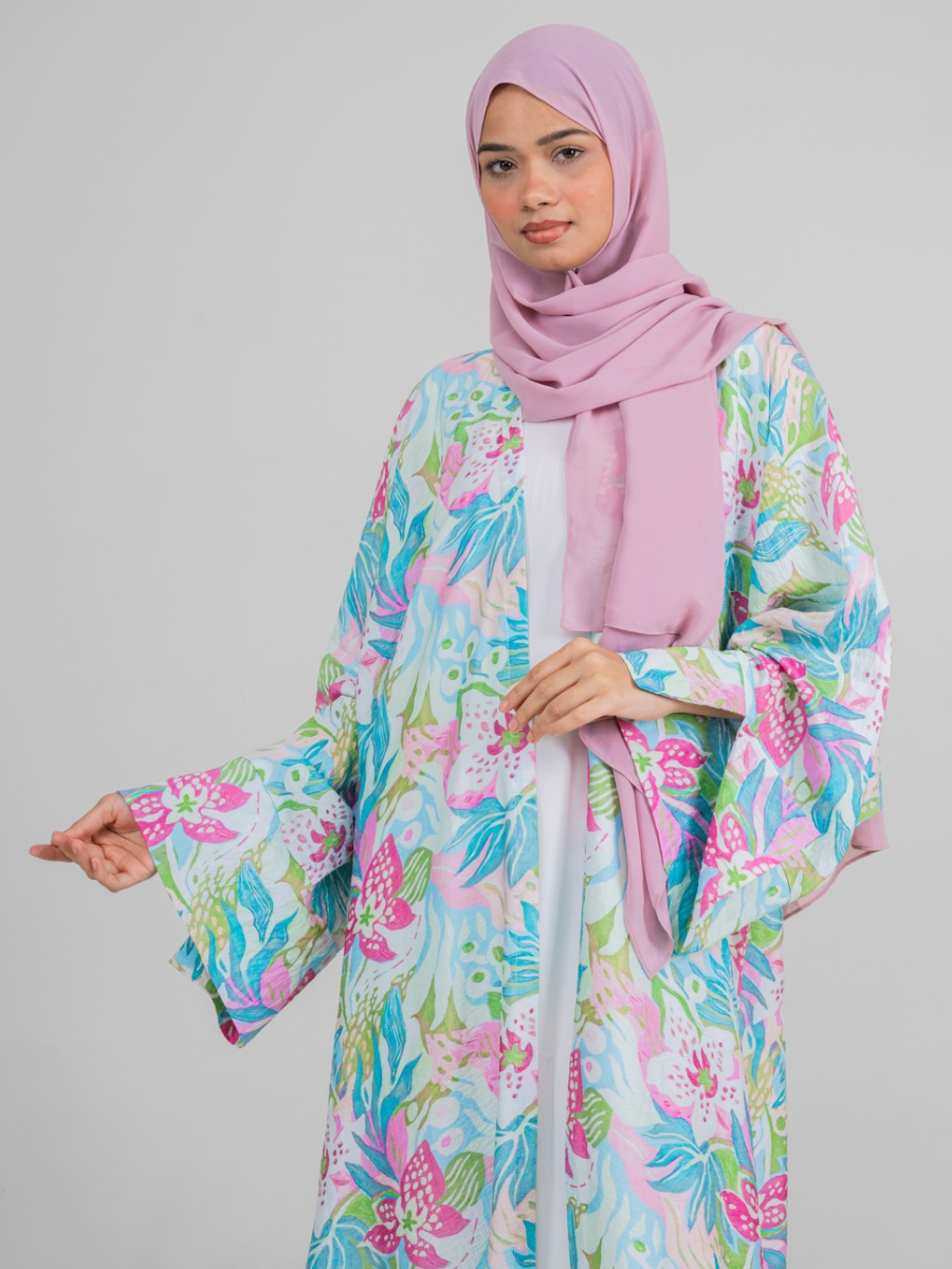 Introducing our Amal Abaya — where modesty meets playful elegance. Crafted from soft, lightweight nylon, this flowy shrug-style abaya is adorned with whimsical prints inspired by nature, adding a fresh and vibrant touch to your wardrobe. The open-front design makes it a versatile layering piece, perfect for pairing with your favorite inners and hijabs to create endless looks. Whether you’re dressing up for a special gathering or adding a statement layer to your everyday outfit, this abaya is your go-to for effortless style and comfort.