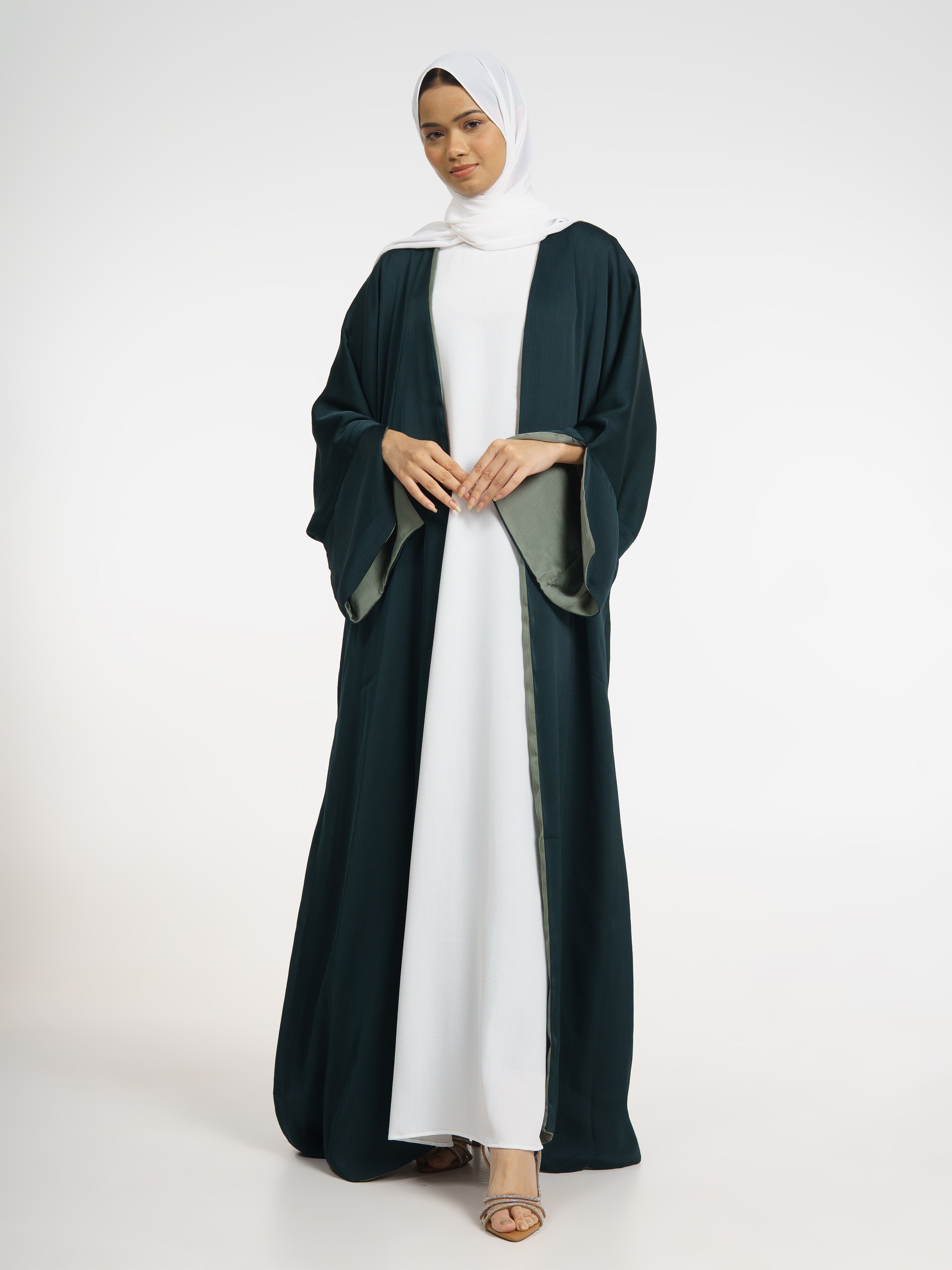 Forest Satin Reversible Abaya (Dark Green + Light Green)