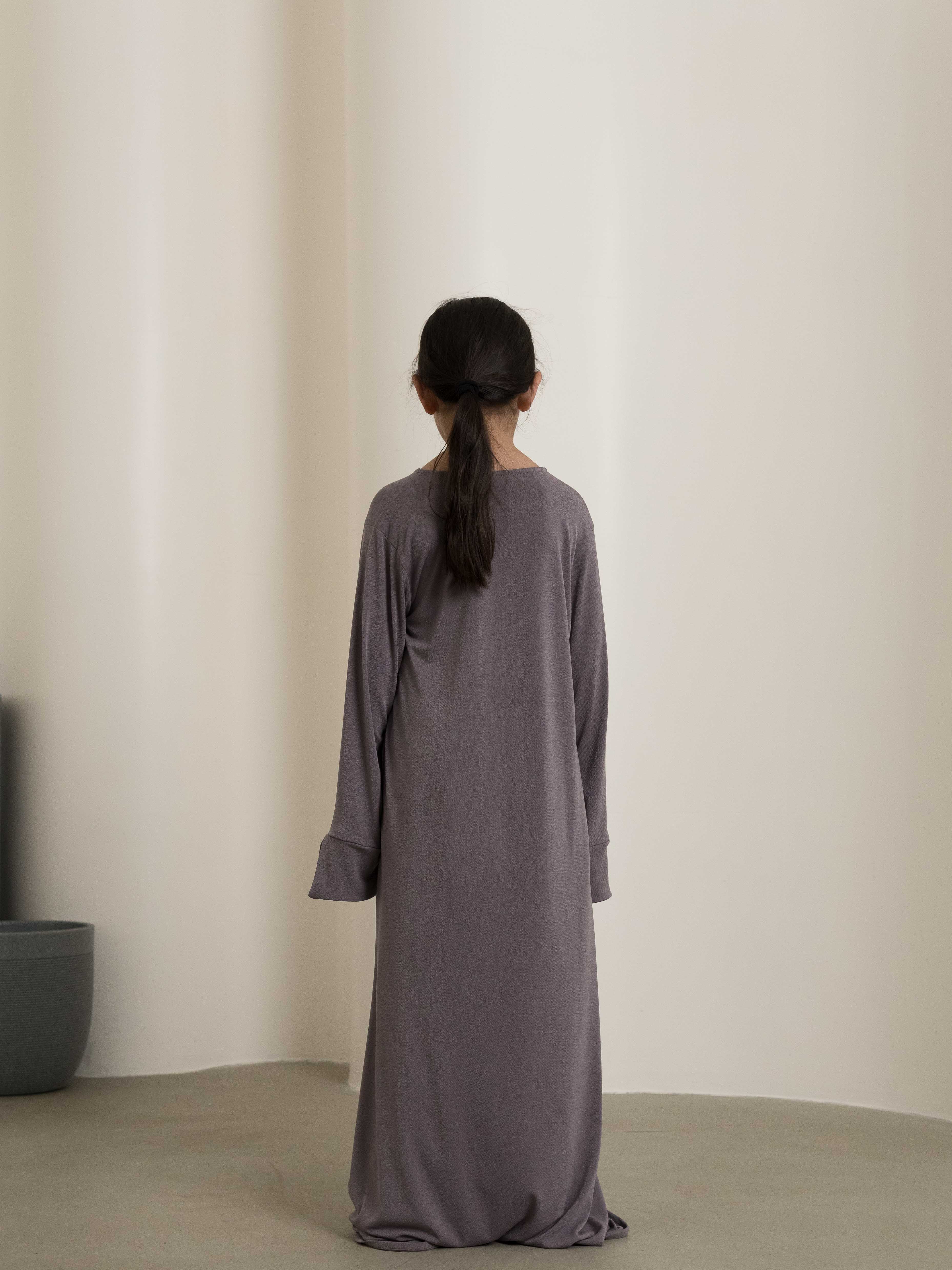 This Kids Abaya features a minimal yet charming design, offering both comfort and elegance. The Kid’s Scarf is sold separately for added versatility.
