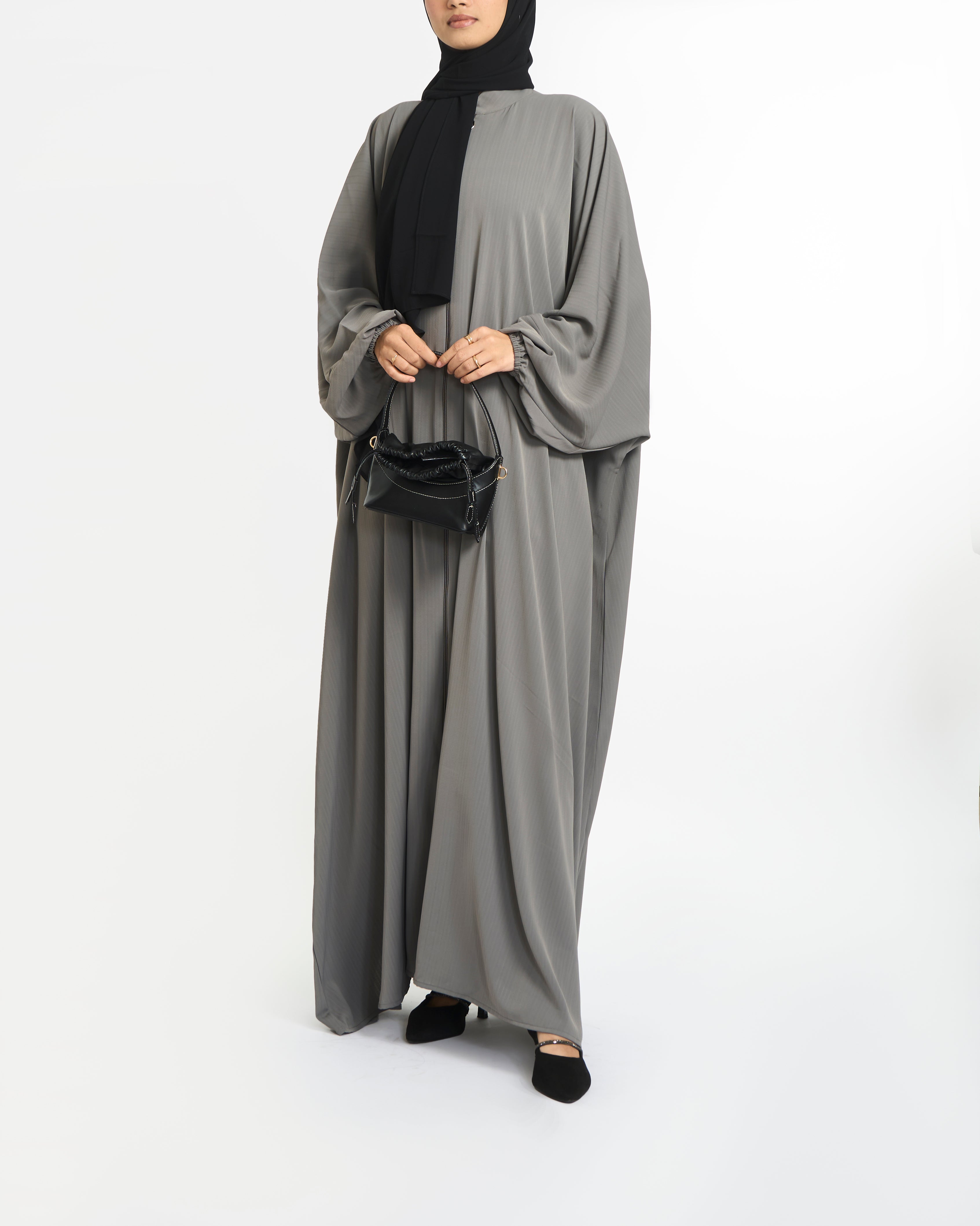 Lina zipper abaya - Grey