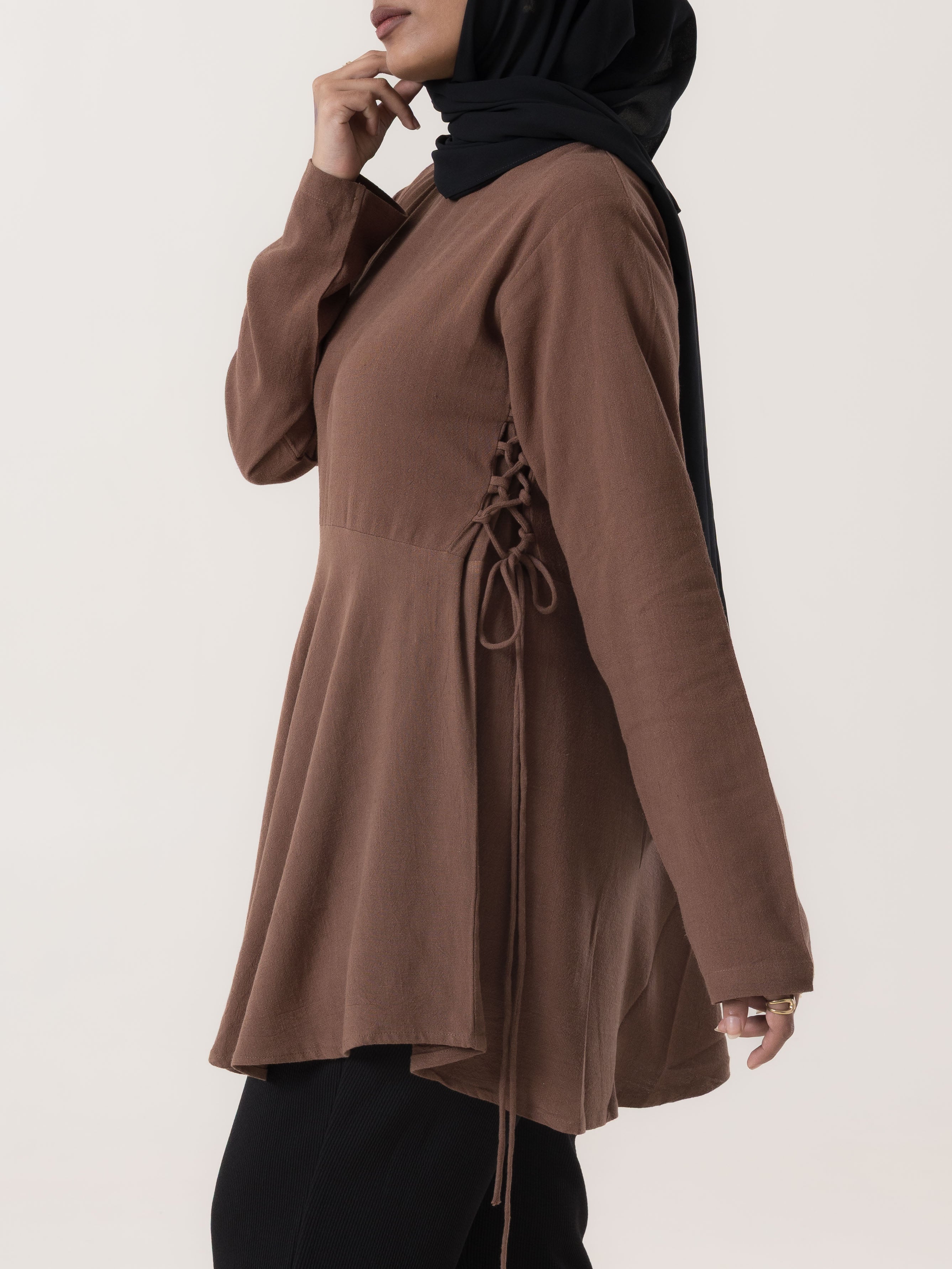 The Miran Side Tie-Up Top is a graceful blend of femininity and comfort, designed in breathable linen with a soft tulip silhouette. Featuring delicate side tie-ups on both ends, it adds an effortless, flowy charm that’s perfect for everyday elegance or elevated outings.