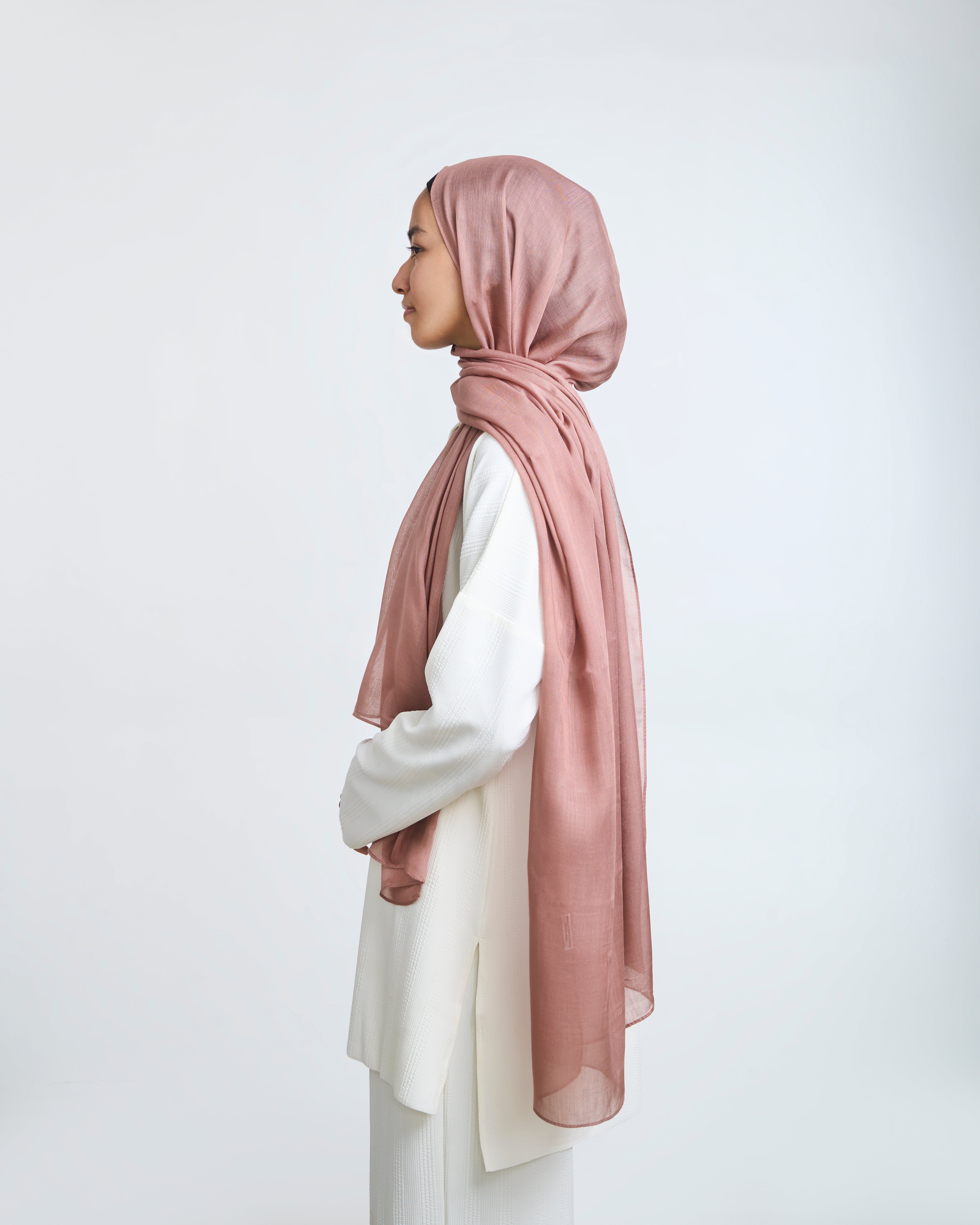 The Modal Hijab - Rosemary Modal Hijab is a perfect blend of comfort and elegance, offering a soft and breathable feel while maintaining a chic and polished look. Modal Hijab is crafted from high-quality modal fabric, this hijab is incredibly lightweight and smooth, providing long-lasting comfort throughout the day. Modal is known for its silky texture and excellent drape, making it an ideal choice for everyday wear or special occasions.