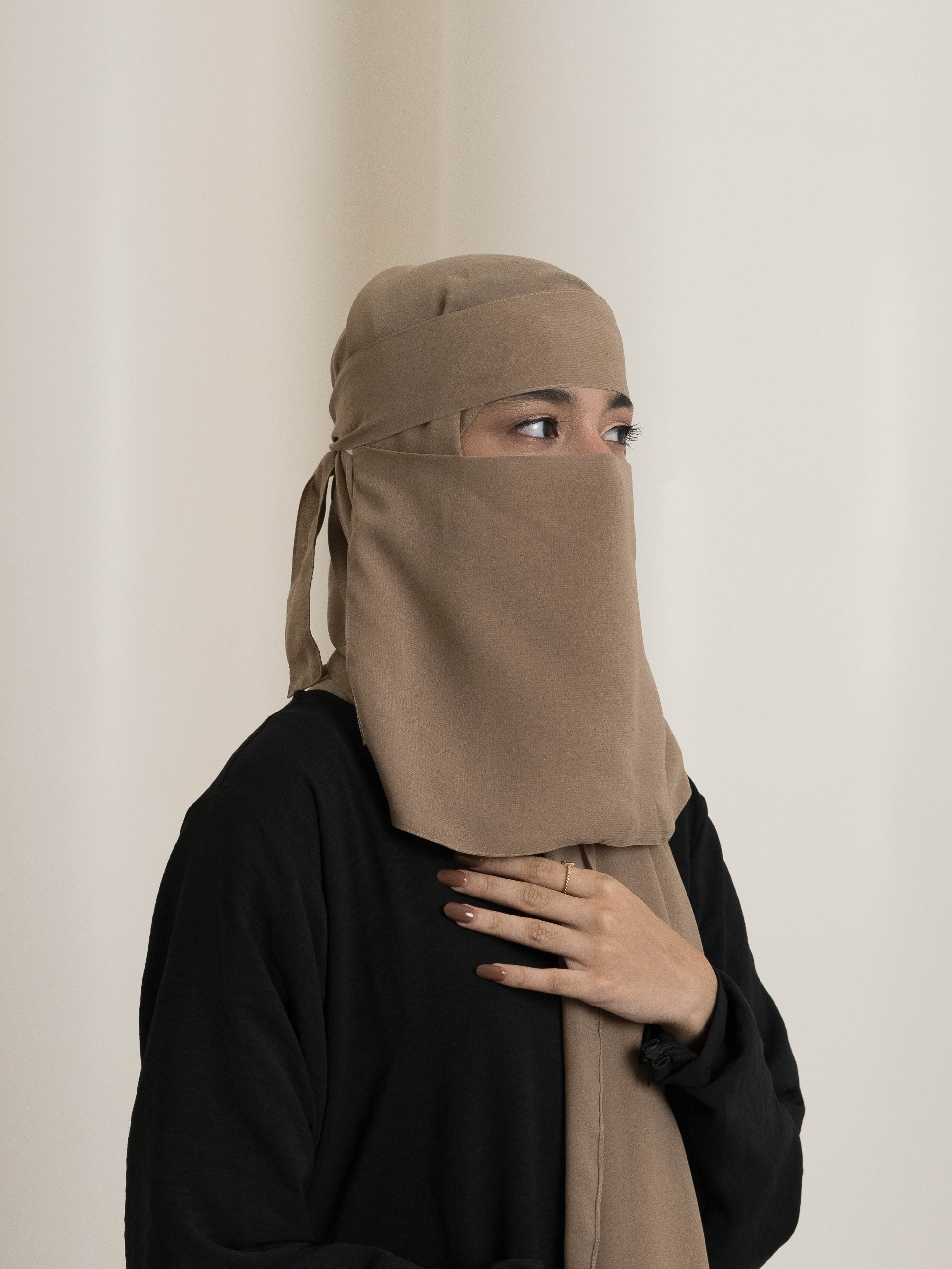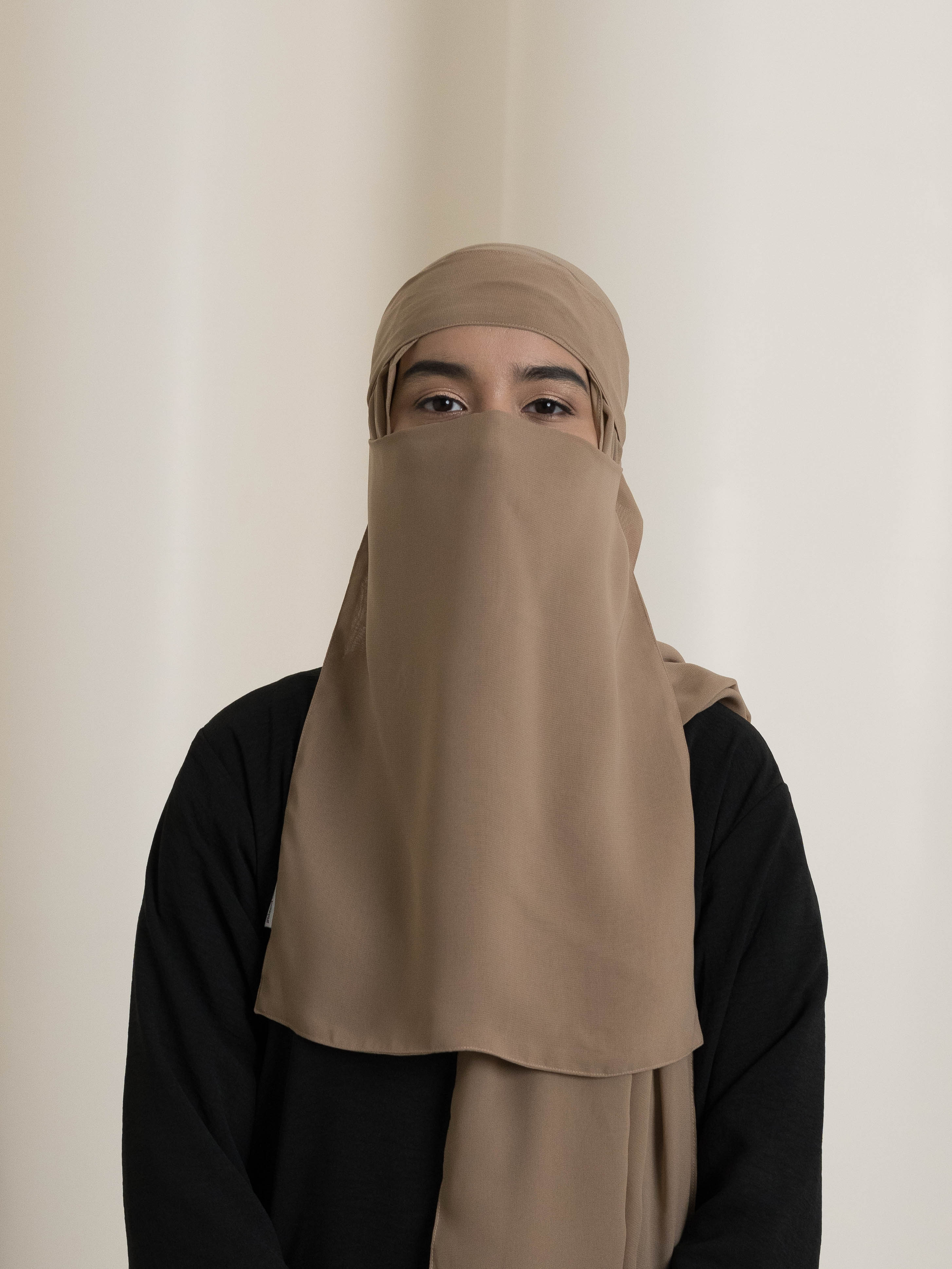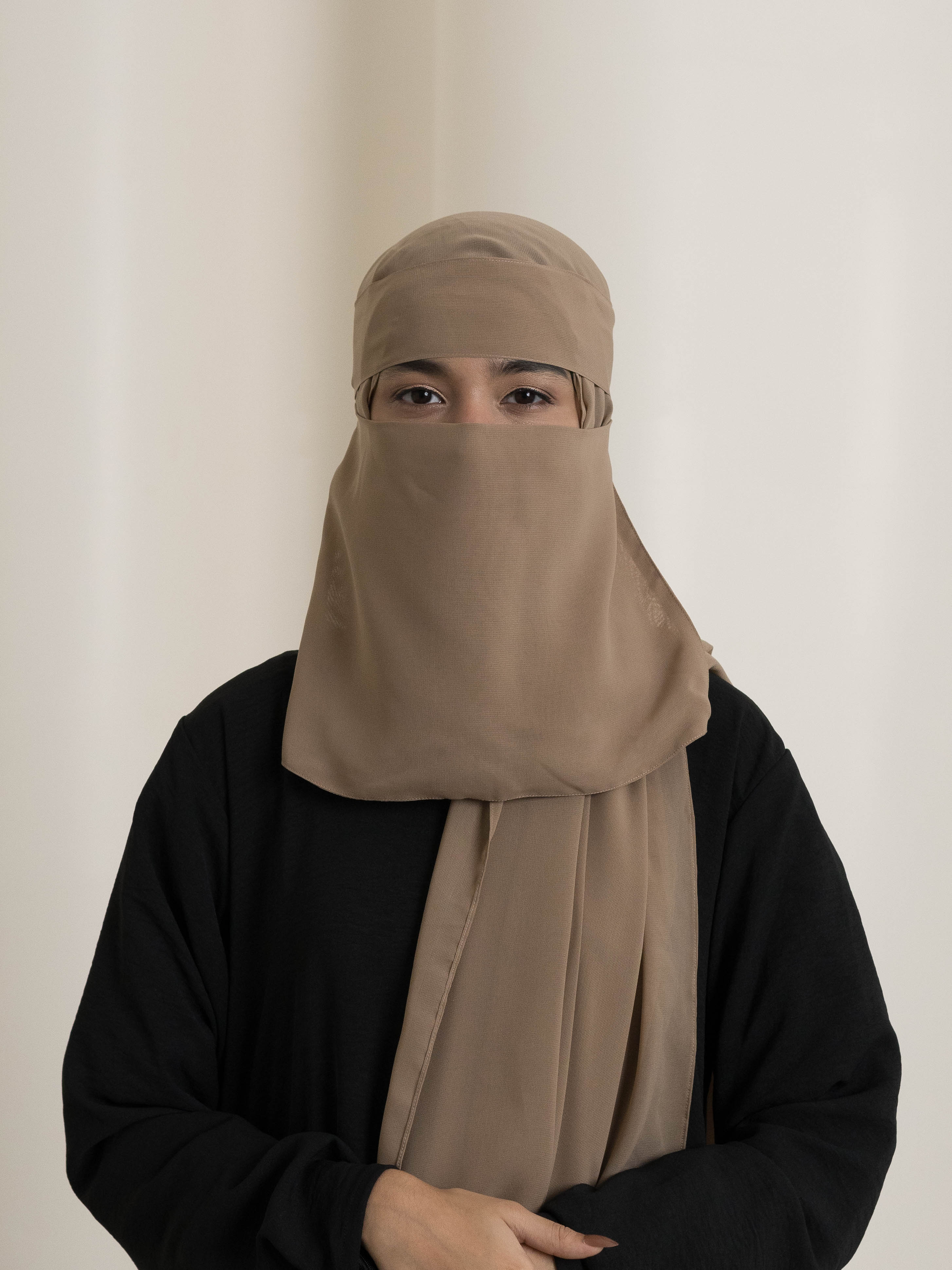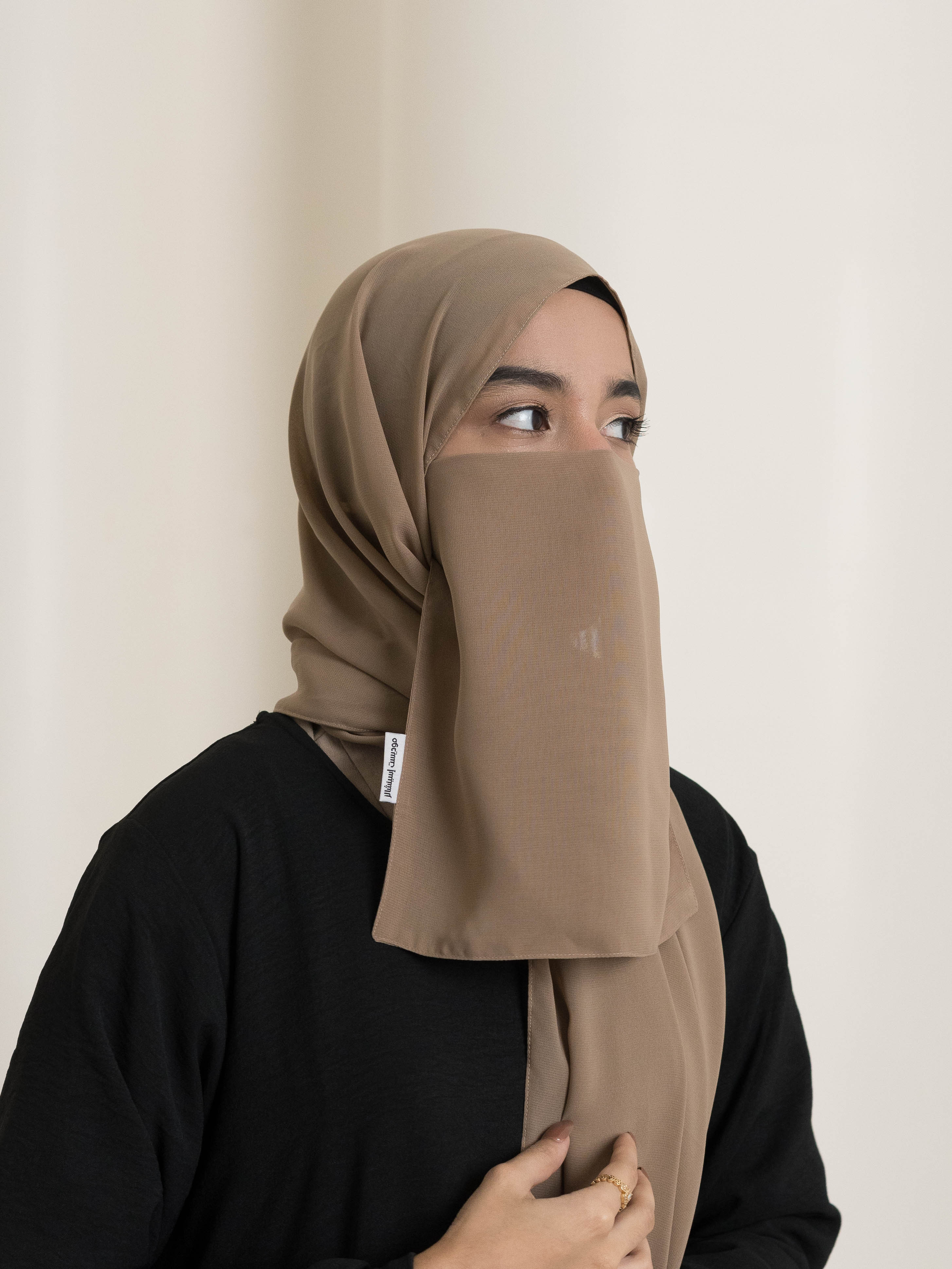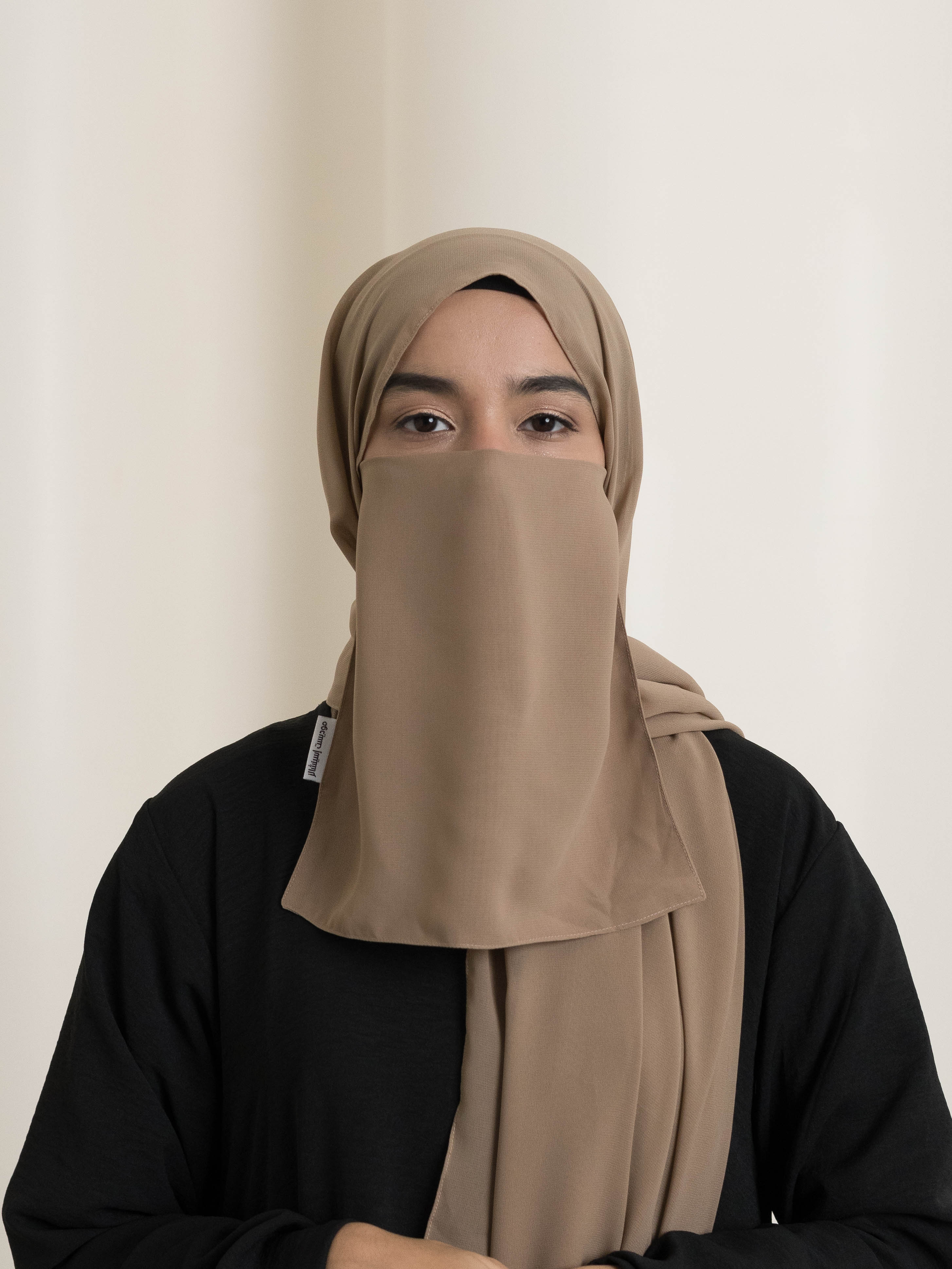 - Half Saudi Style Niqab (Short) – Compact and modest with an elastic fastening for easy wear.