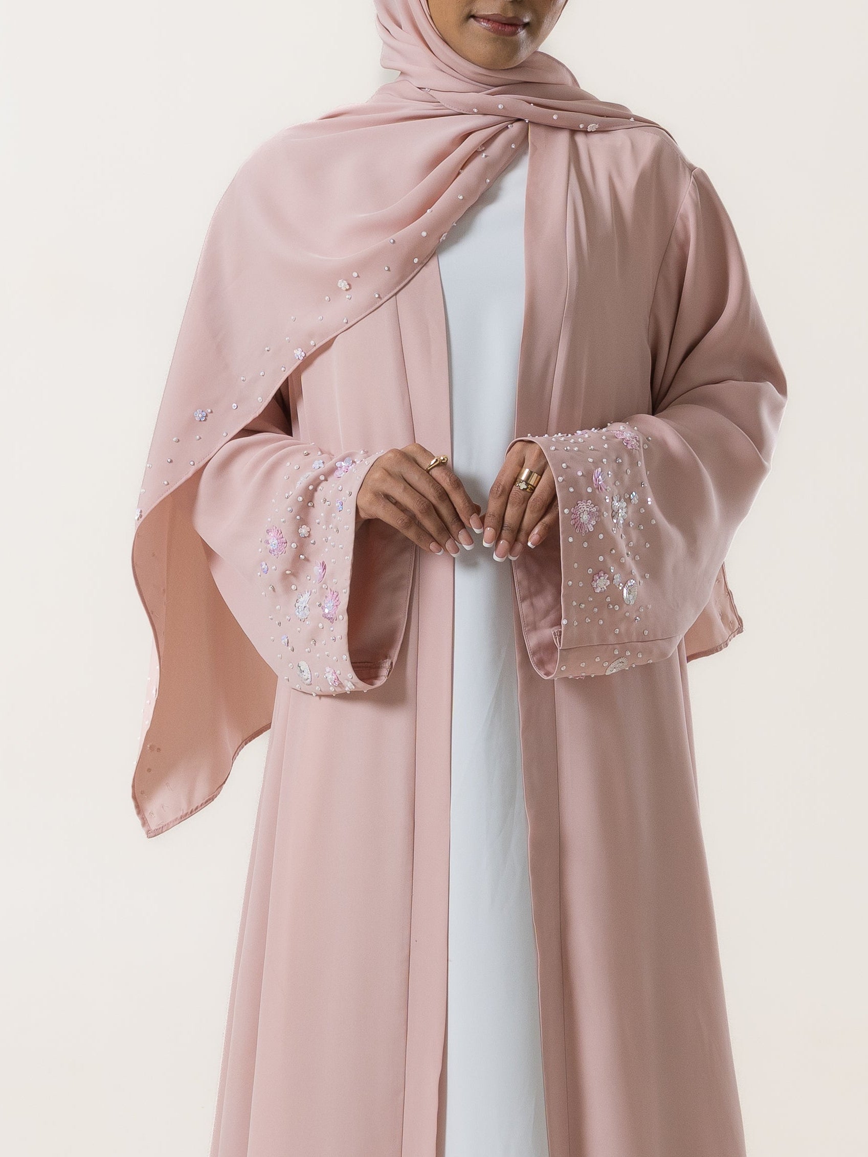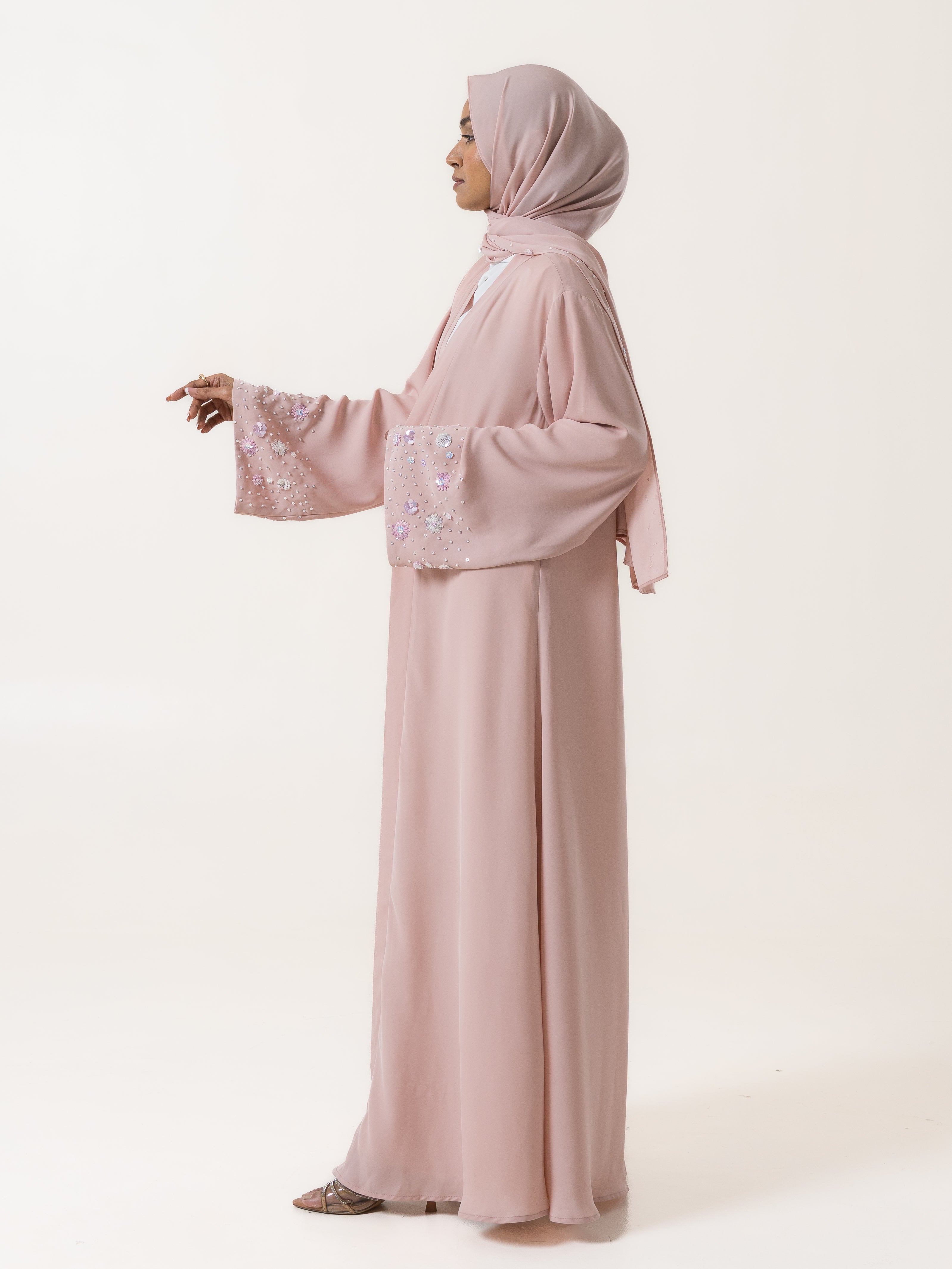 A delicate blend of elegance and charm — this Embroidered Abaya features intricate floral embroidery that adds a touch of femininity to your modest wardrobe. Perfect for festive gatherings, events, or evening outings.