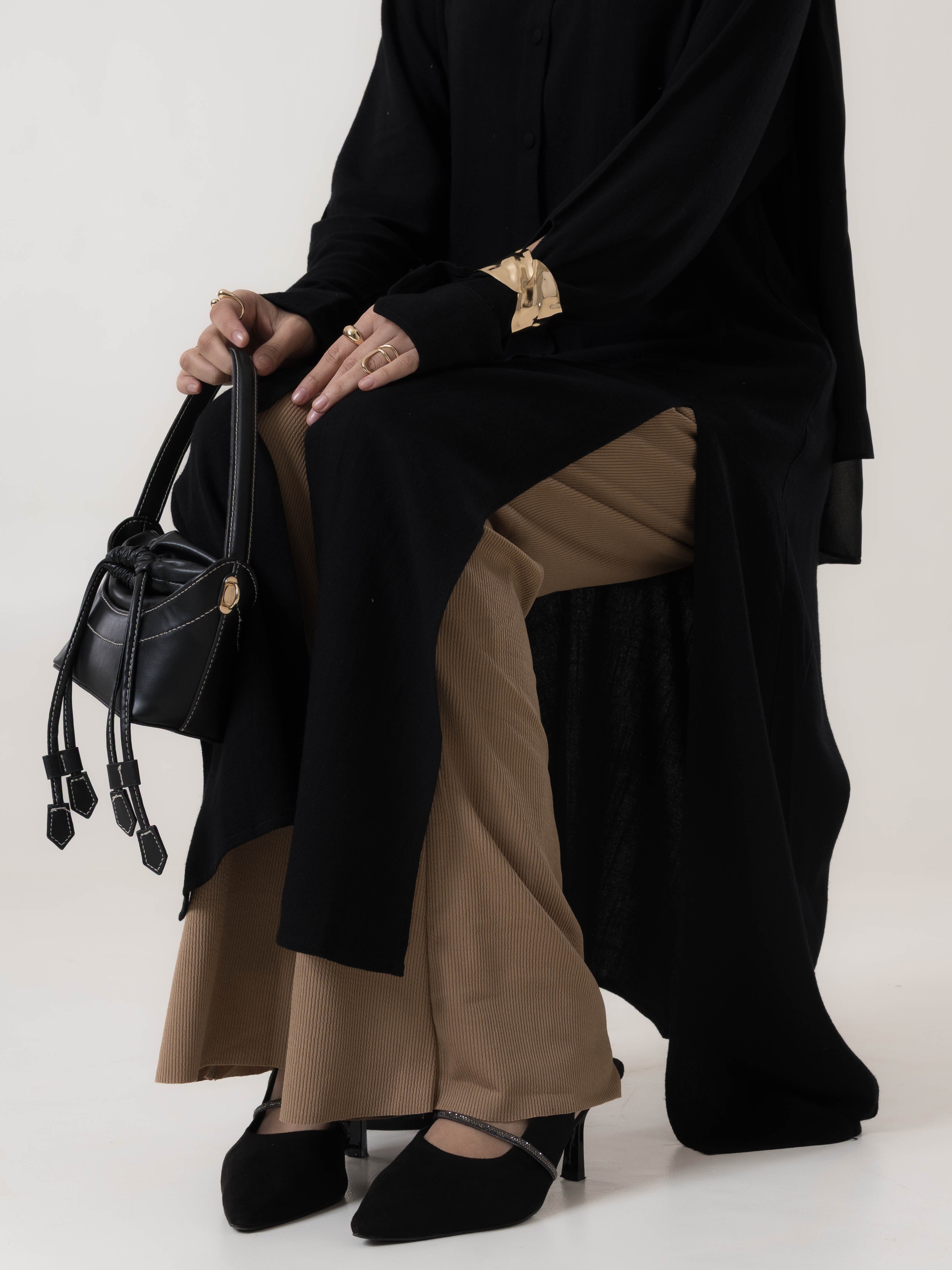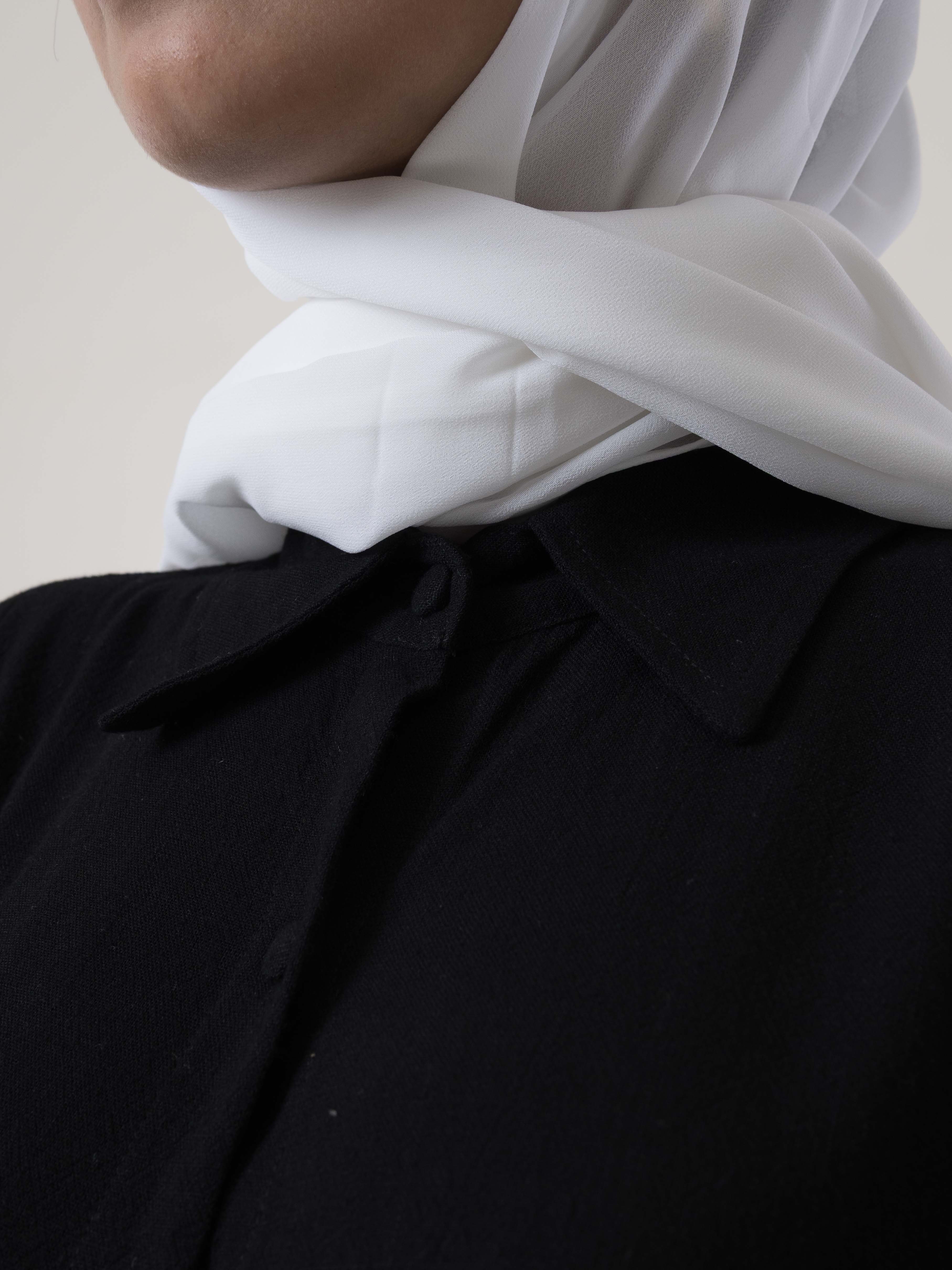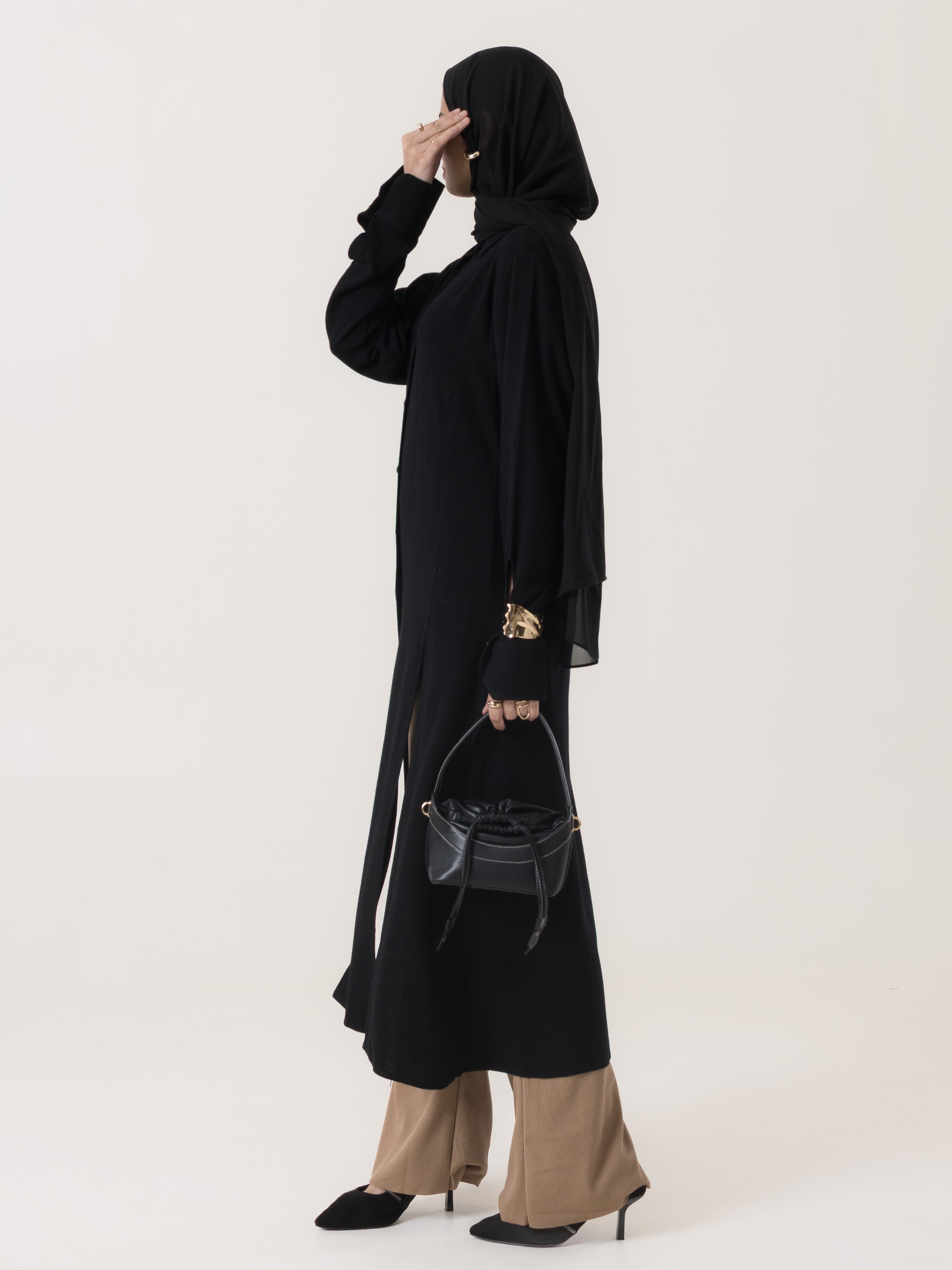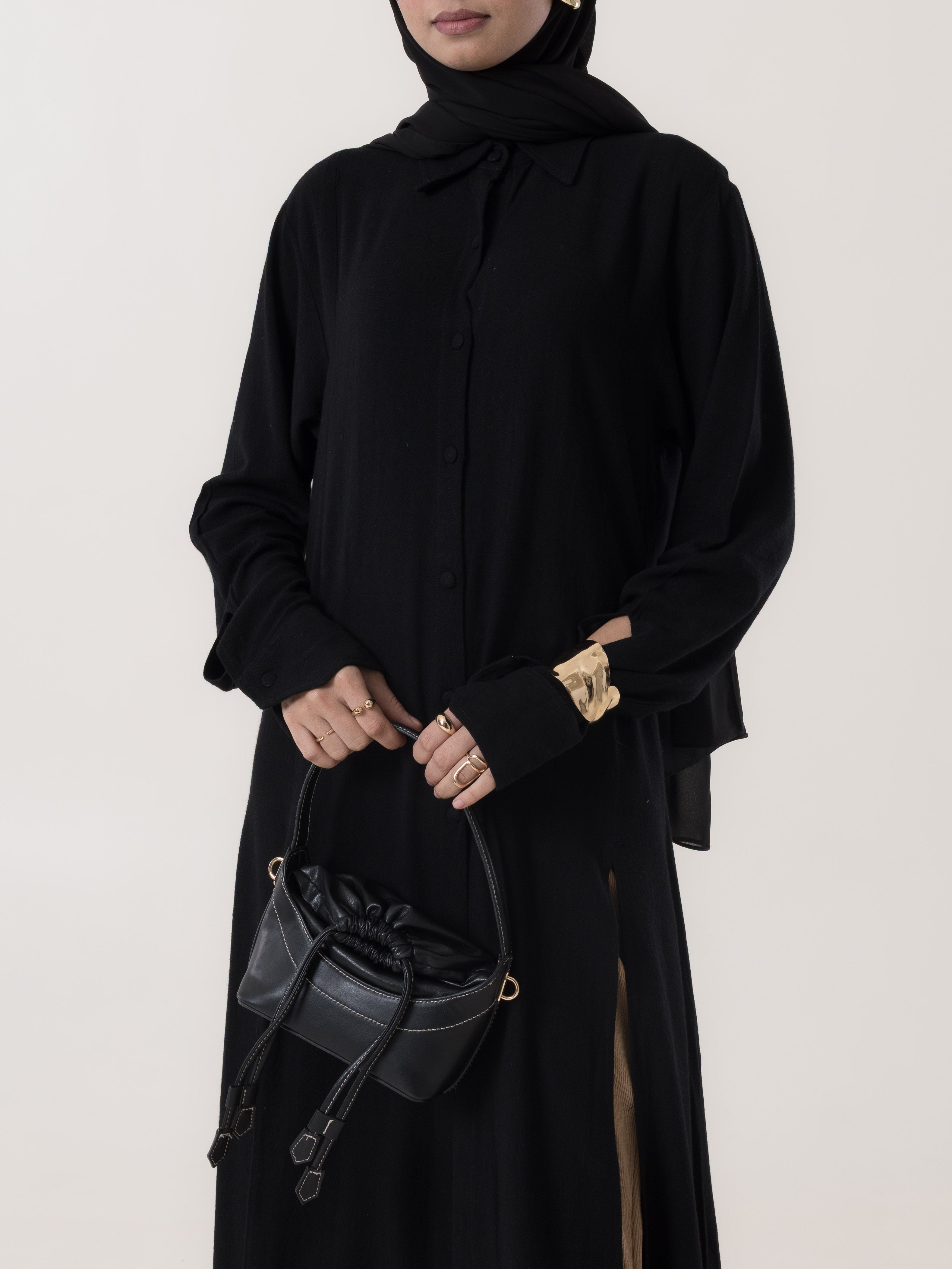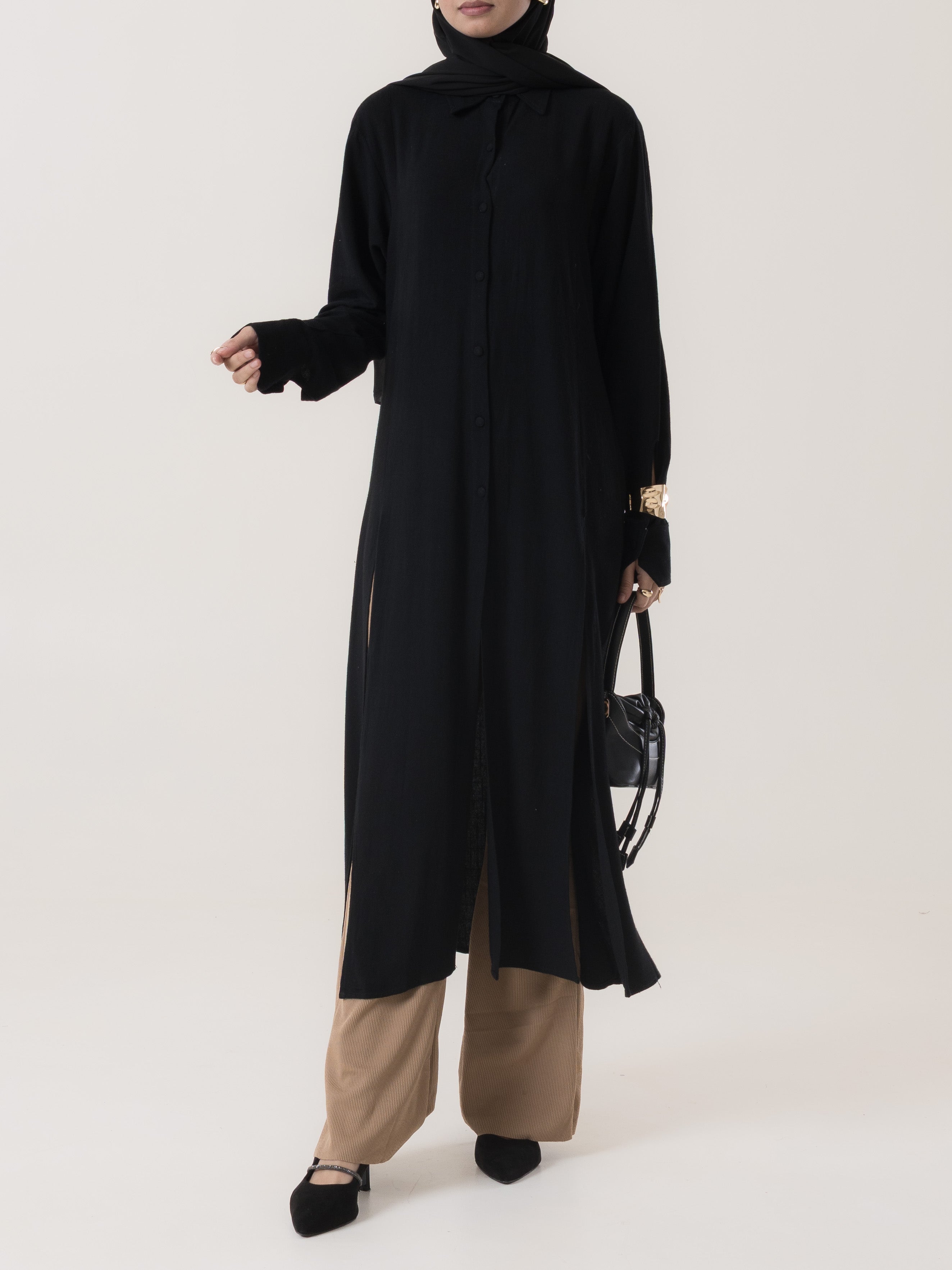 The Yuna Slit Shirt is a modern modest essential crafted in breathable linen. Designed with a collared neckline, cuffed sleeves, and functional side slits, it combines comfort with timeless sophistication for everyday wear.