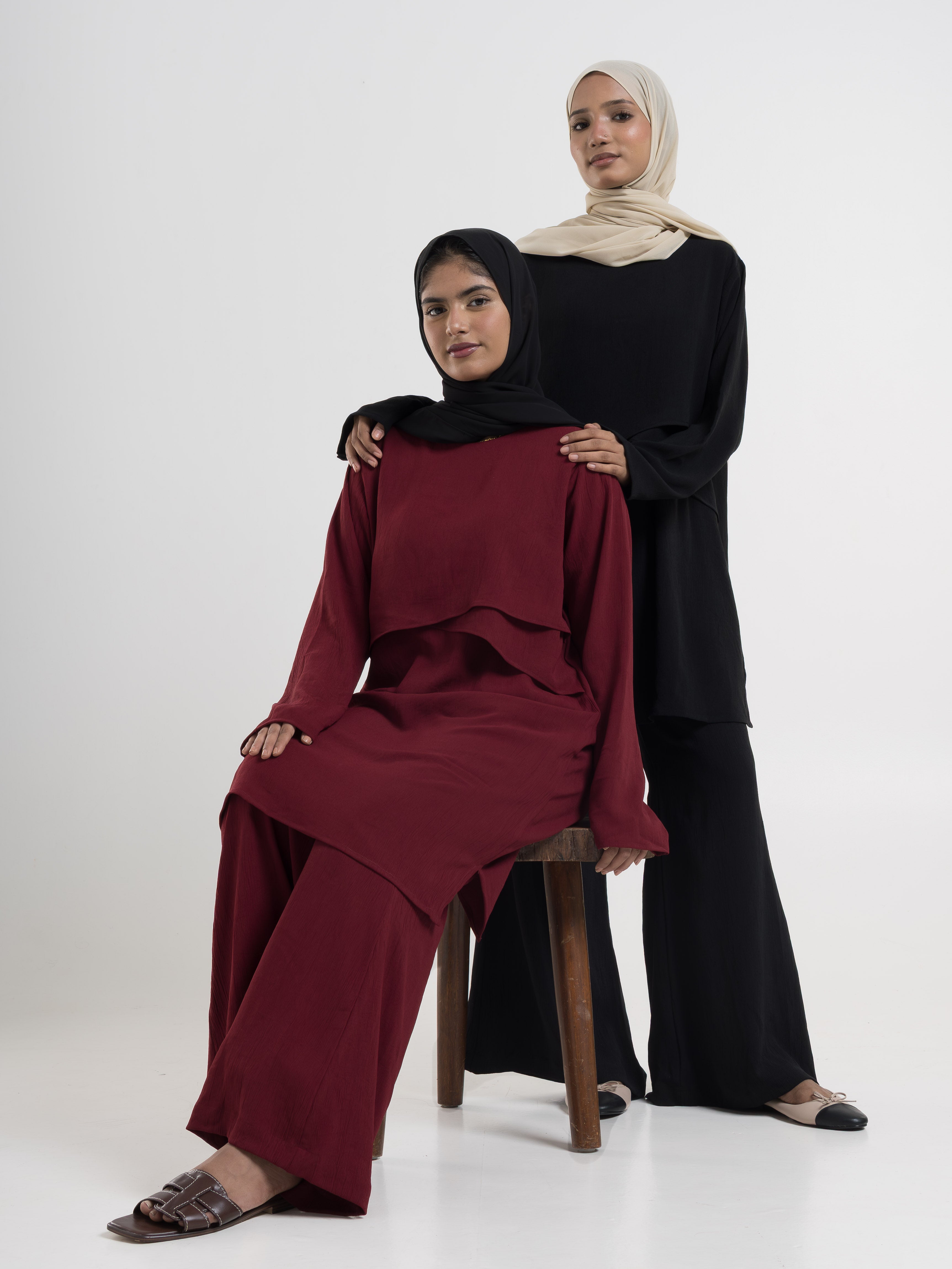 – Maternity-friendly co-ord set with dual side flaps that discreetly cover the bust opening