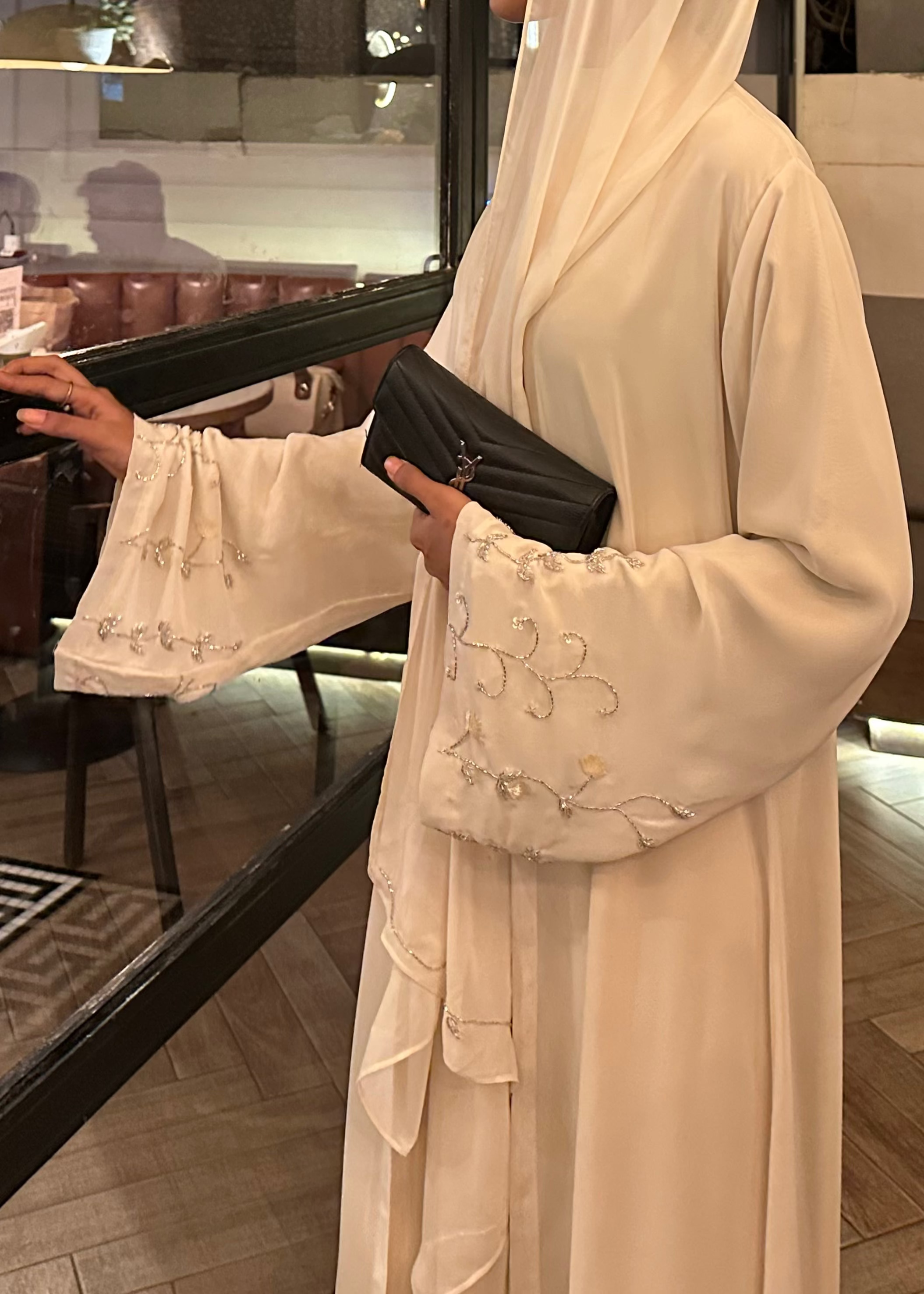 Yumna Chiffon Embroidered Abaya - Ivory