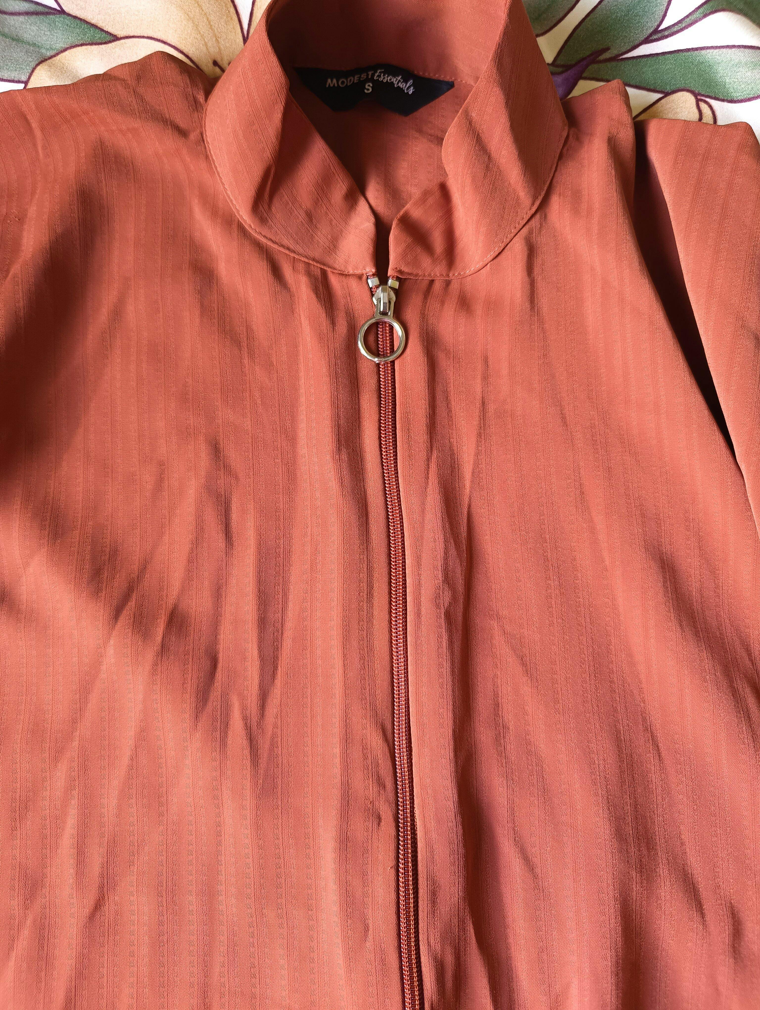 Introducing our versatile Lina Zipper Abaya in Rust, designed for modern everyday wear. The zipper opens all the way down, giving you the option to wear it open or closed, depending on your style preference. The Lina Zipper Abaya - Rust is perfect for everyday use, offering both comfort and functionality. Elevate your modest wardrobe with this chic and practical piece that seamlessly blends style and convenience.