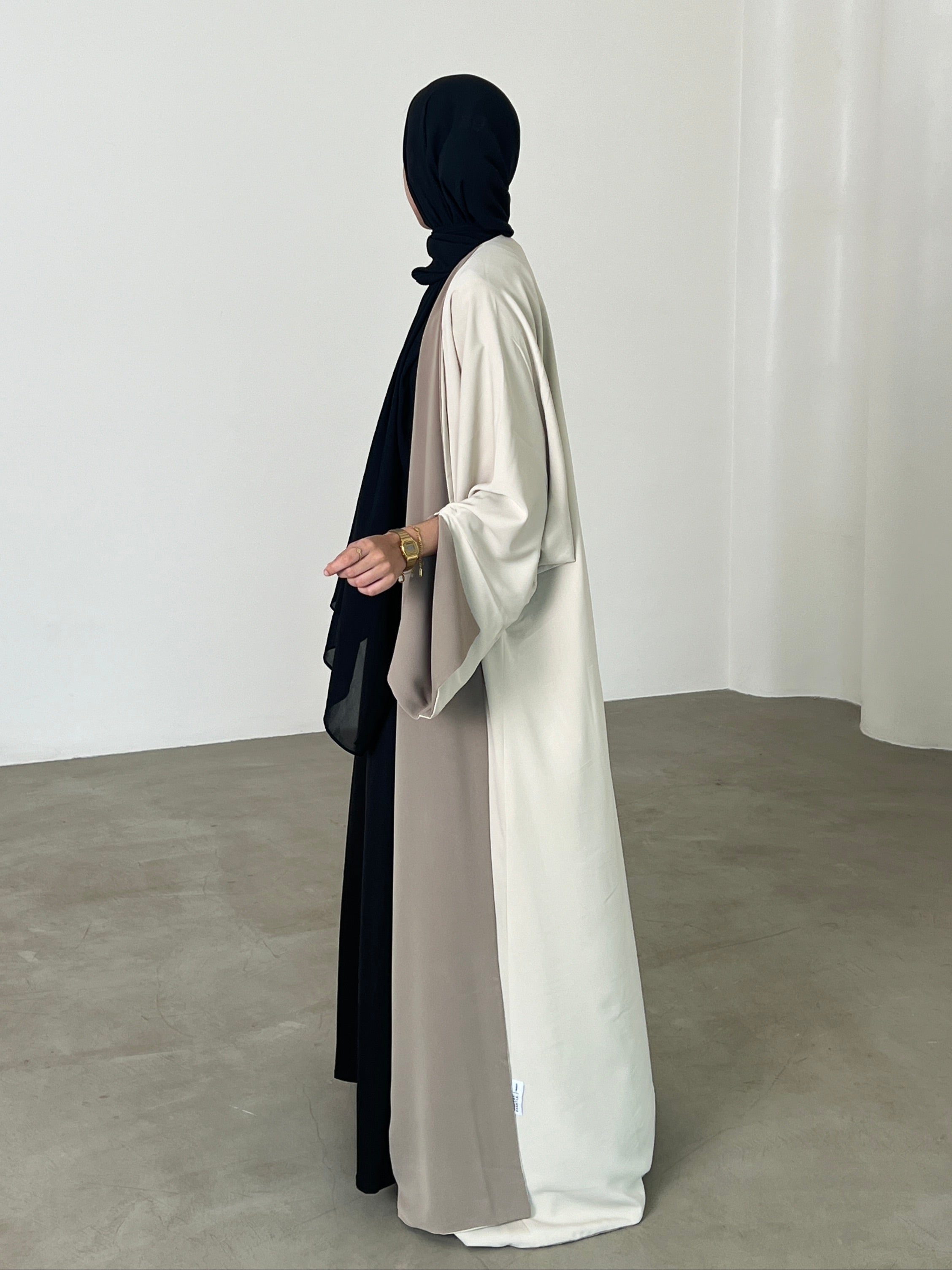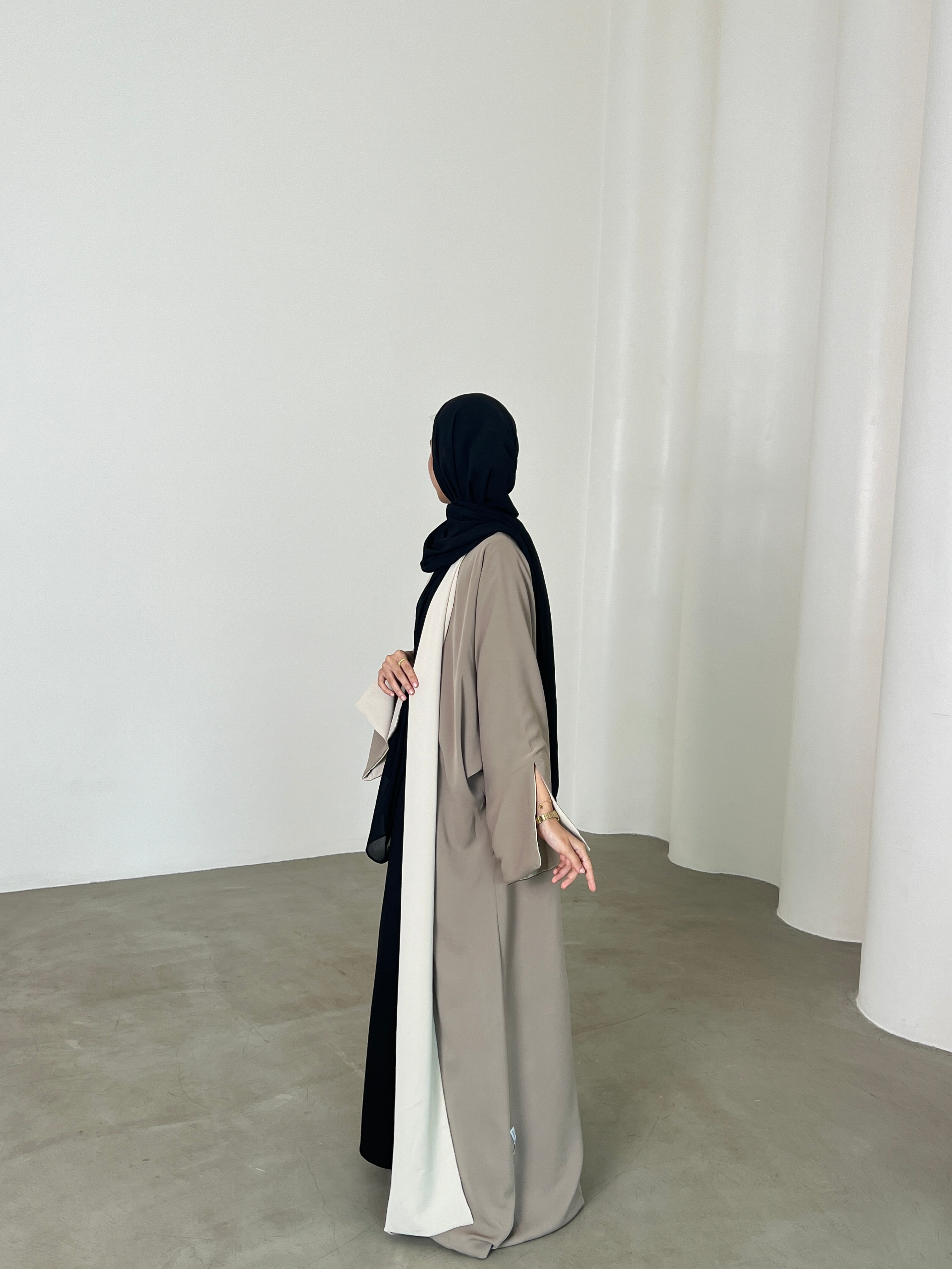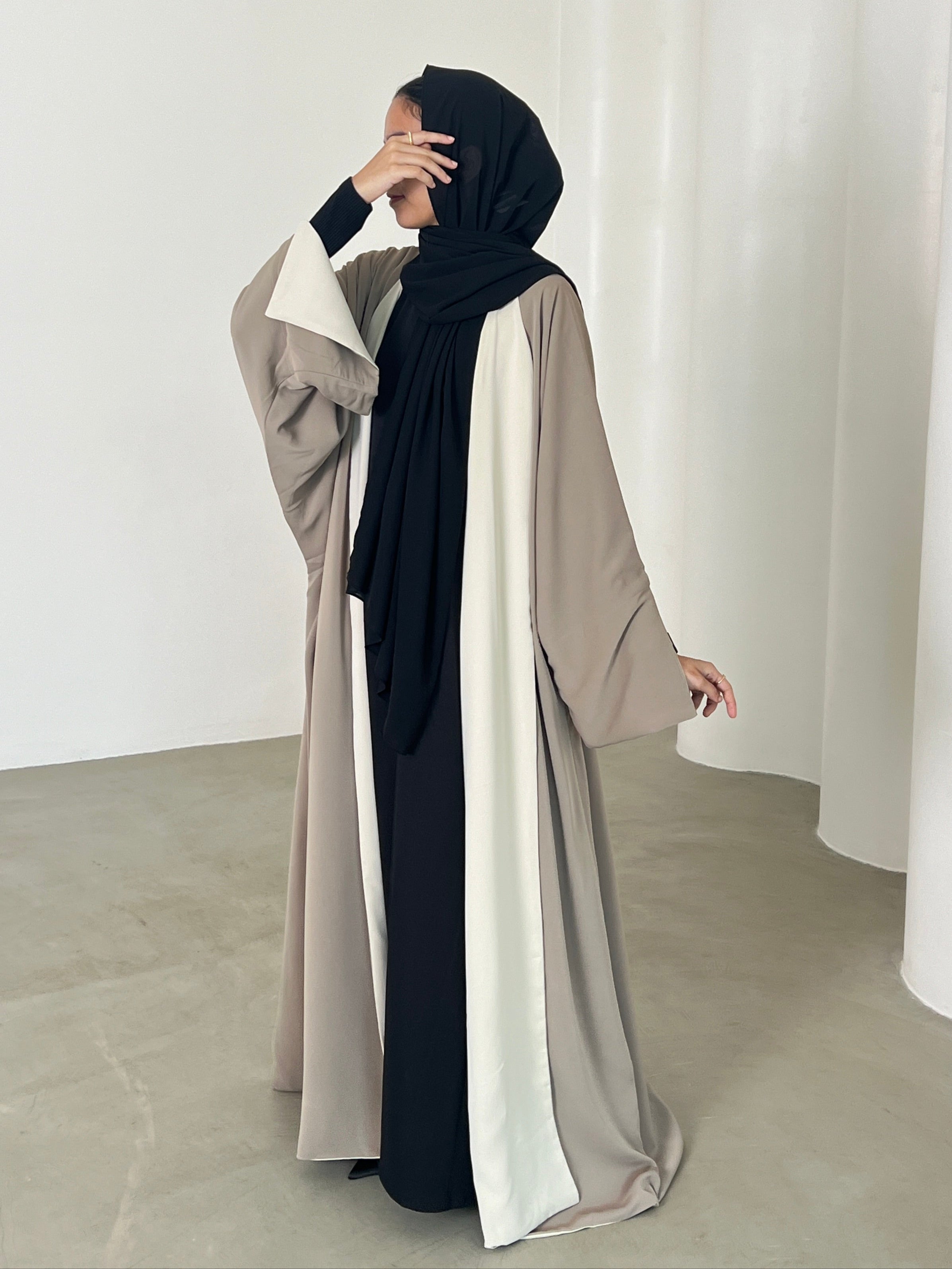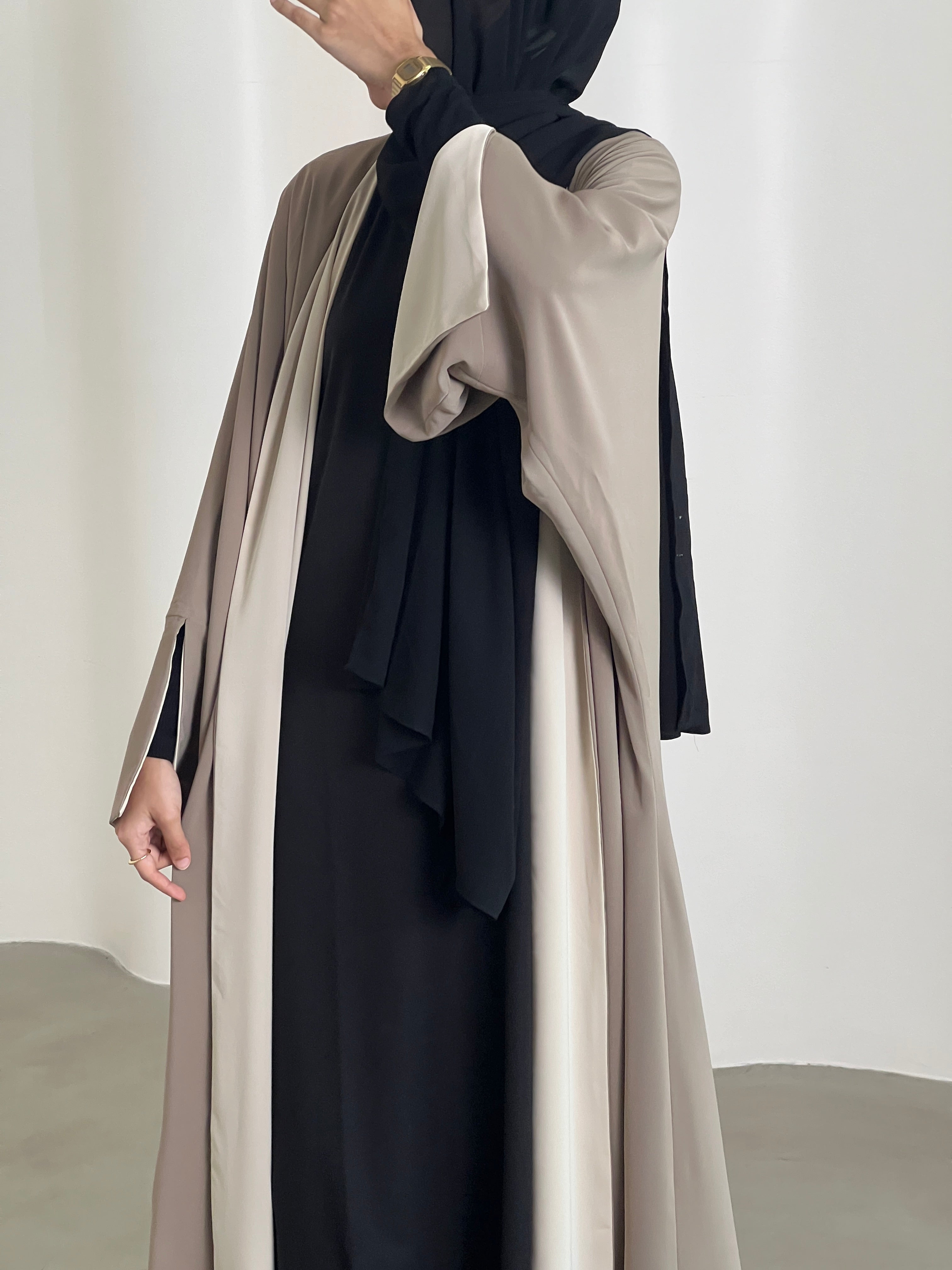 The Raha Reversible Abaya offers versatility and comfort, designed to be worn on both sides, giving you two elegant colors in one. Its flowy and breathable fabric ensures effortless grace for any occasion.